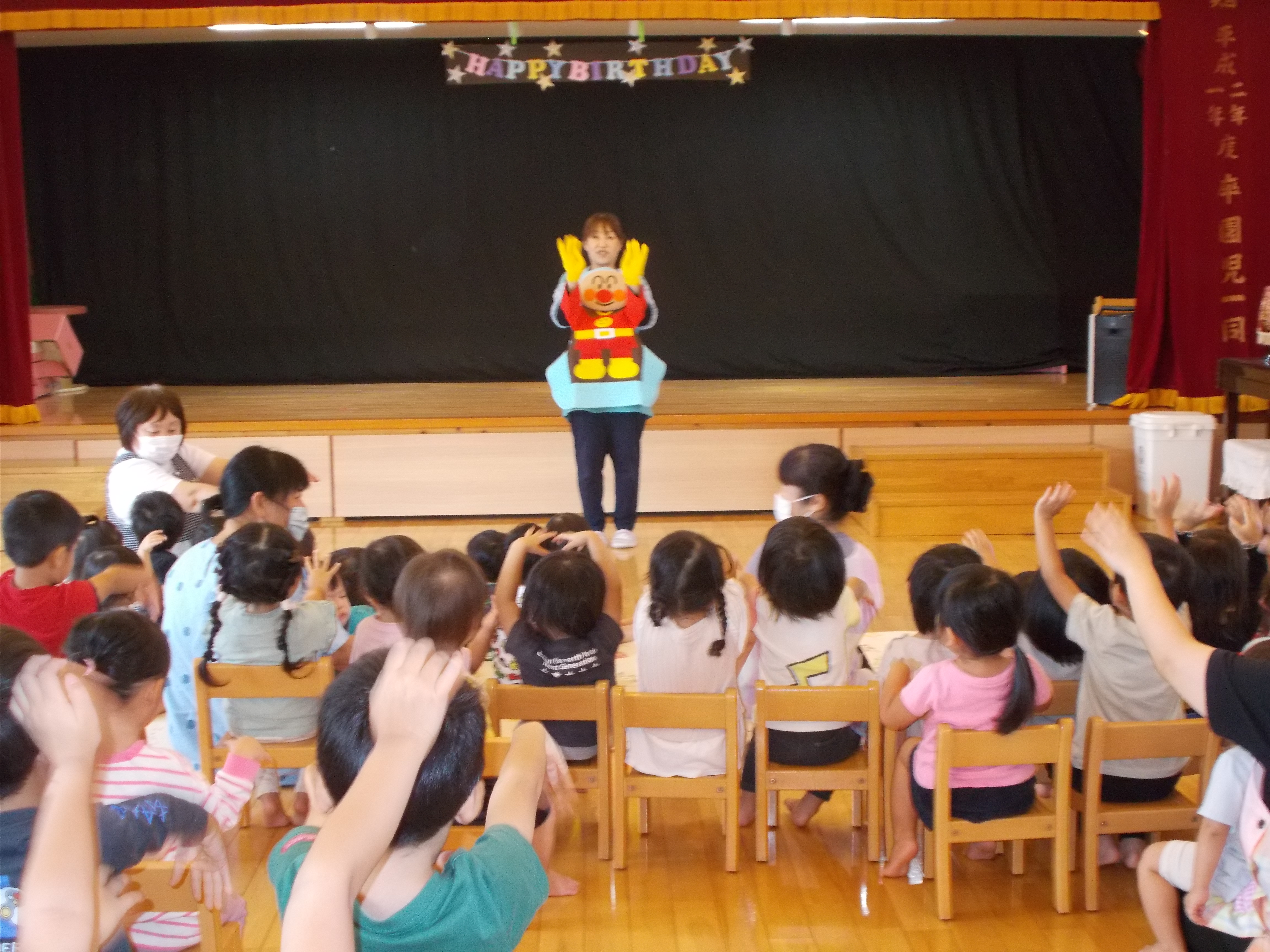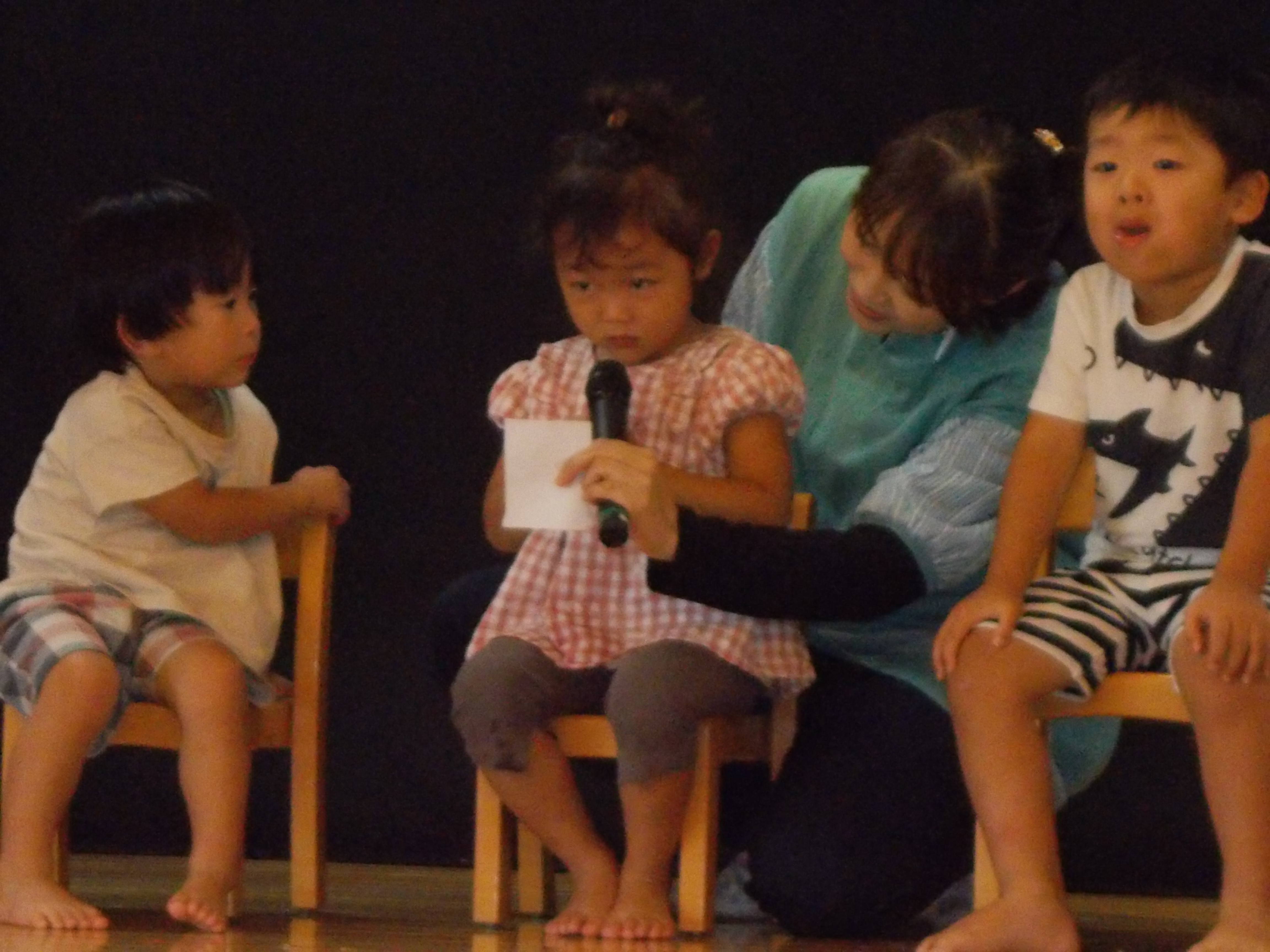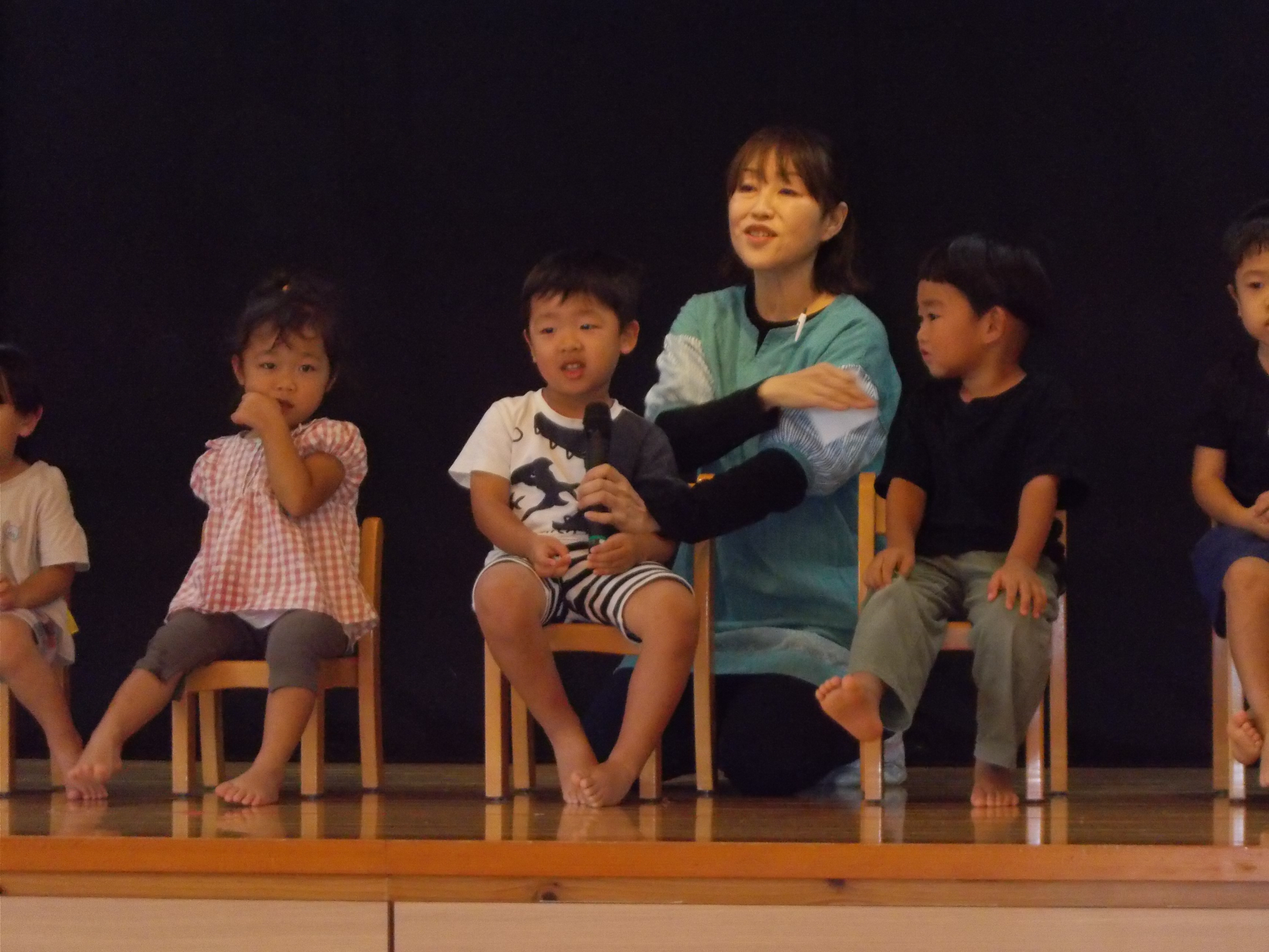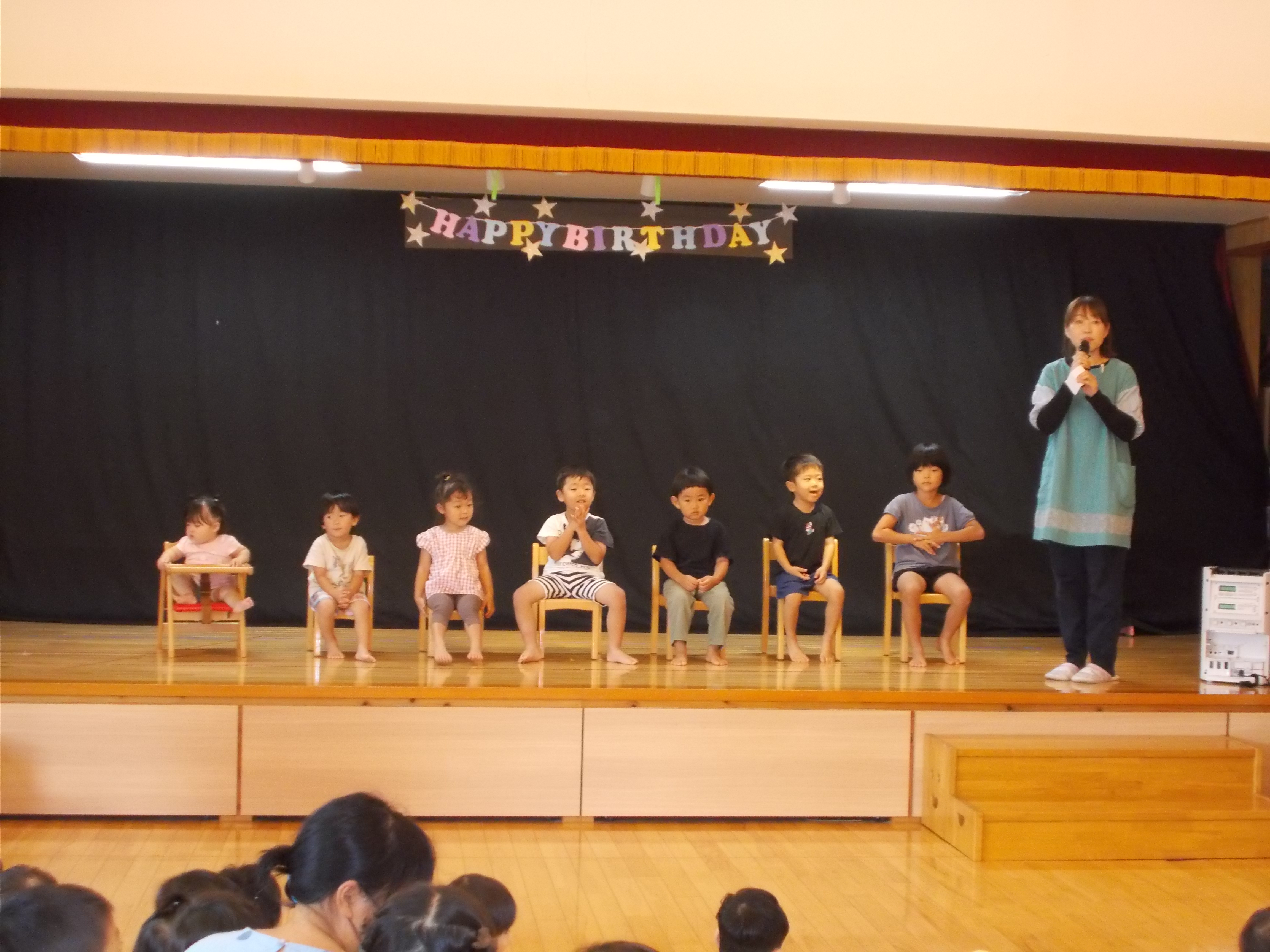 10月 誕生会 10月11日(水) 自分の名前をハッキリ言えて、インタビューにもしっかり答える姿に「オー凄い」や「さすが!」の声があがっていました。これからの成長を楽しみにしていますね。 ハロウィンにちなんで、ミニオンズやアナと雪の女王のエルサに変身した保育士がファションショーを開催してくれました。 かわいい姿に子ども達も大興奮!でした(^^♪