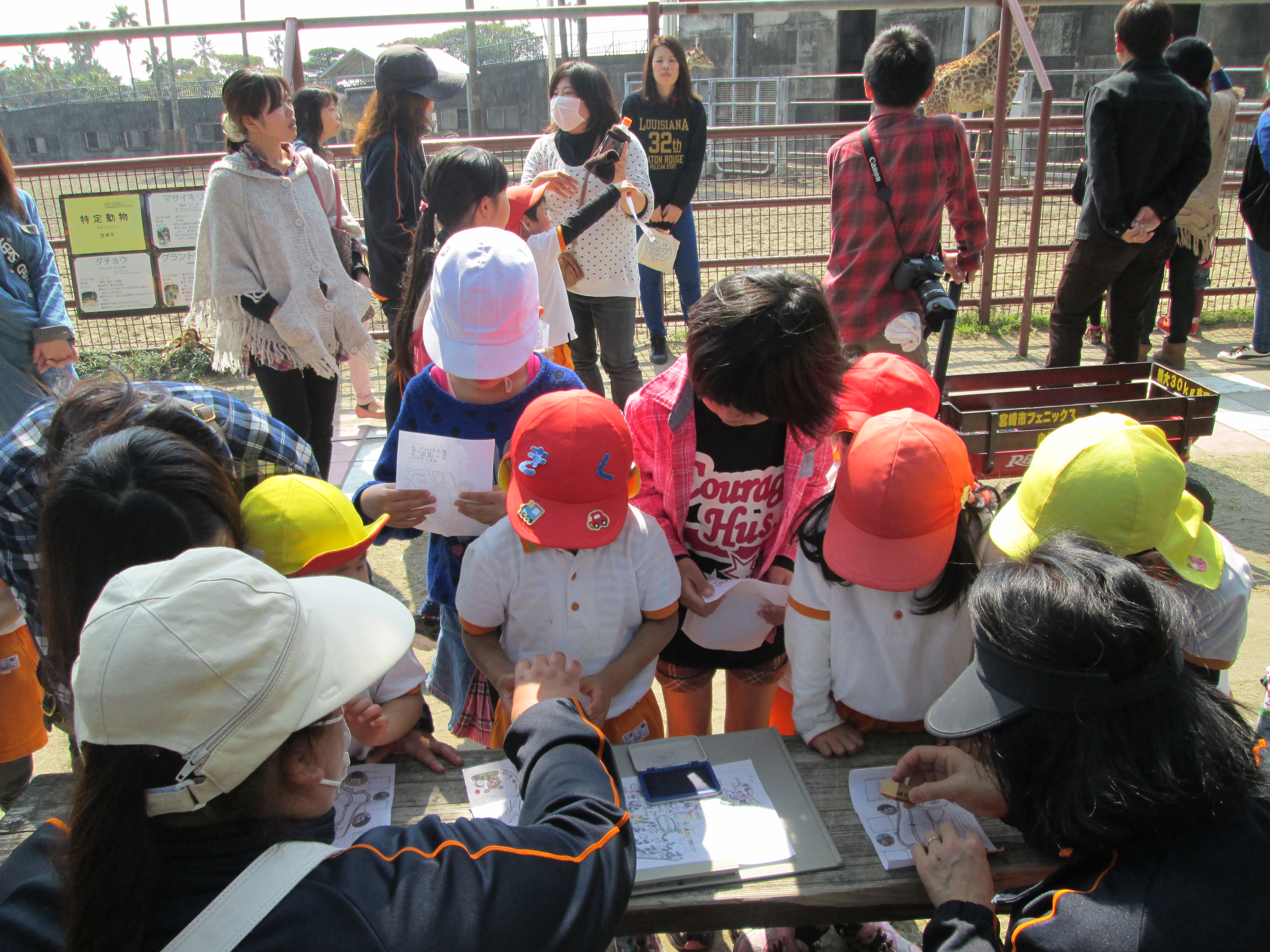 お別れ遠足 3月16日(日) フェニックス自然動物園で、お別れ遠足を行いました。 年長さん達の将来の夢発表やウォークラリーなど、楽しい時間を過ごすことができました。 動物に触れたり、美味しいお弁当を食べたり、また一つ素敵な思い出ができました。