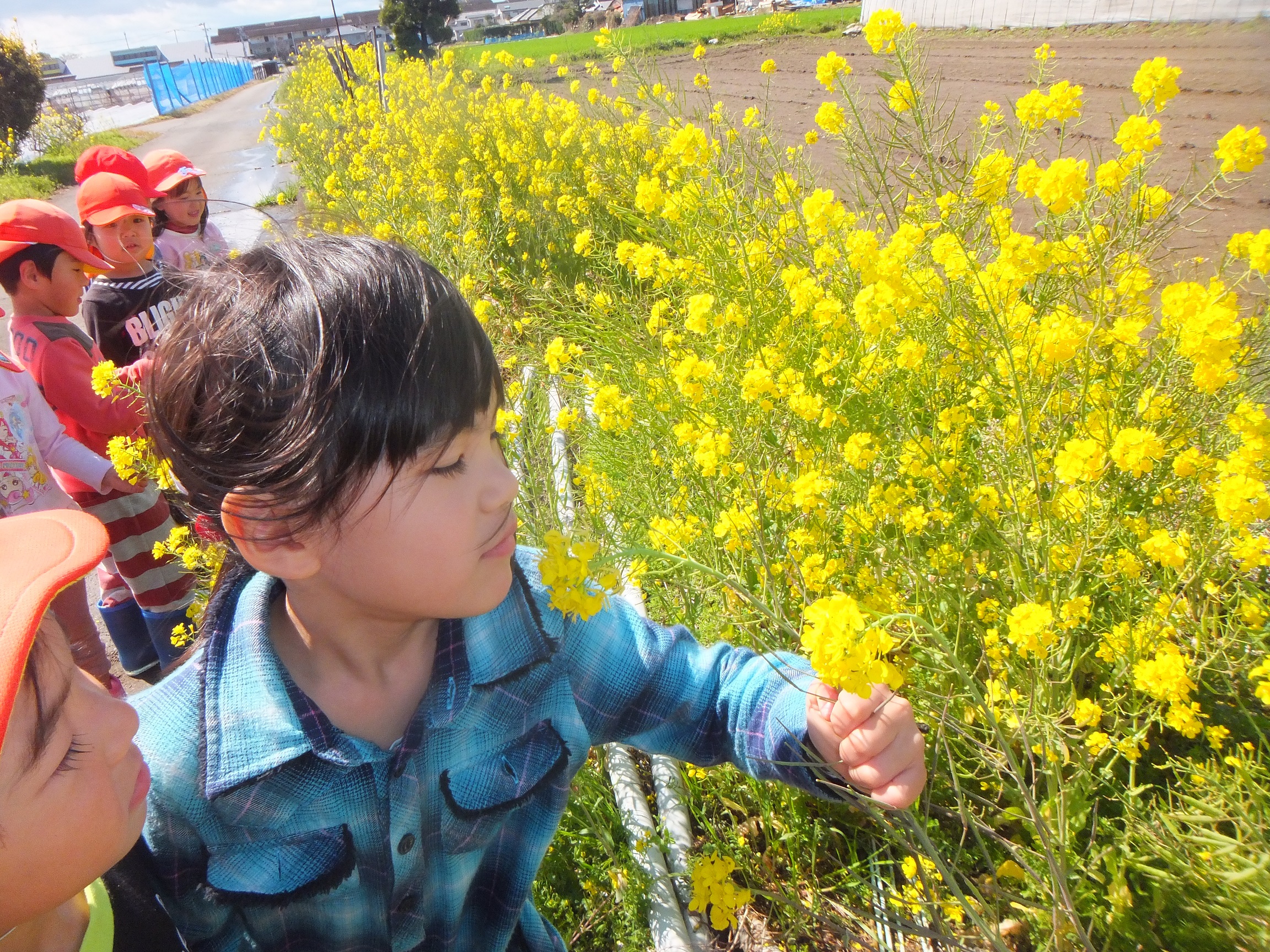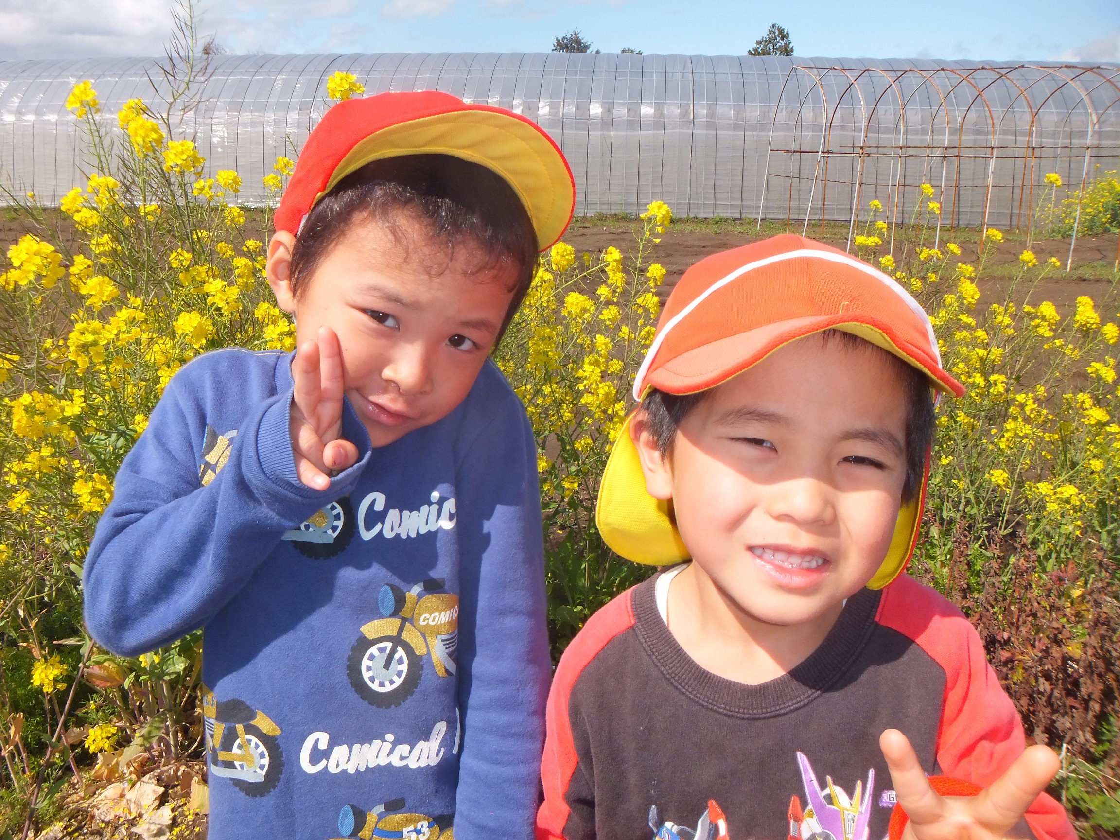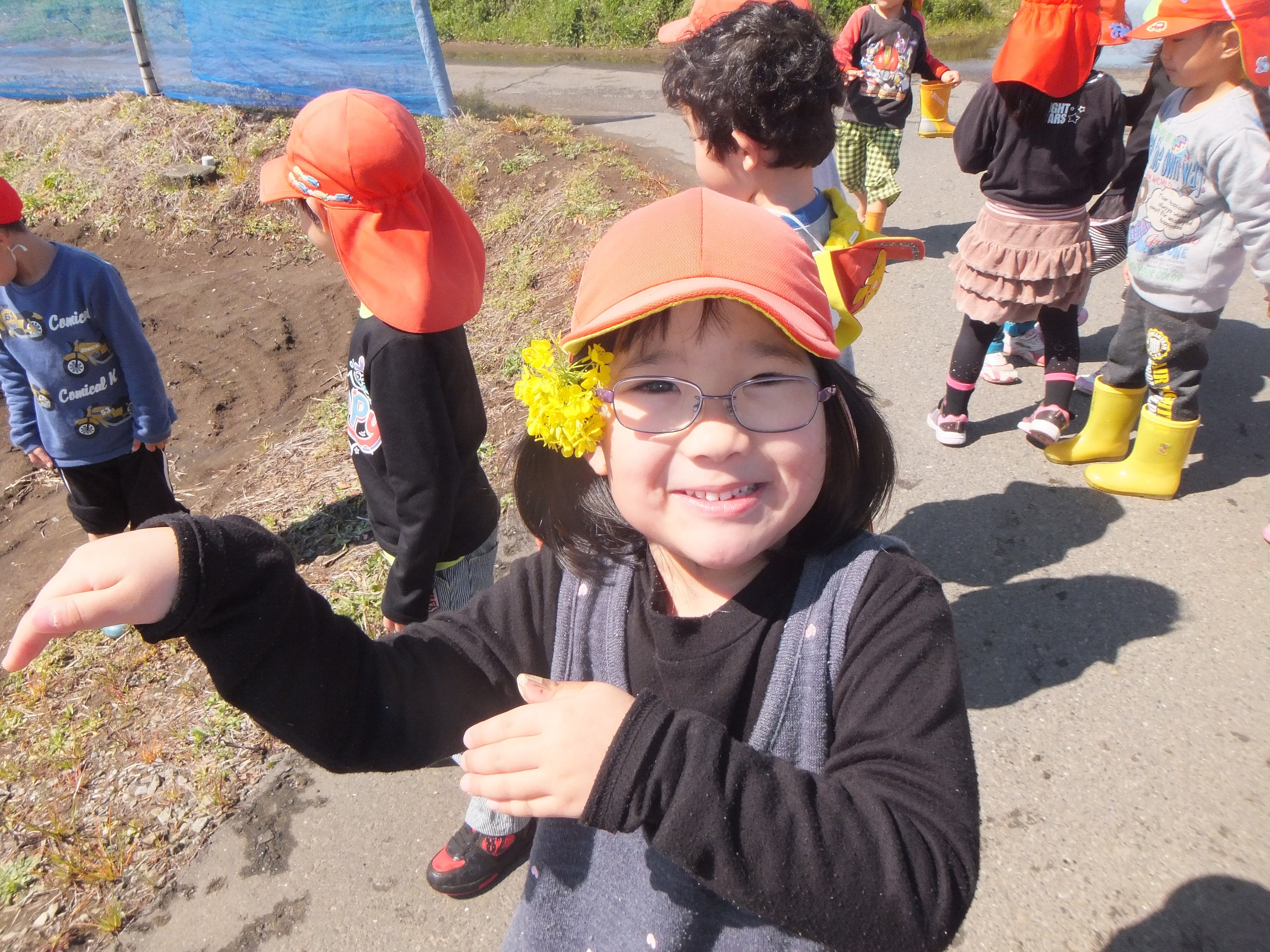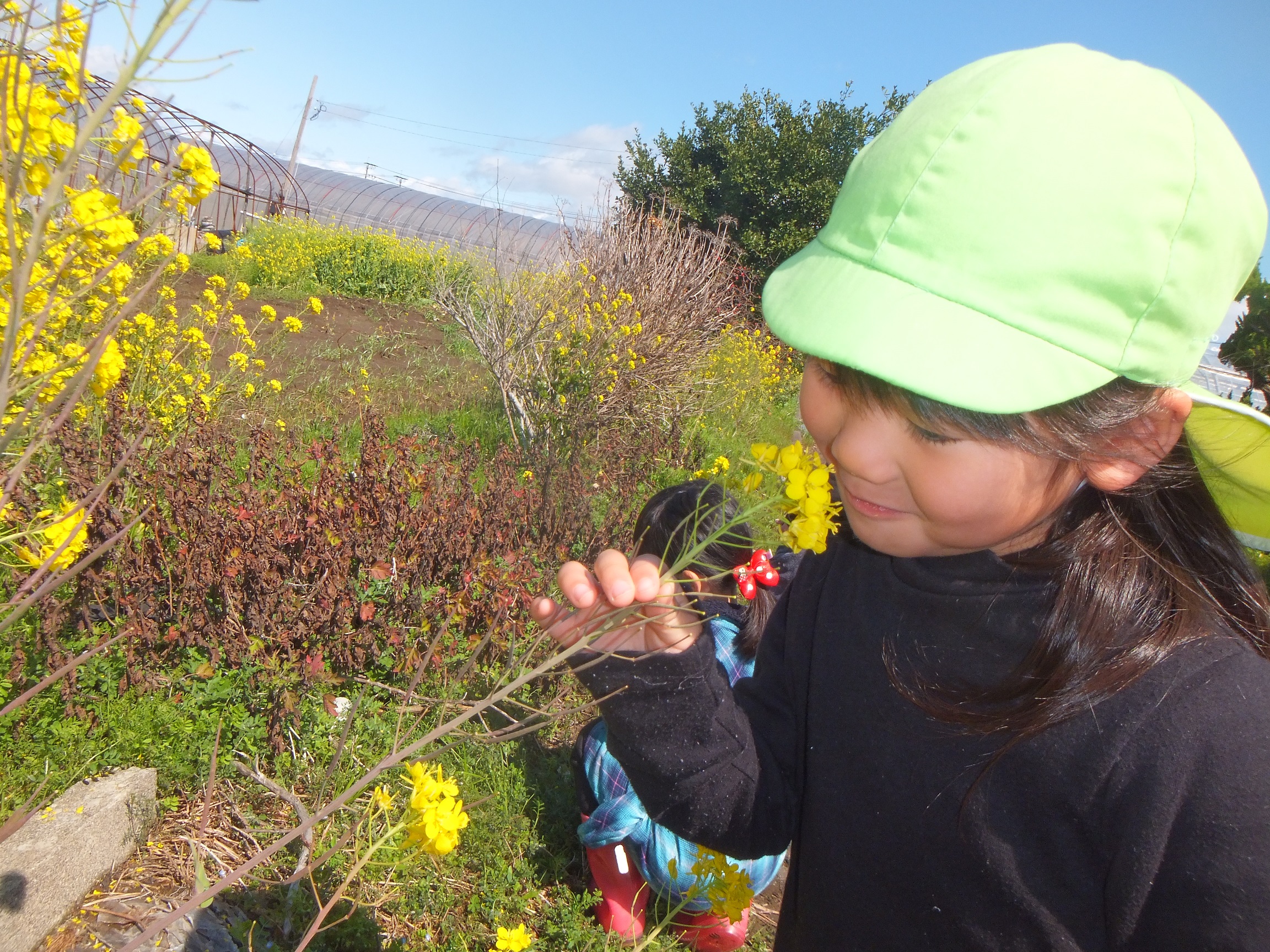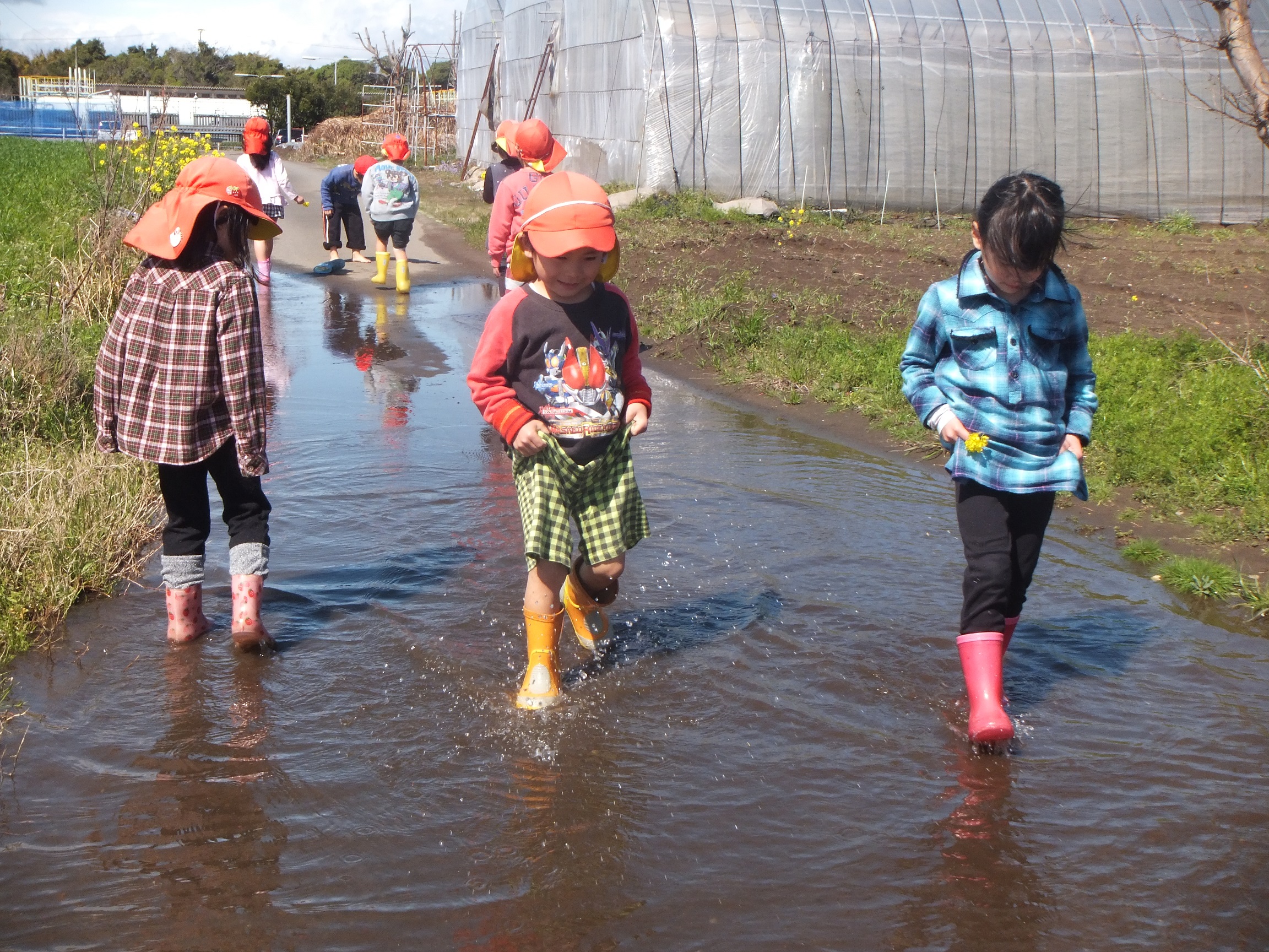 『菜の花を見つけたよ~♪』 『水溜りの水も冷たくないよ~』