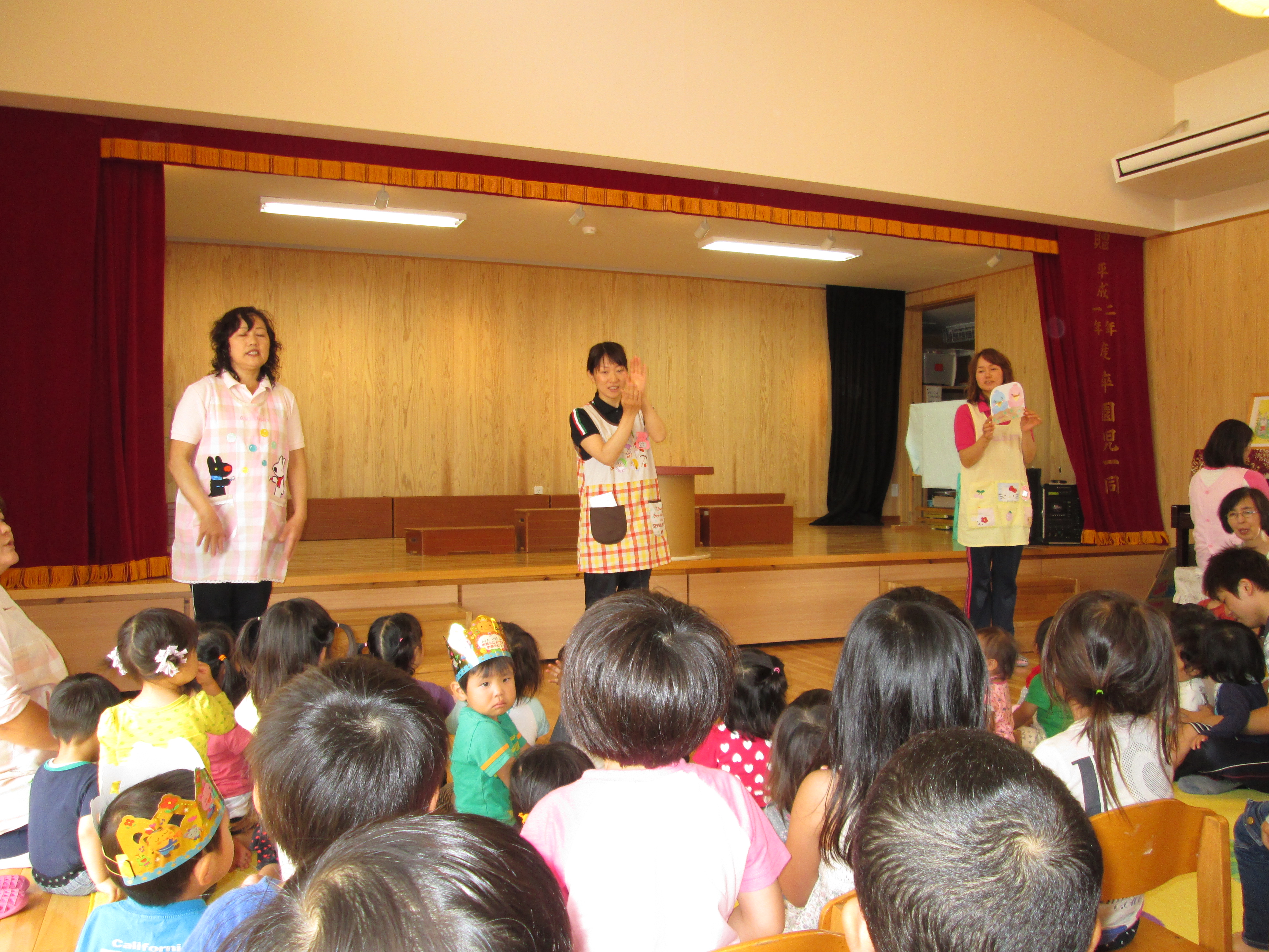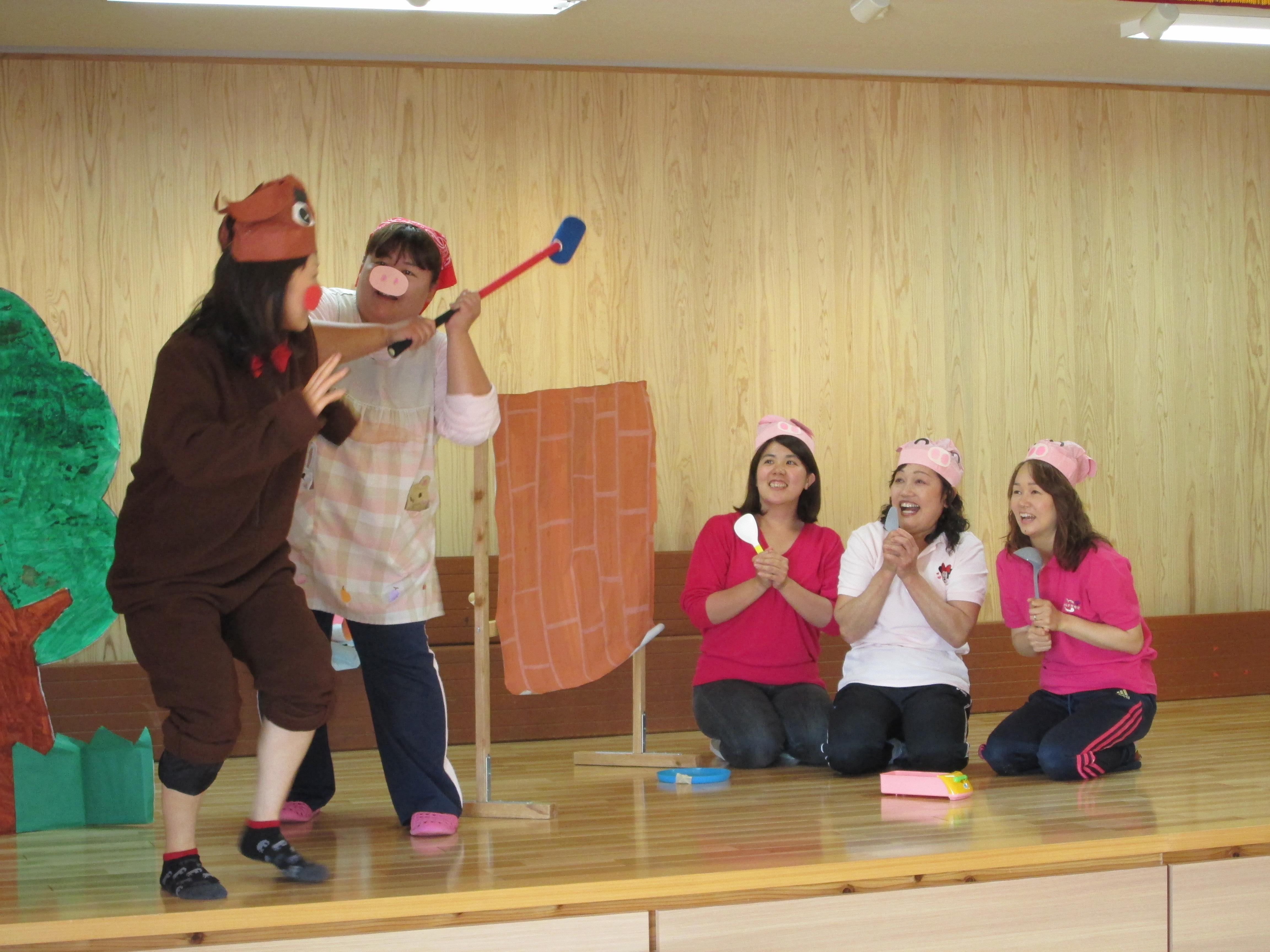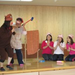 先生たちの出し物『三匹のこぶた』は、なぜか大泣き・・・リアルすぎて怖かったかな?
