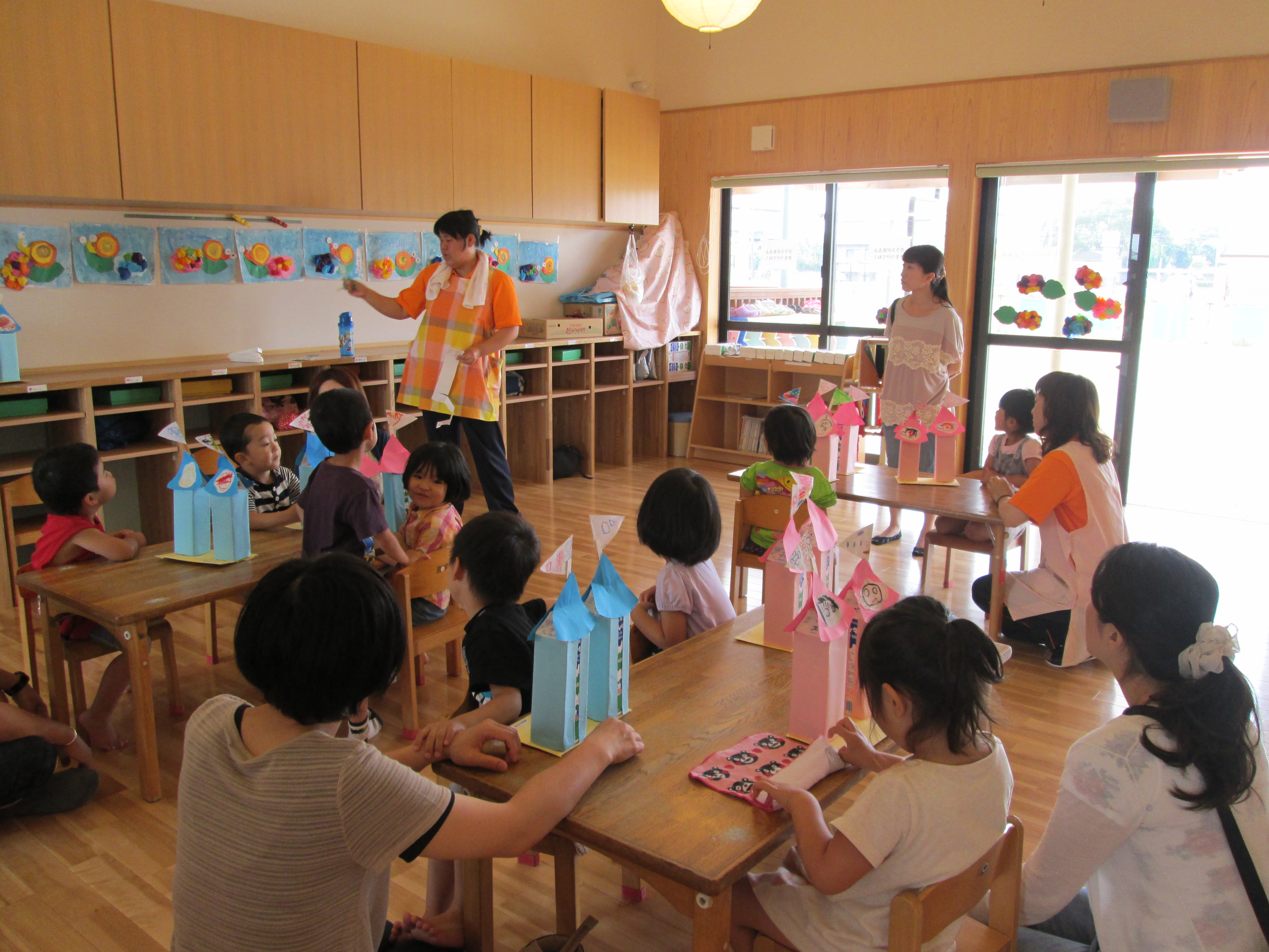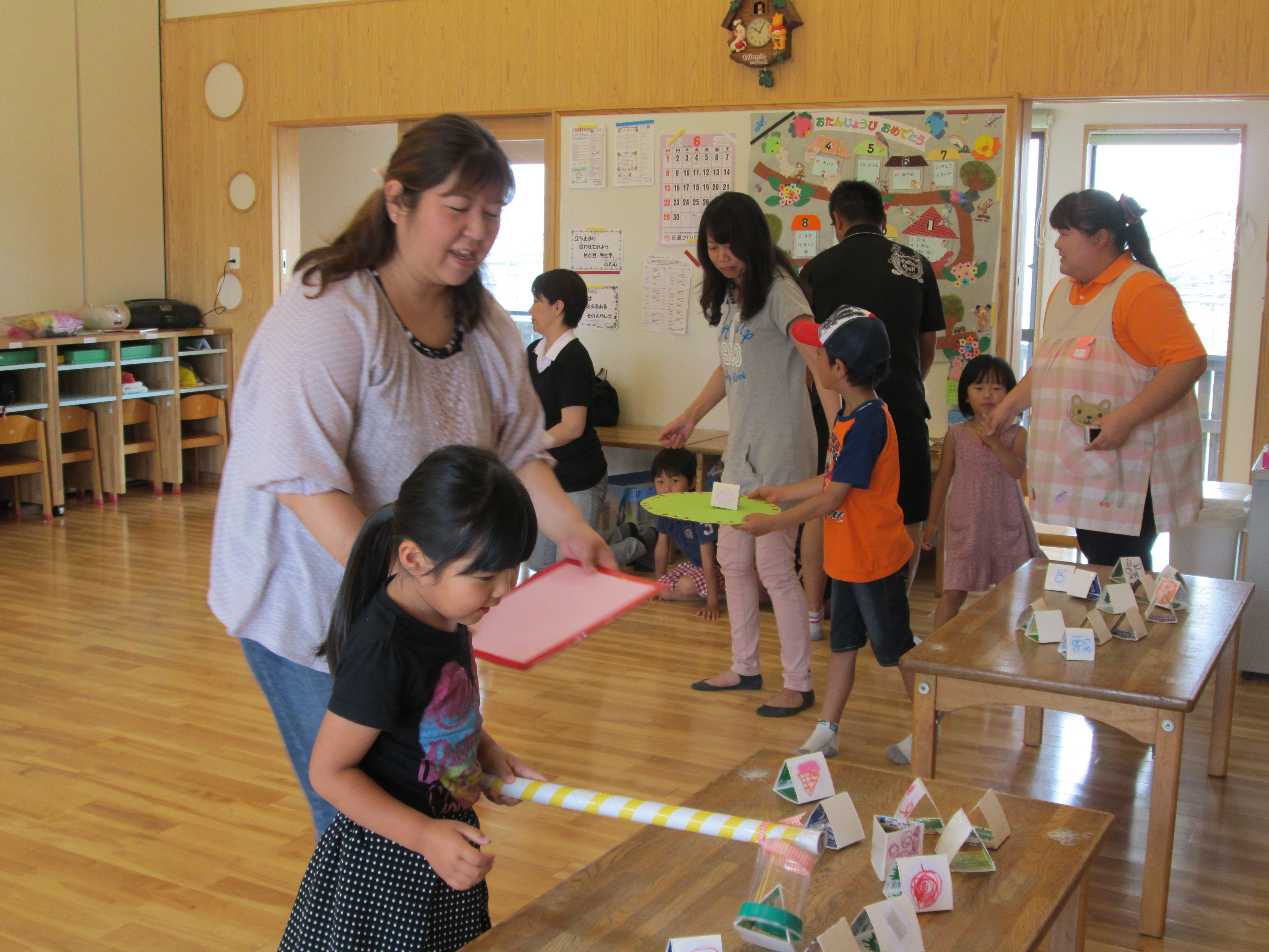 参観日 6月14日(土) 今日は、お父さん・お母さん・お兄ちゃん・お姉ちゃんなど多くの参加があり賑やかな一日となりました。 子ども達も、一緒にゲームをしたり製作を行ったりと楽しい一日を過ごすことができました。 お忙しい中ご参加いただきありがとうございました。