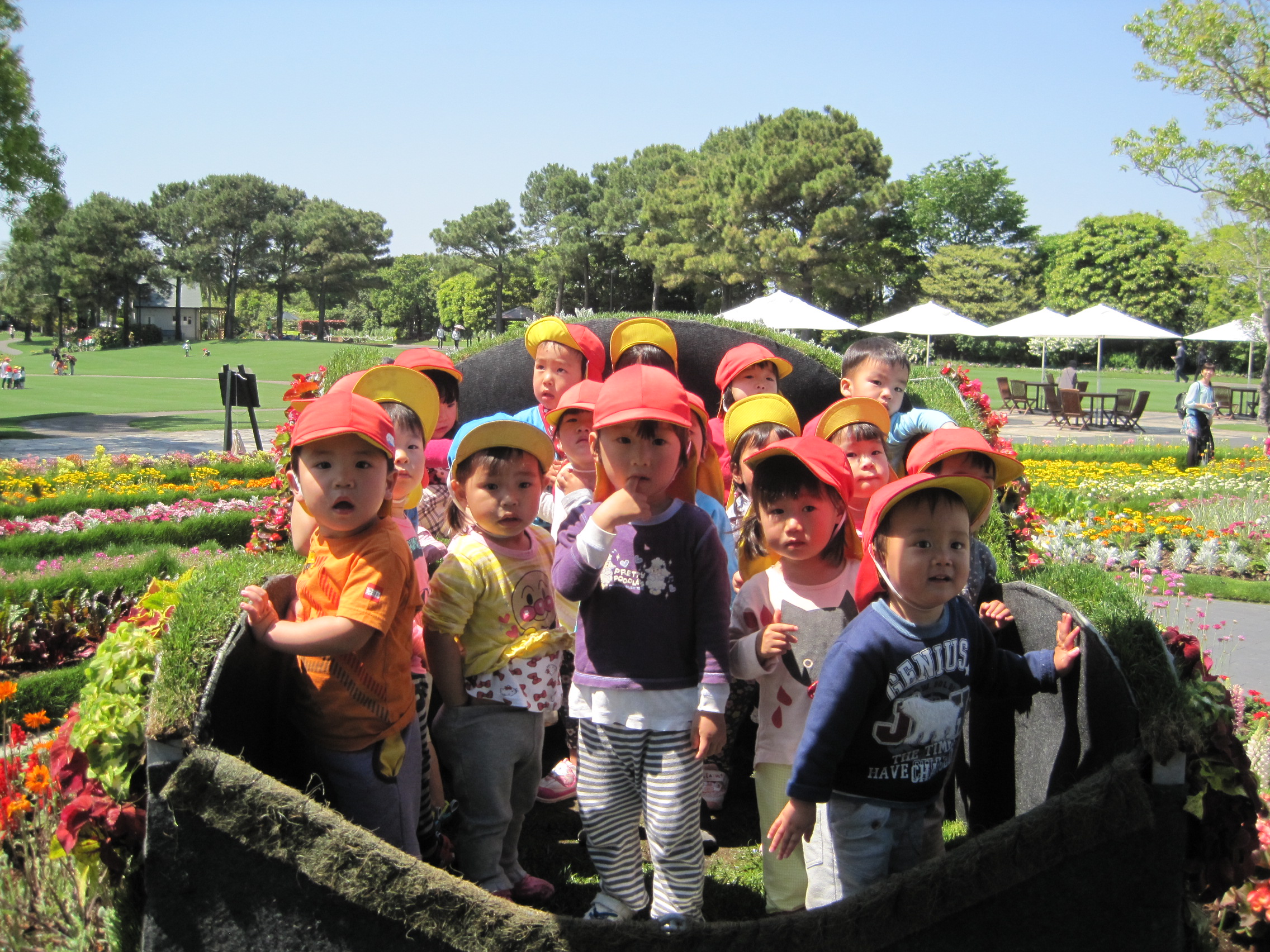 歓迎遠足 4月23日(水) 歓迎遠足で『フローランテ宮崎』に行きました。 春のフローラル祭を行っていたので、色とりどりのお花が沢山咲いていましたよ。 フラワー機関車に乗ったり、芝生広場を駆け回ったり、楽しい時間を過ごしました。