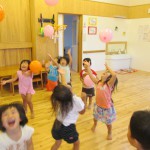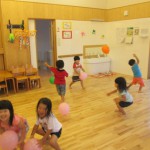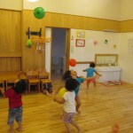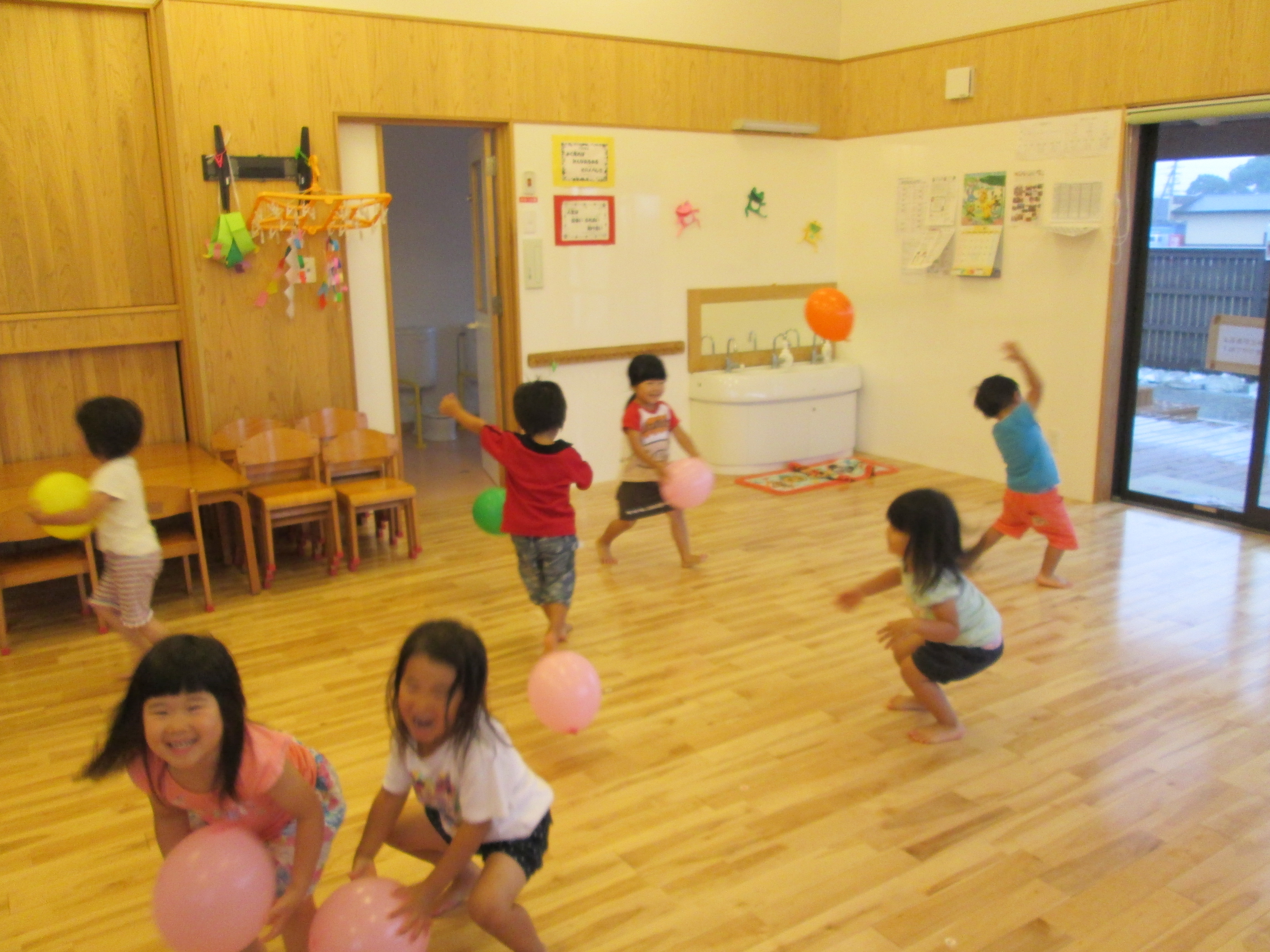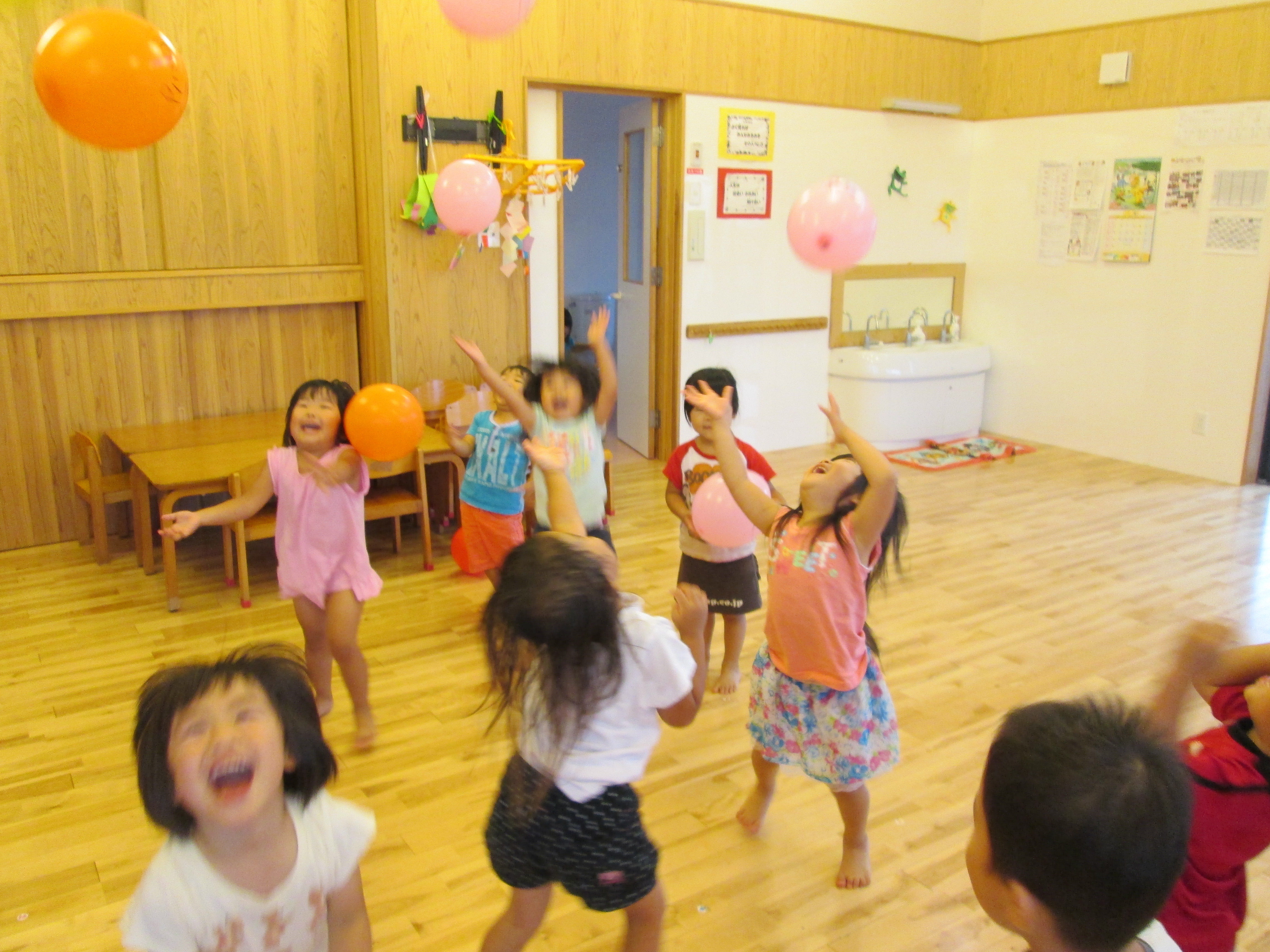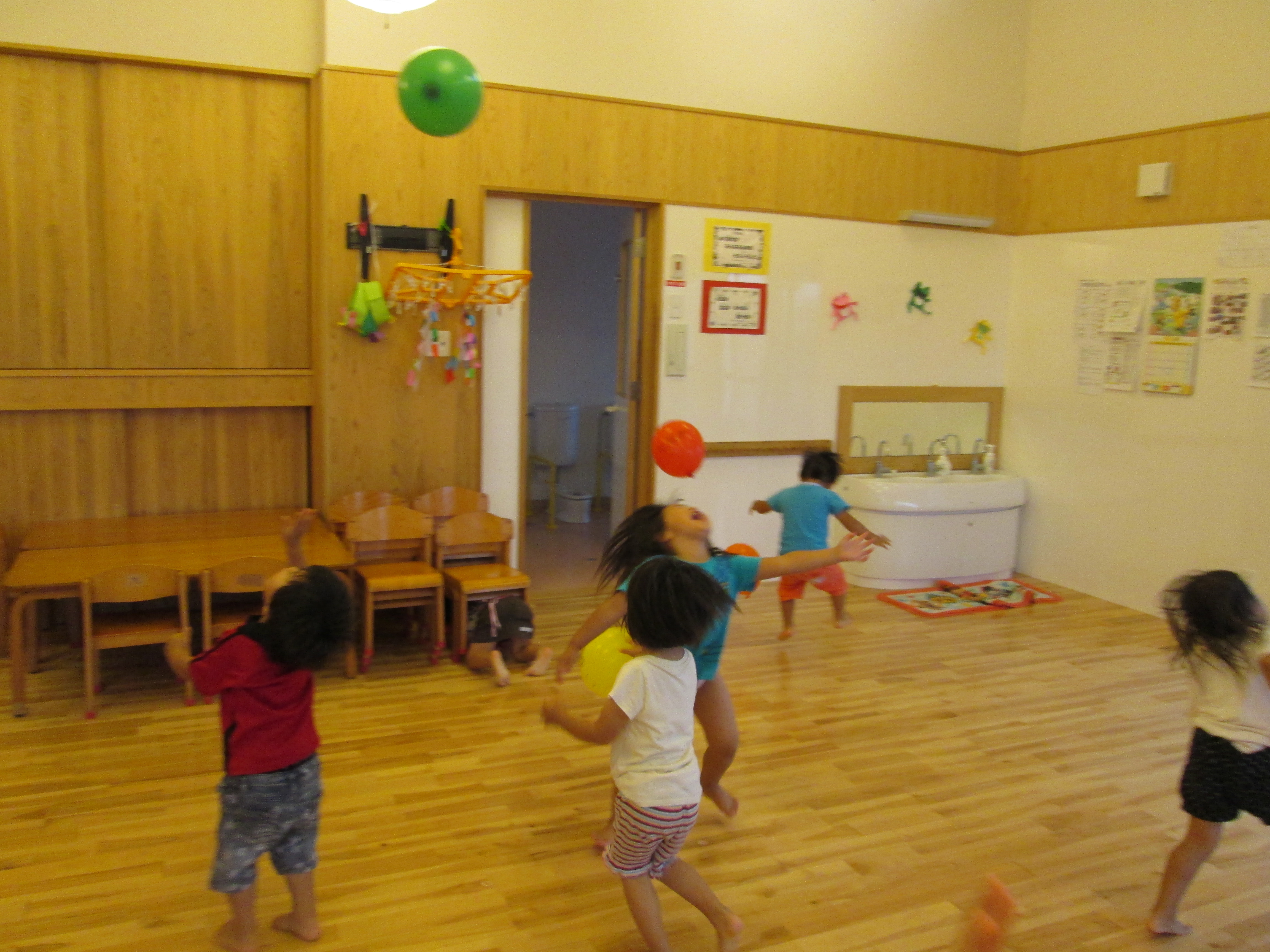 ぱんだ組さんは室内で風船あそびに夢中です。