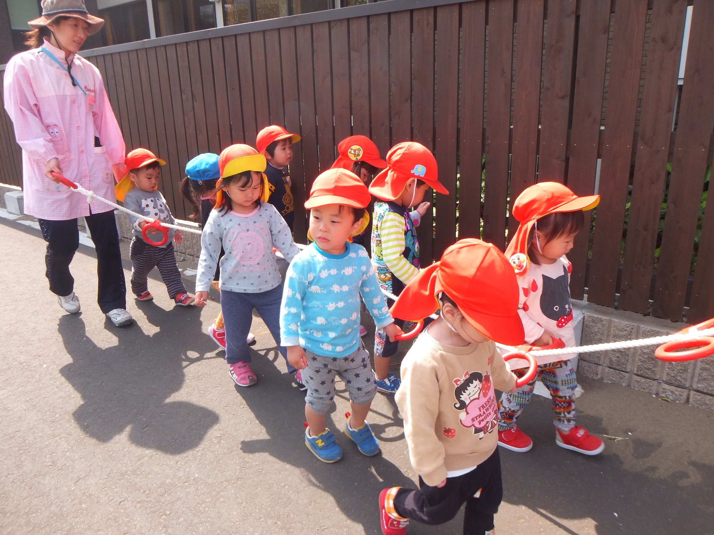 うさぎ組さんは、自由ケ丘団地の公園までお散歩に行きました。