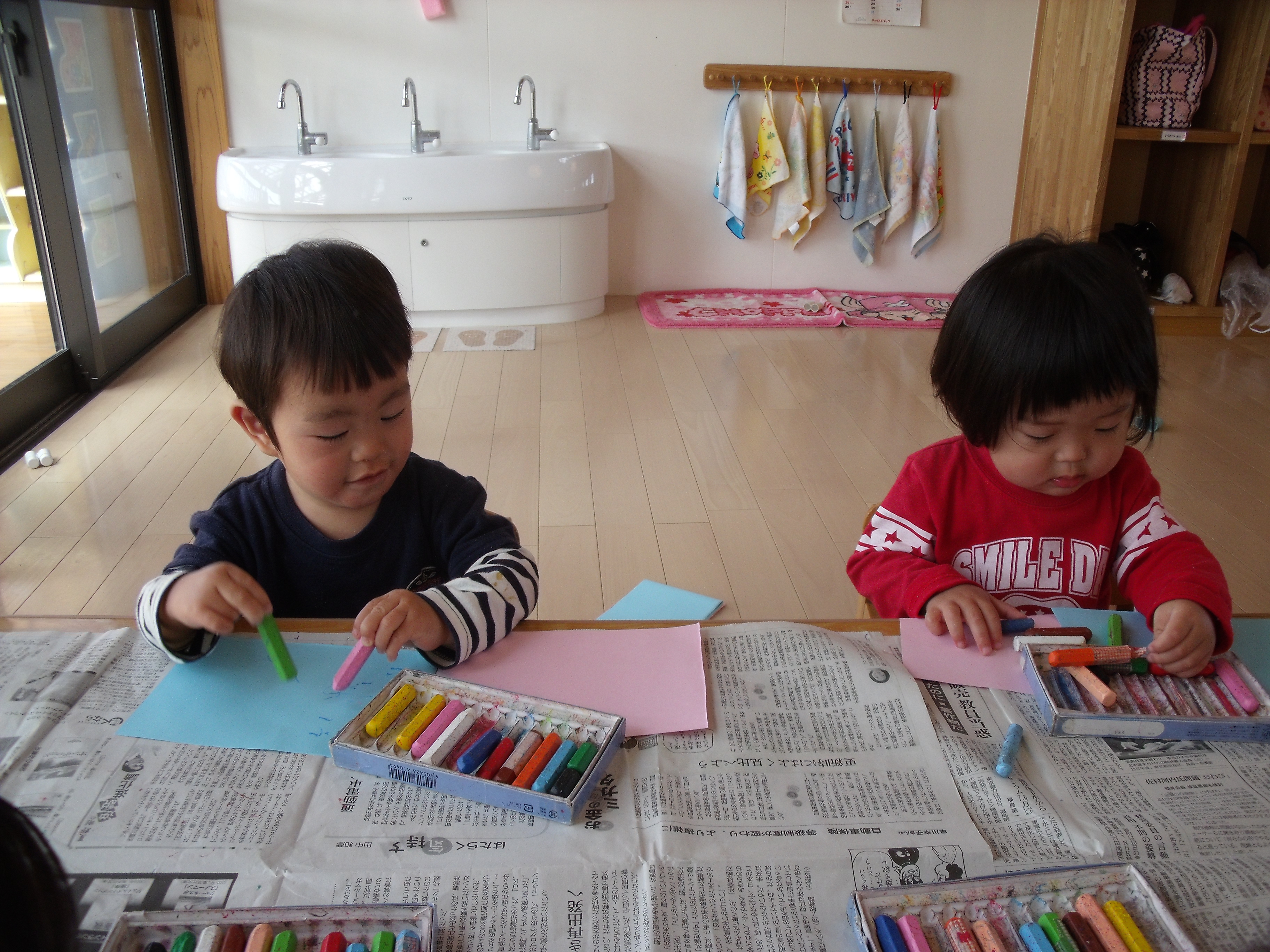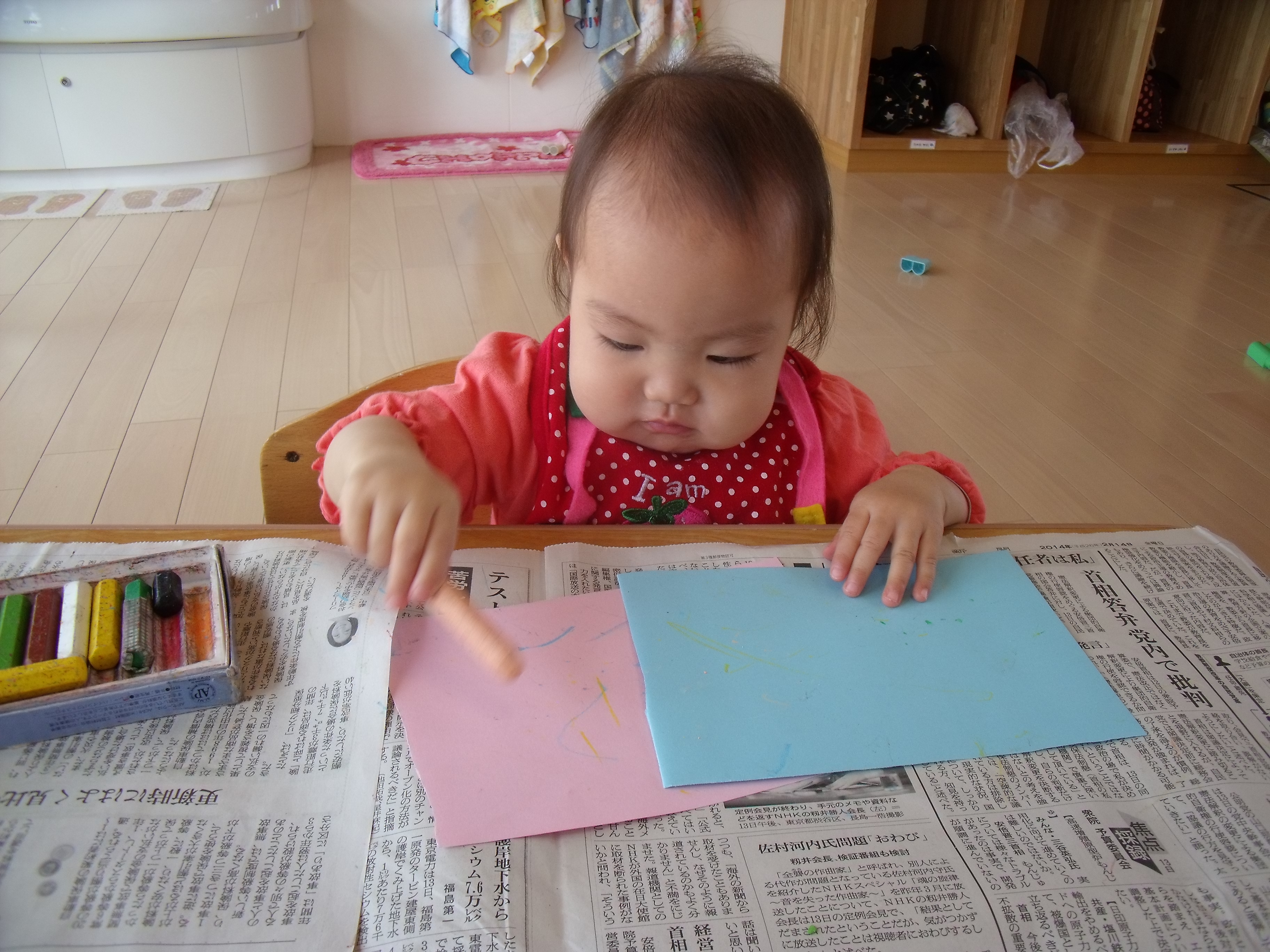 クレヨンを使ってクルクルカキカキ・・・。