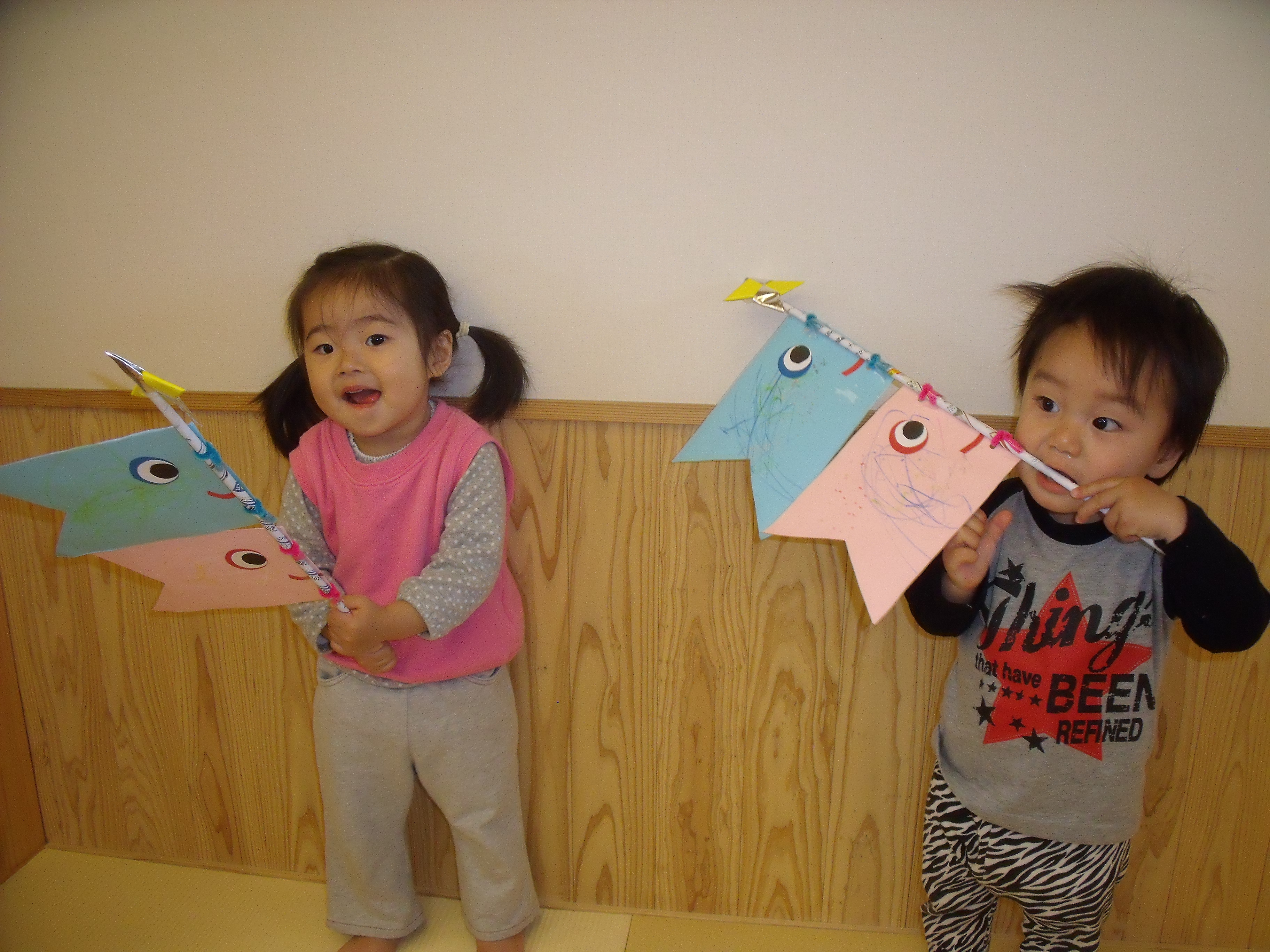 可愛い鯉のぼりができました。