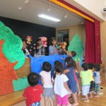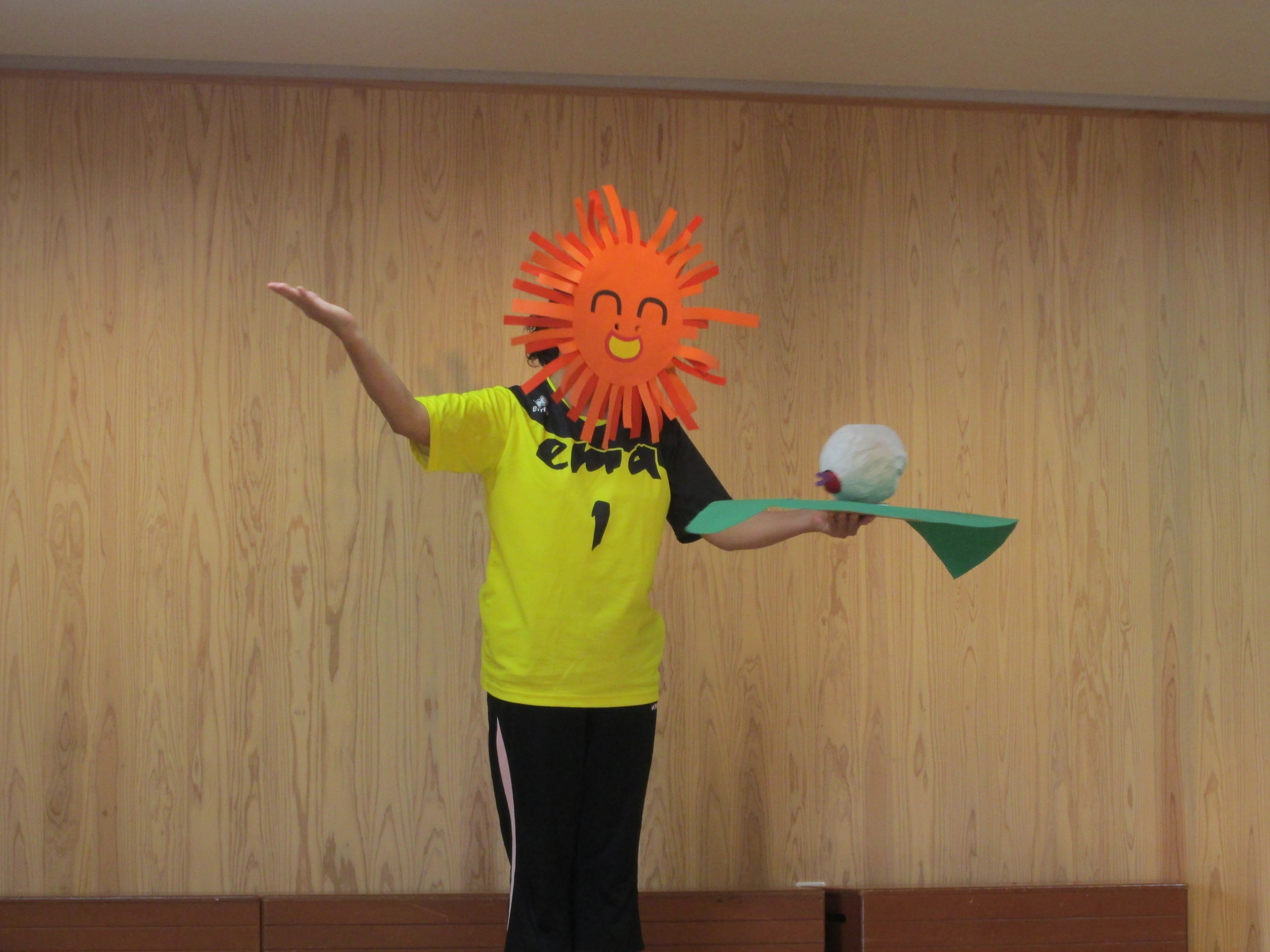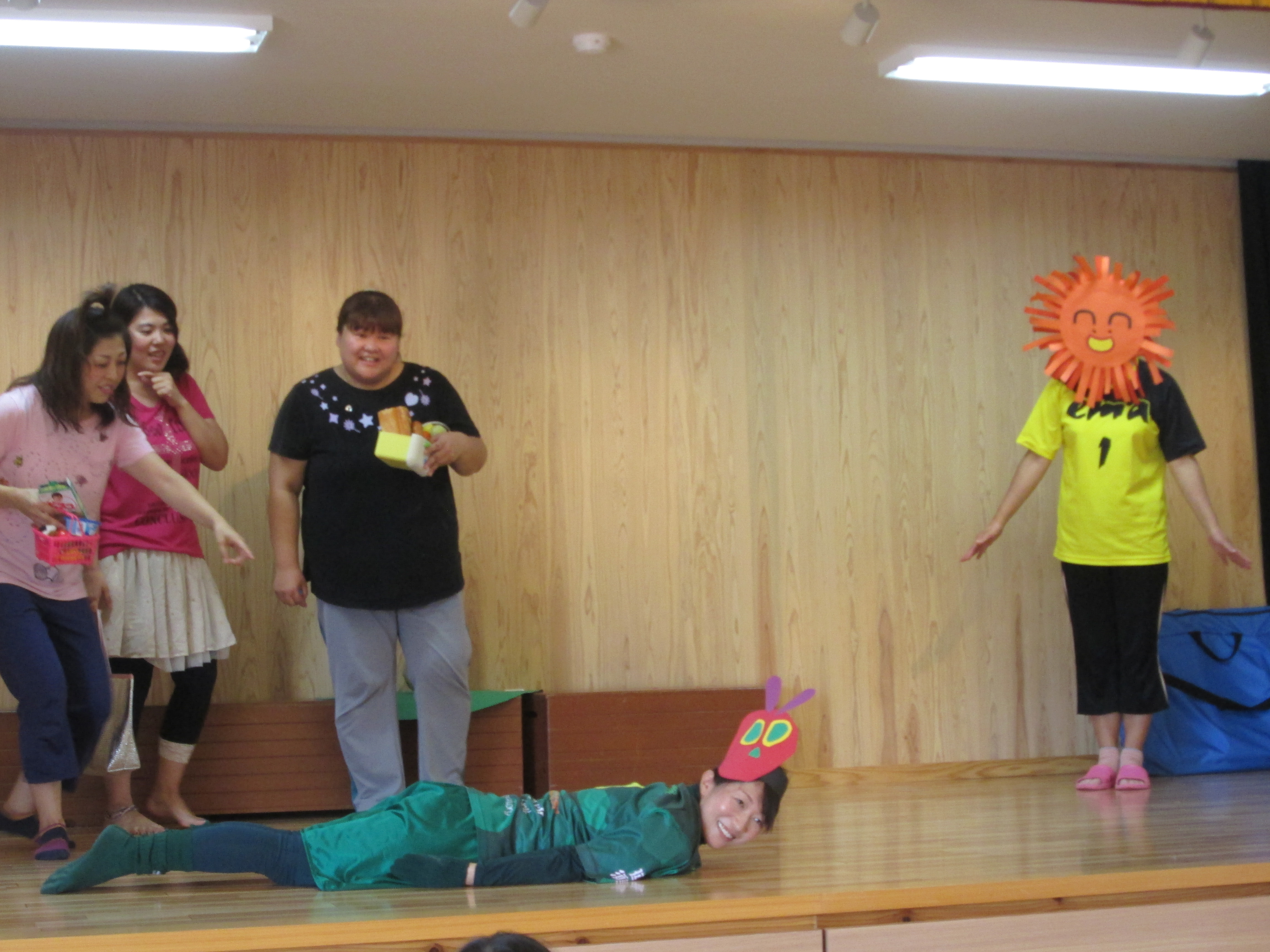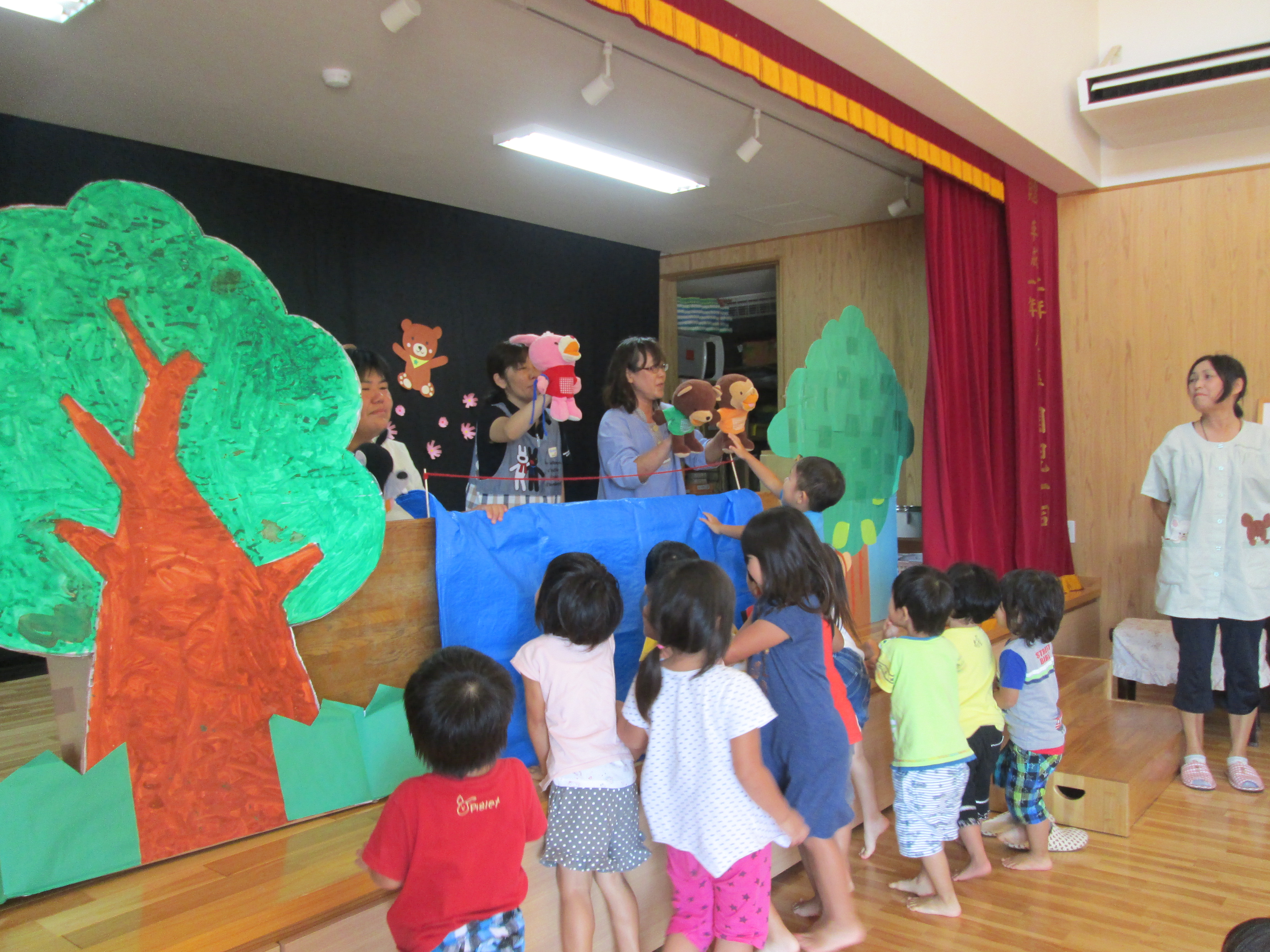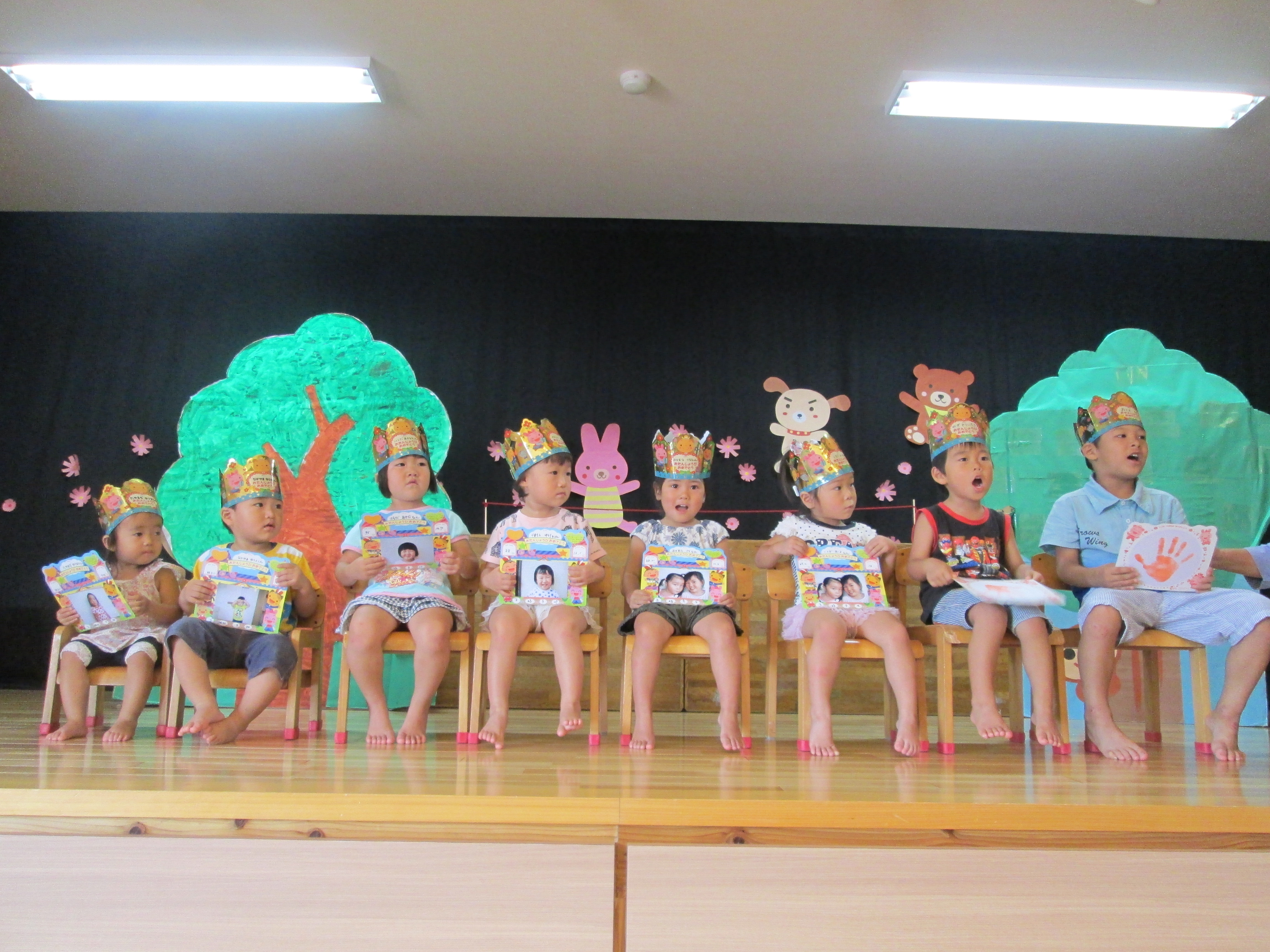 9月誕生会 9月17日(水) 9月生まれのお友達の誕生会でした。 今月は、人間椅子やはらぺこあおむし等の先生たちの出し物を楽しみました。 誕生会メニューも、冷しゃぶ・南瓜の冷製スープ・なすとトマトのチーズ焼き・ふりかけご飯・ぶどう等ご馳走いっぱいでした。