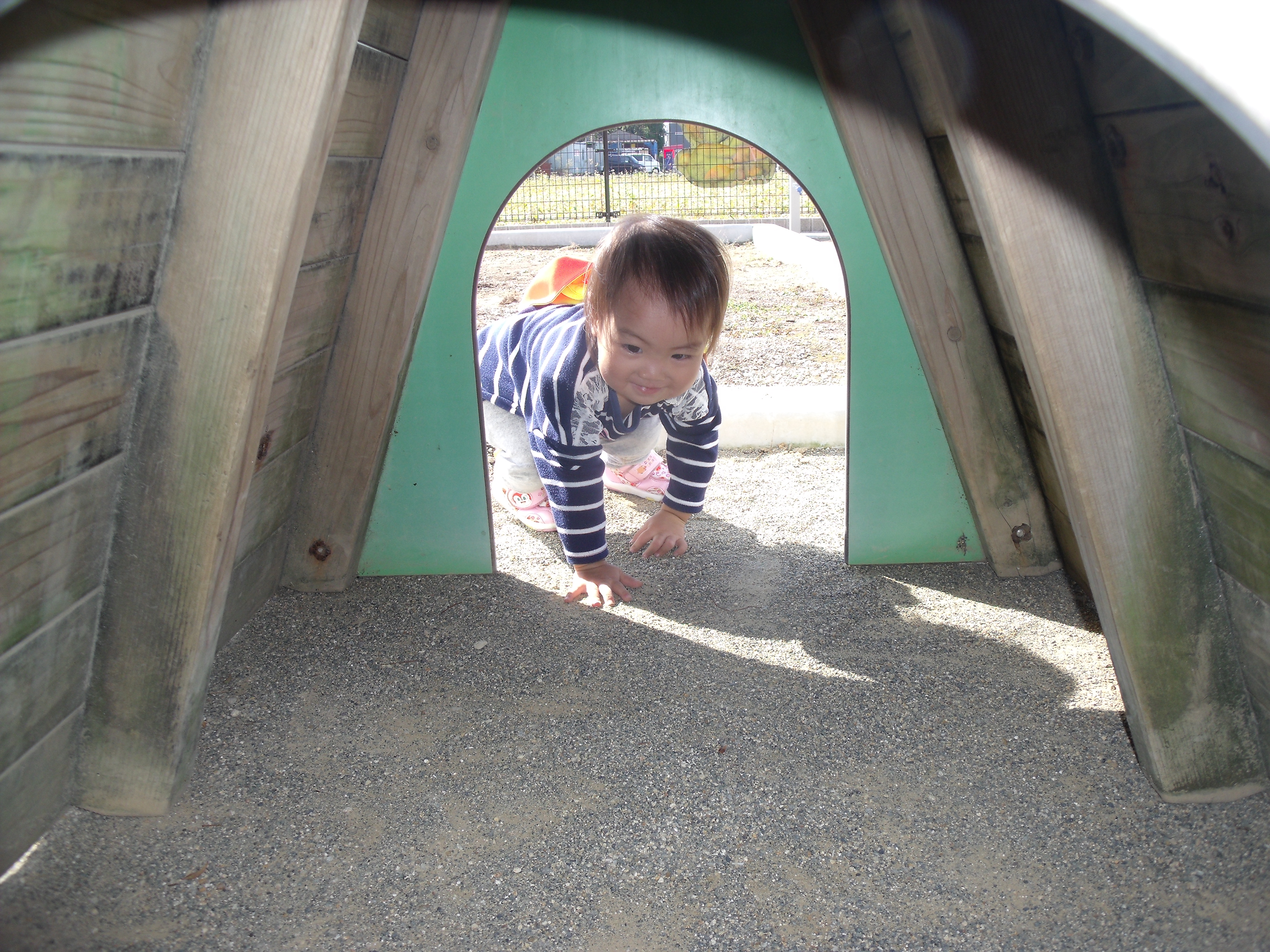 トンネルくぐりやチェーン登り・・・色々な遊具に果敢に挑戦していますよ。