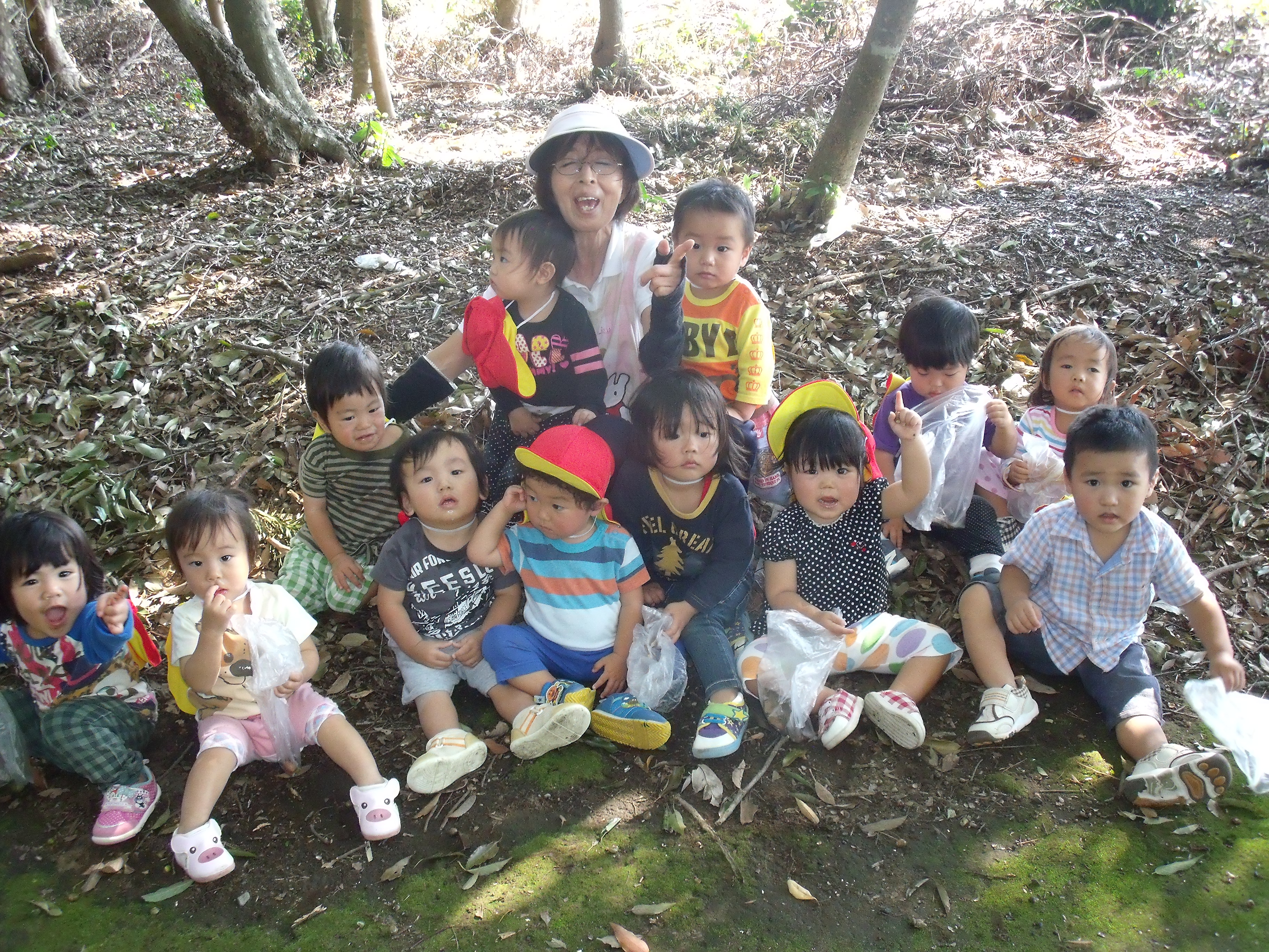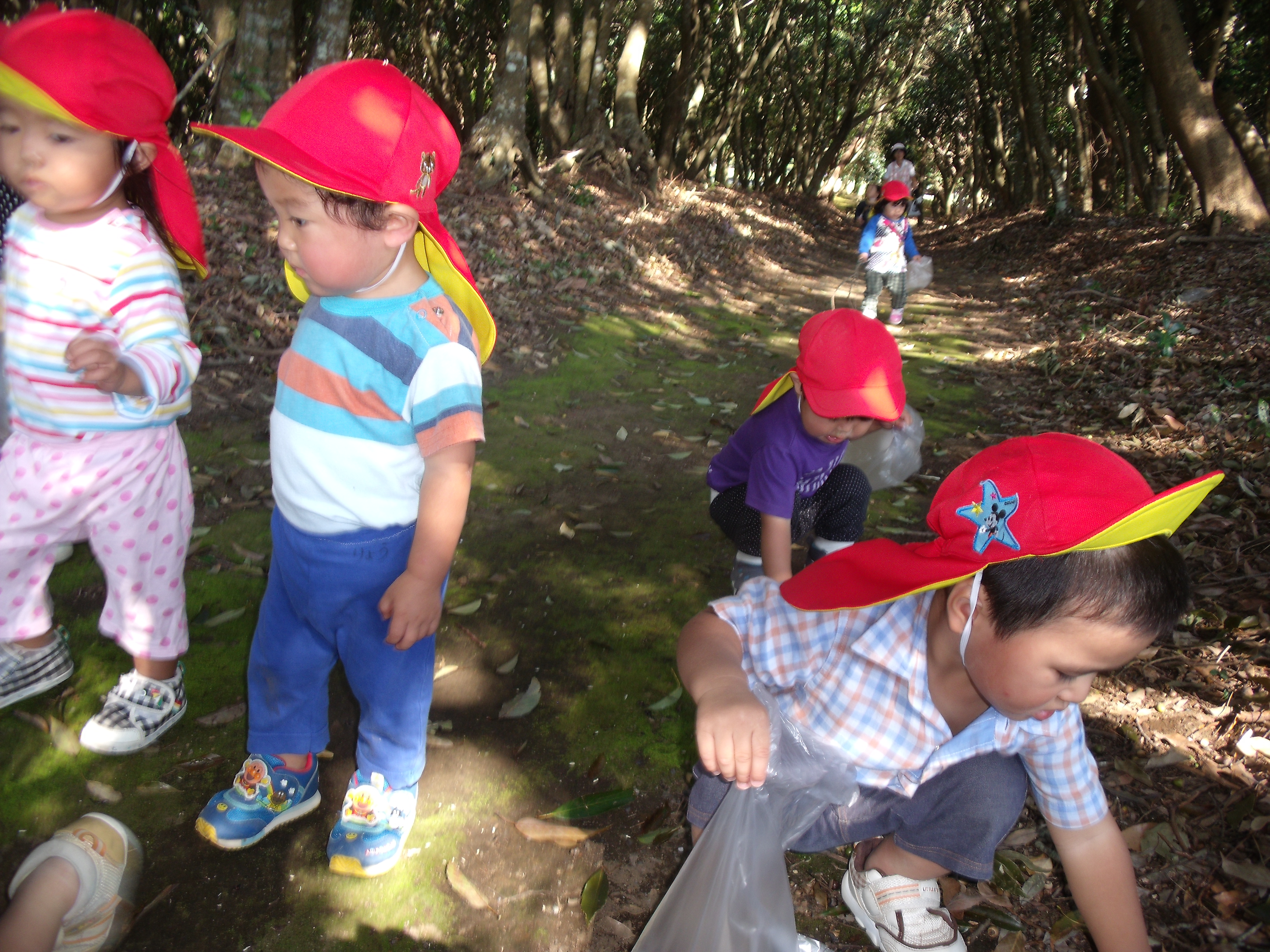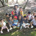 落ち葉の林を歩いていくと・・・「あっ、どんぐり~♪」 沢山拾って帰ろうね。