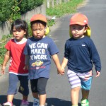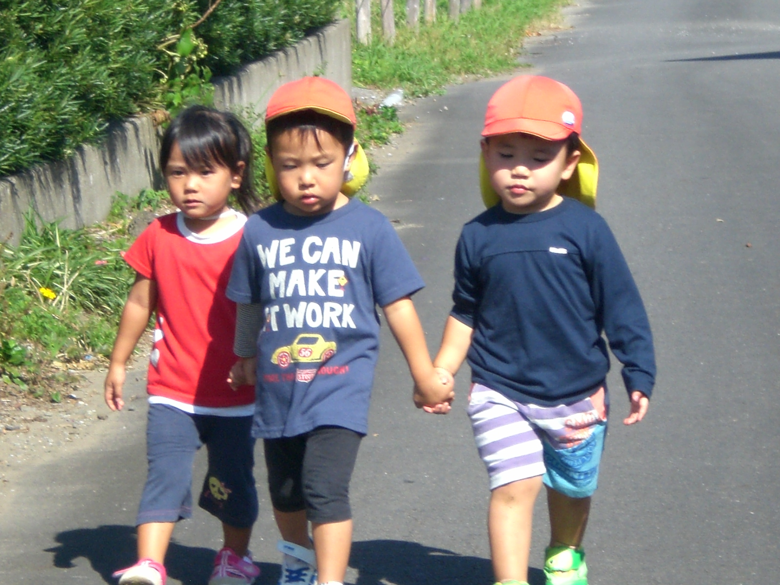 うさぎ組さんは、おててをつないで散歩に出かけましたよ。