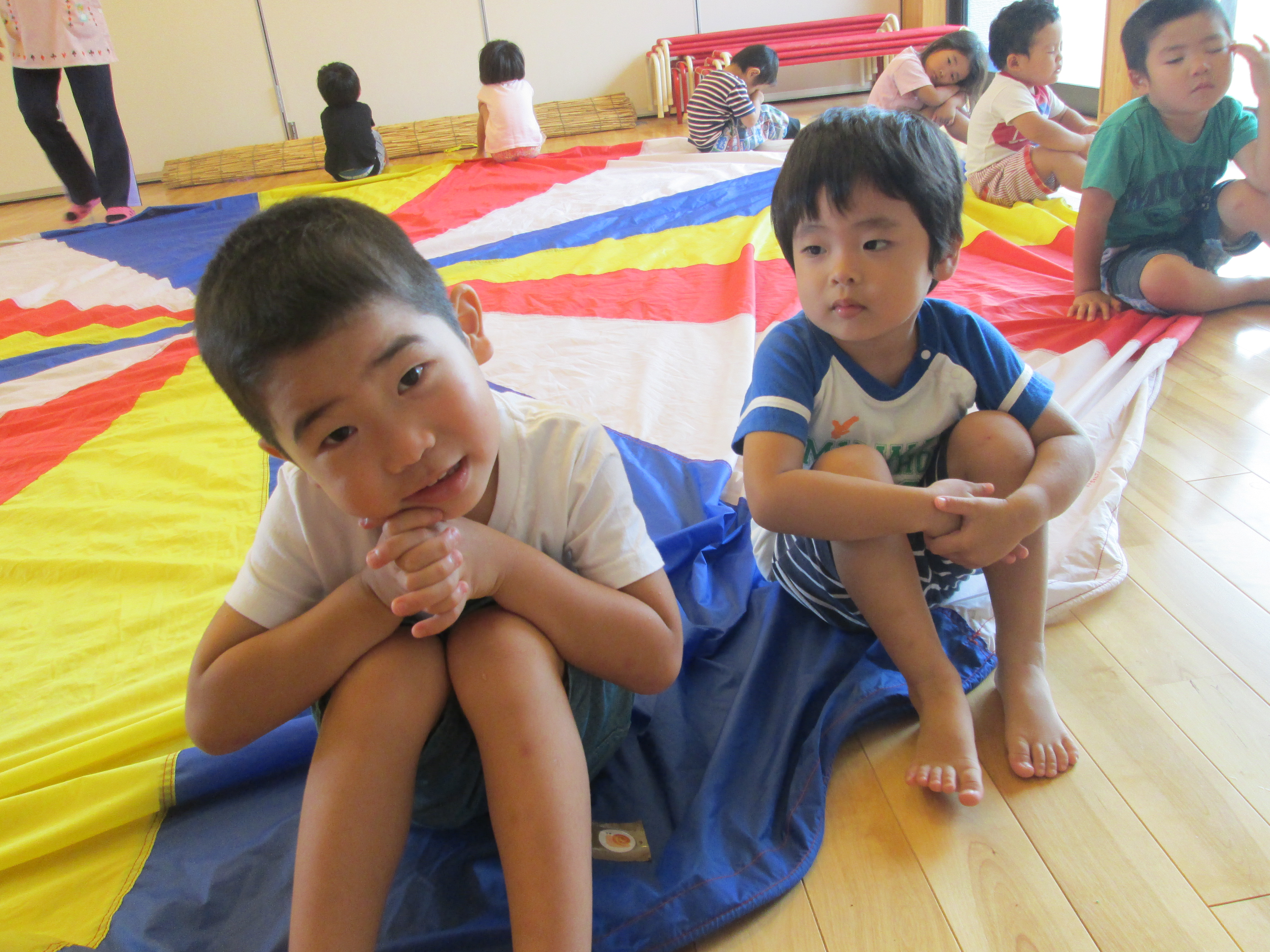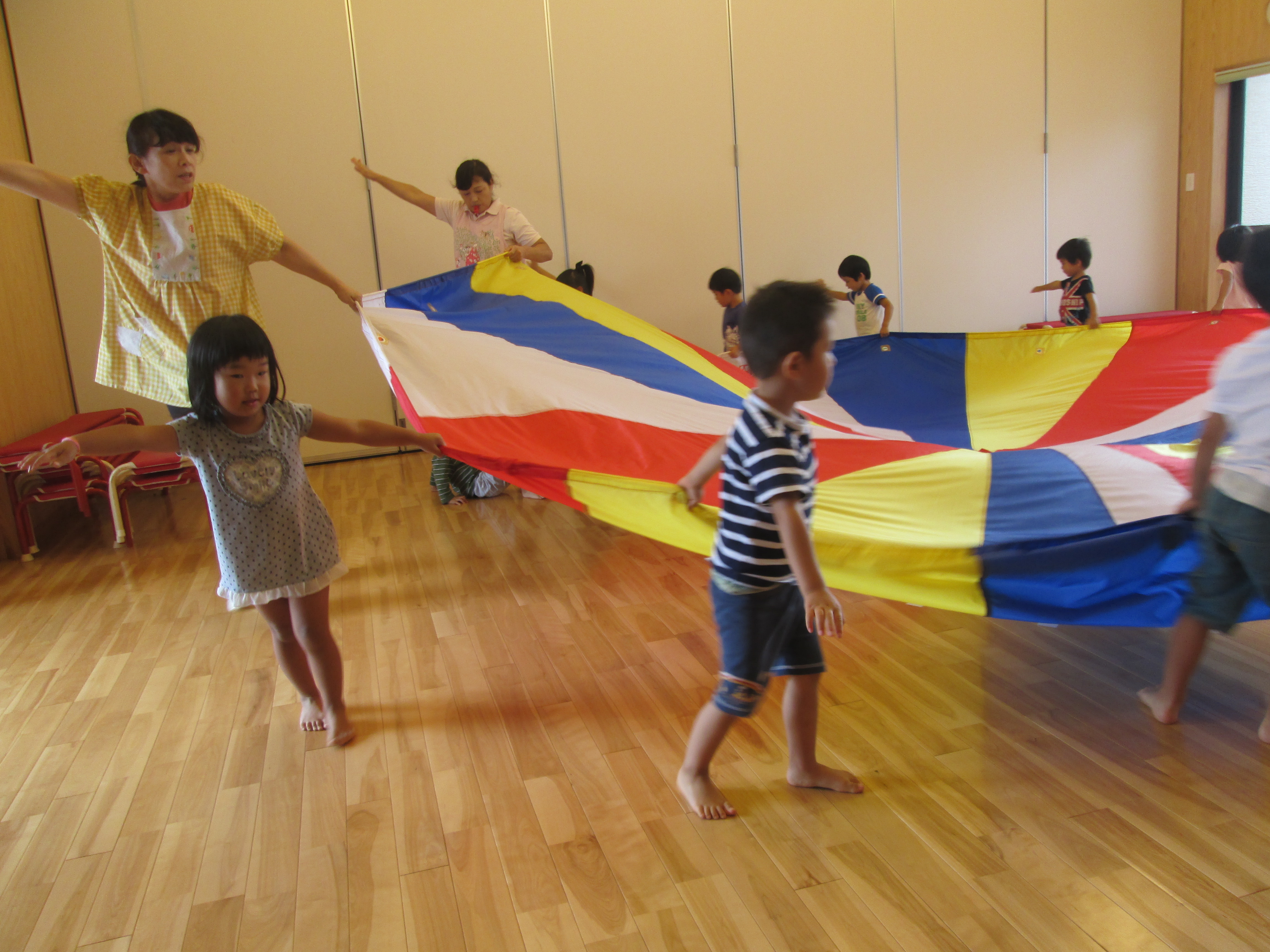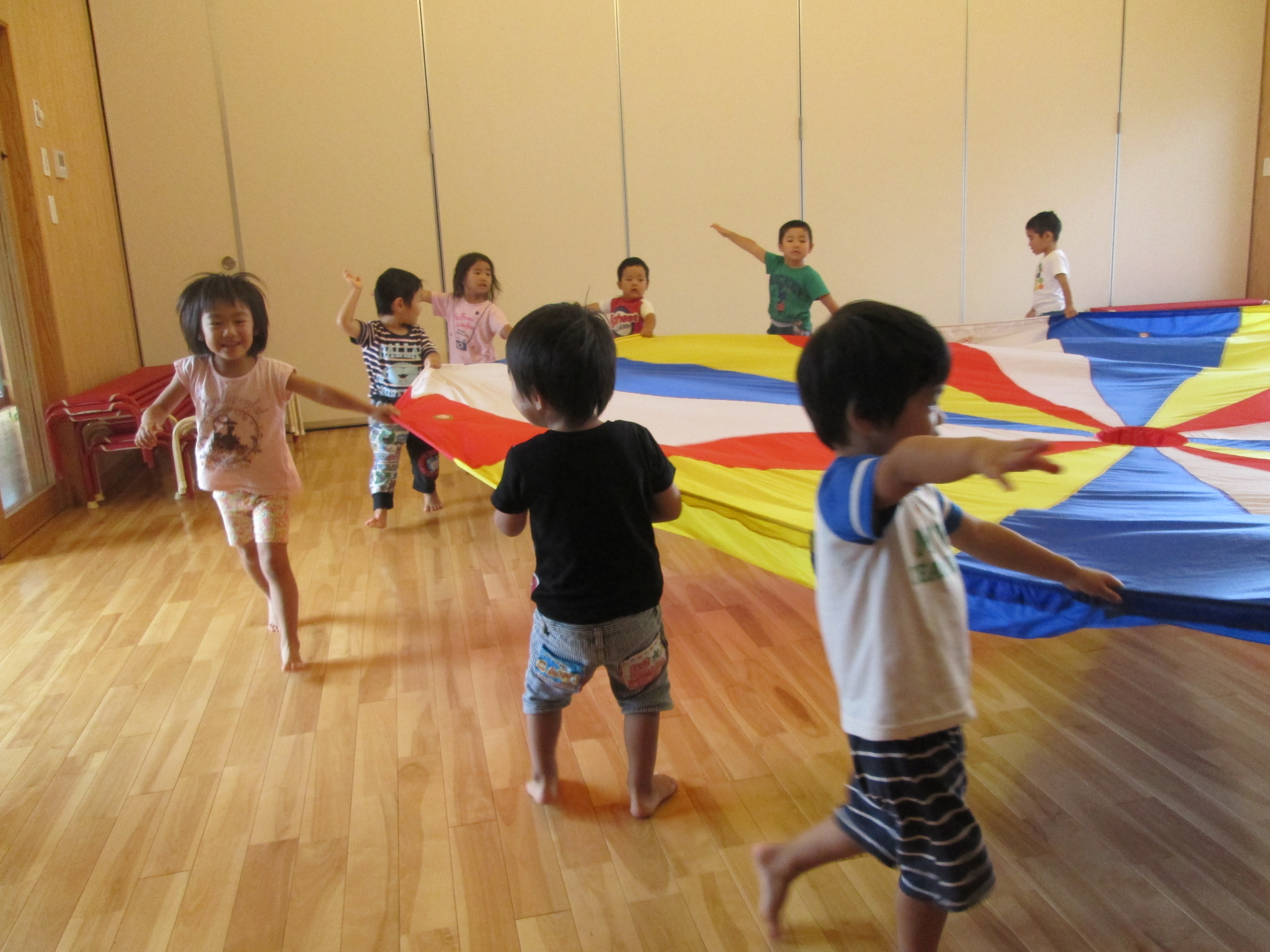 パラバルーン 10月10日(金) ぱんだ組さんは、運動会で披露するパラバルーンの練習に取り組んでいます。 笛の合図で回ったり、上下に揺らしたり、中に入ったり・・・みんなの息がそろってきましたね。 運動会が楽しみです。