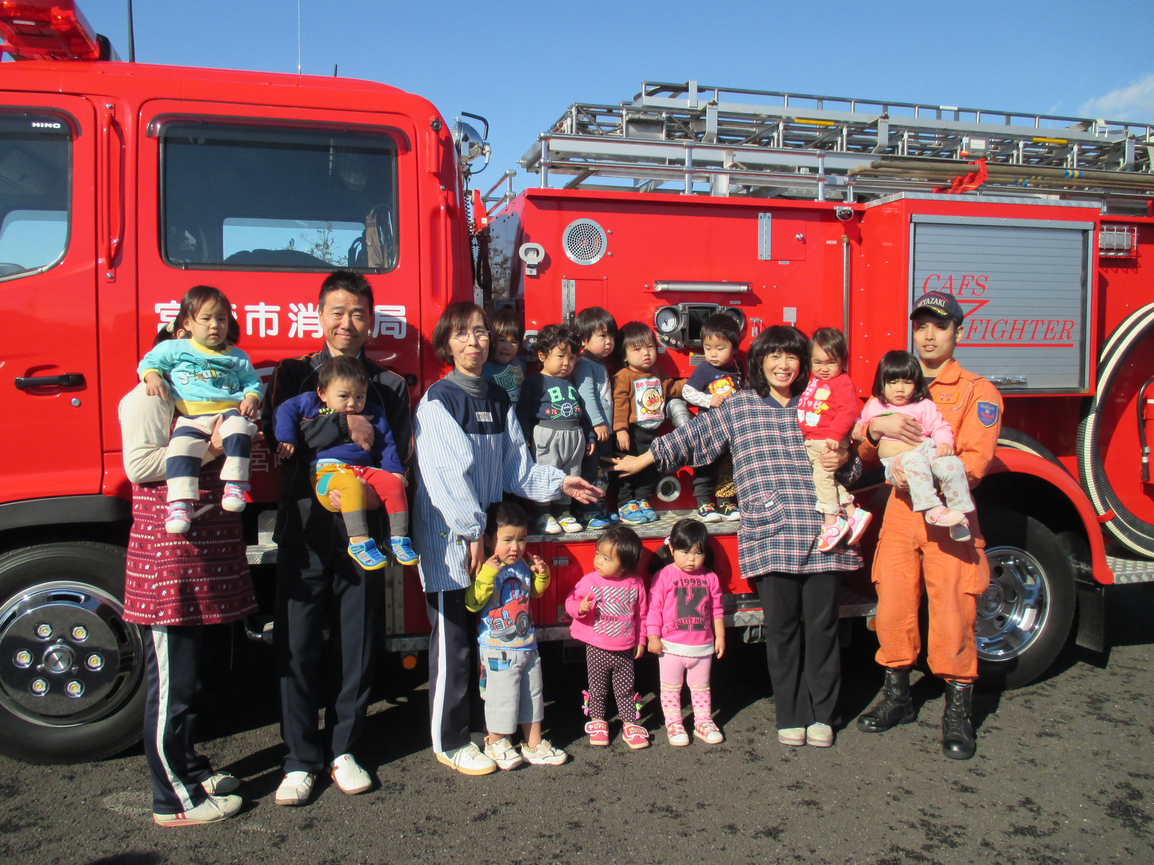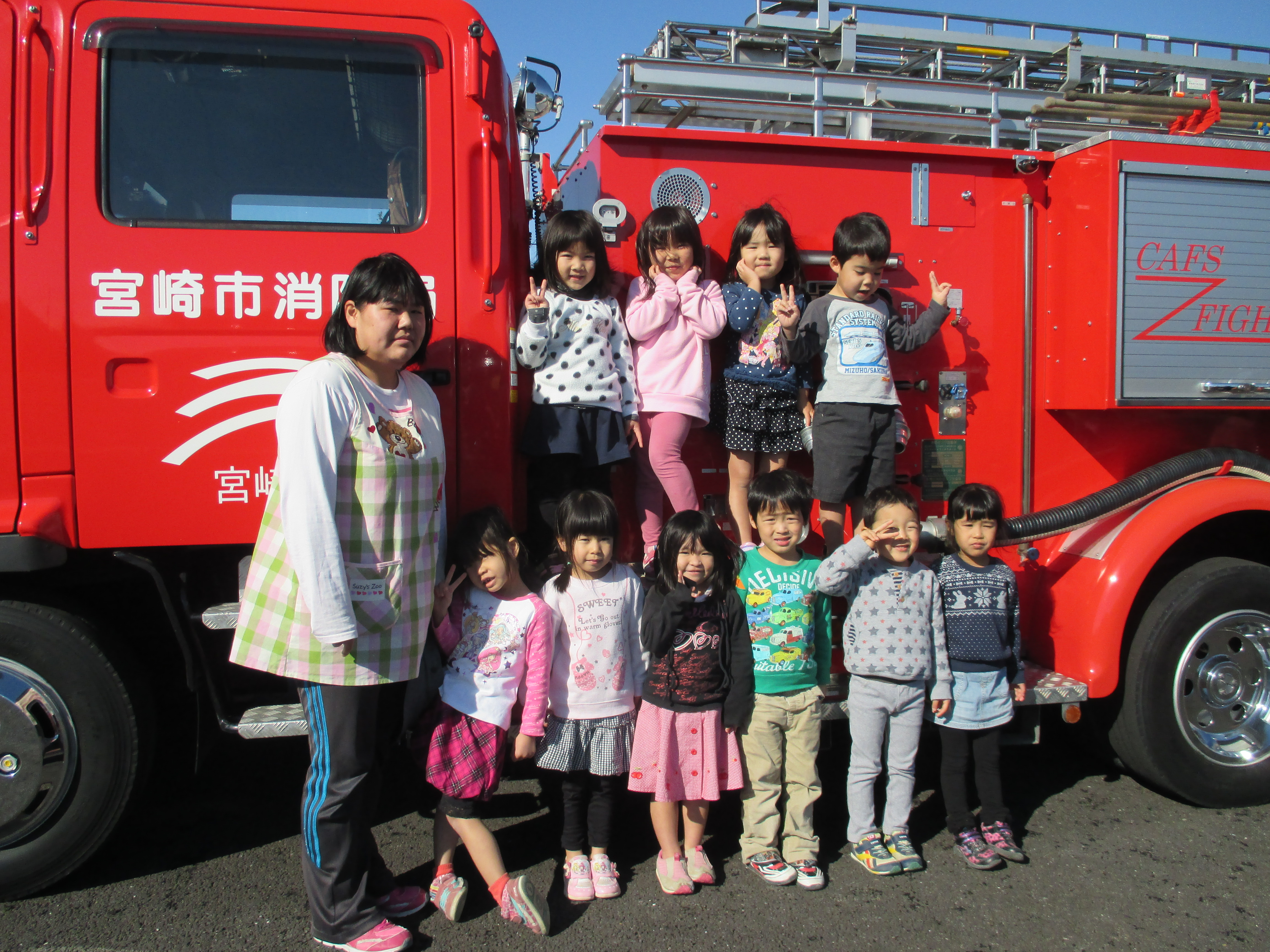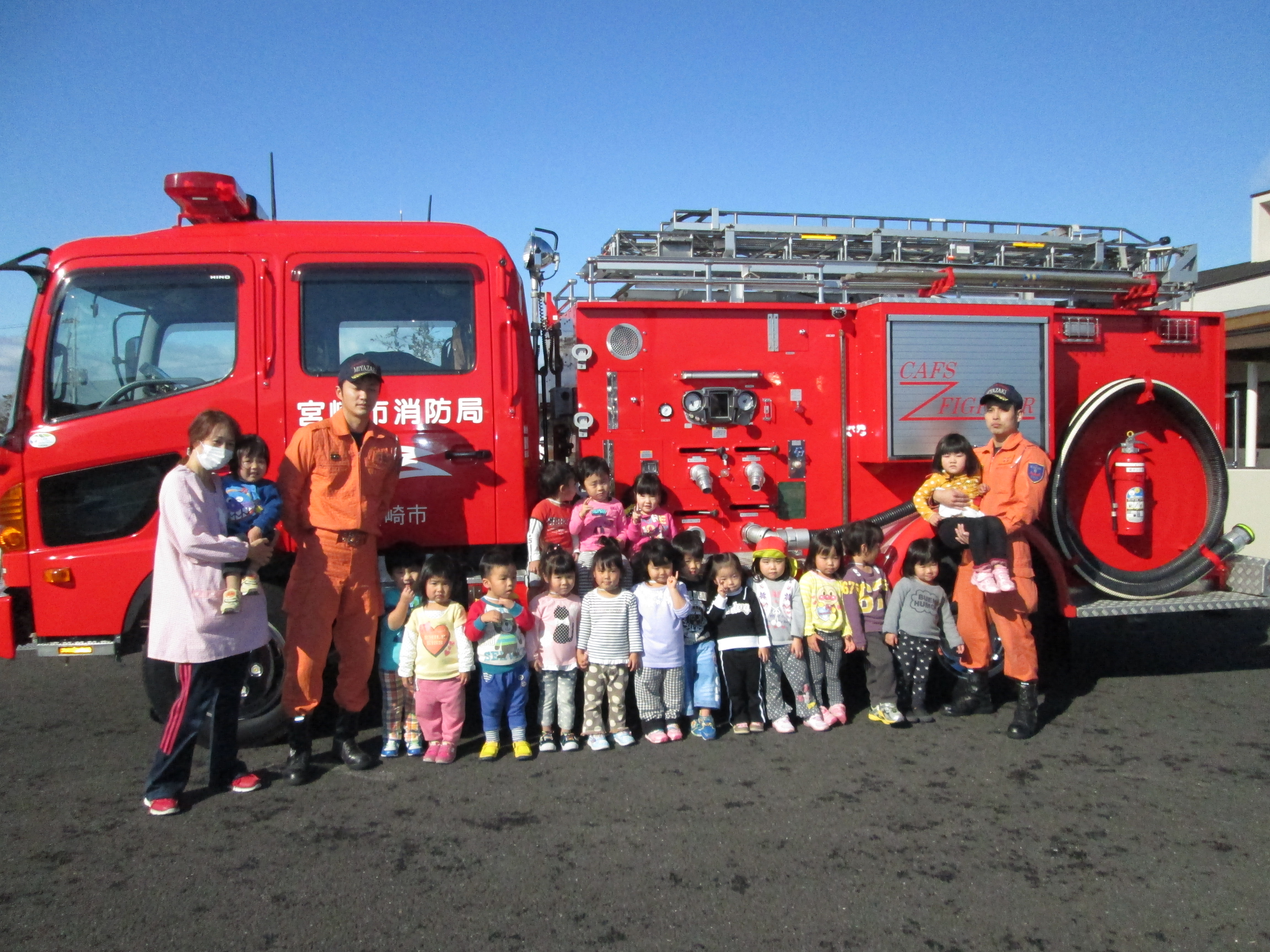 今回の避難訓練は、子ども達が楽しみにしていた消防車がやってきました。