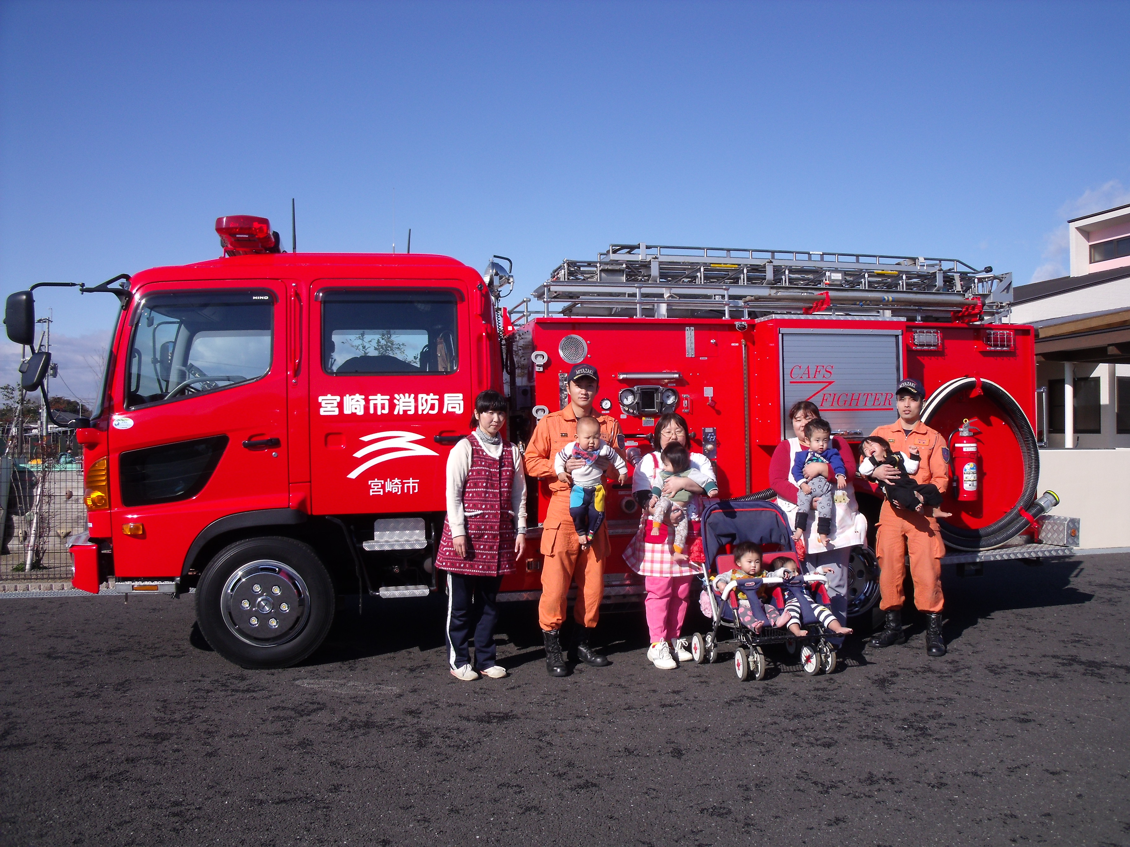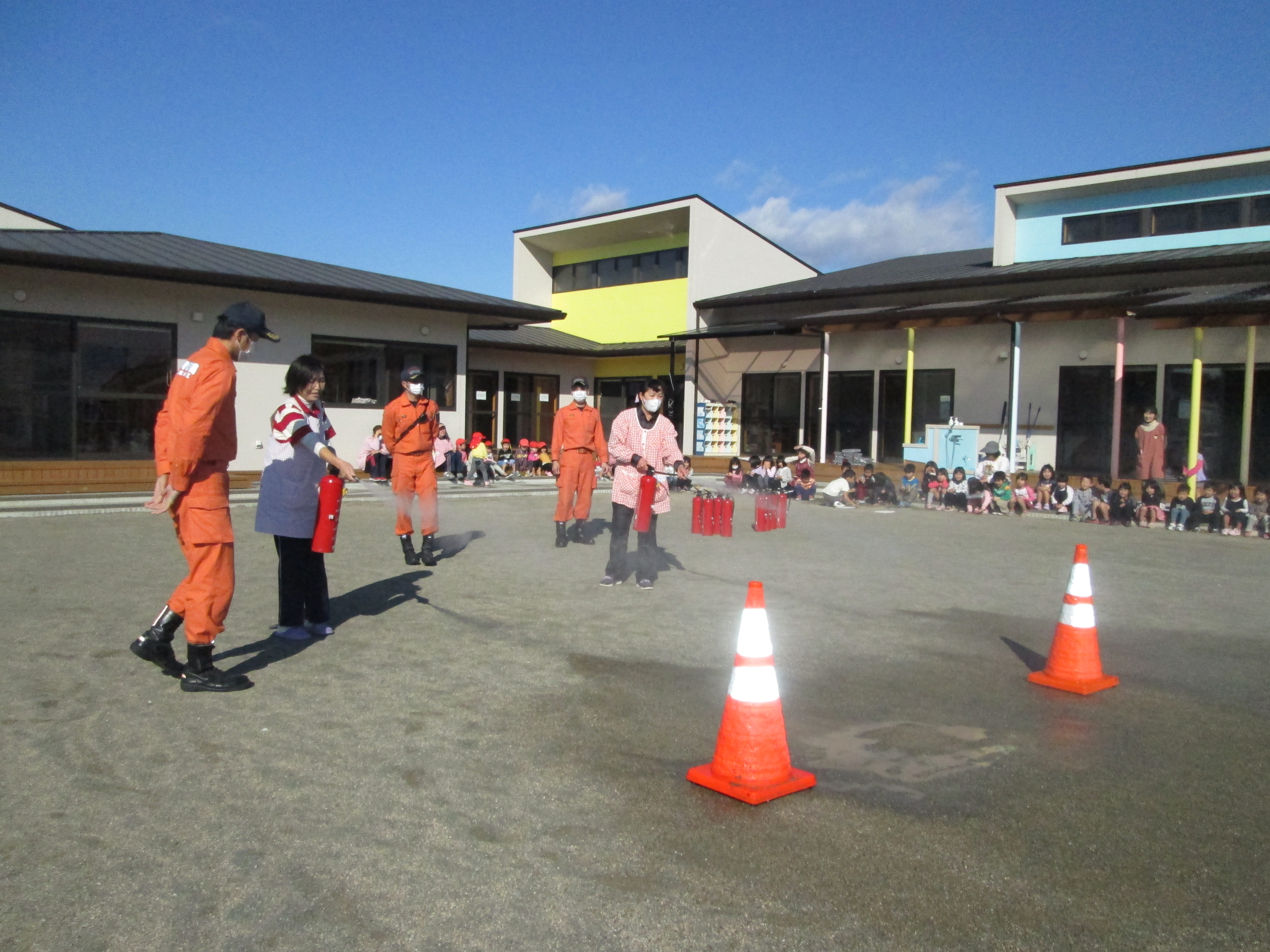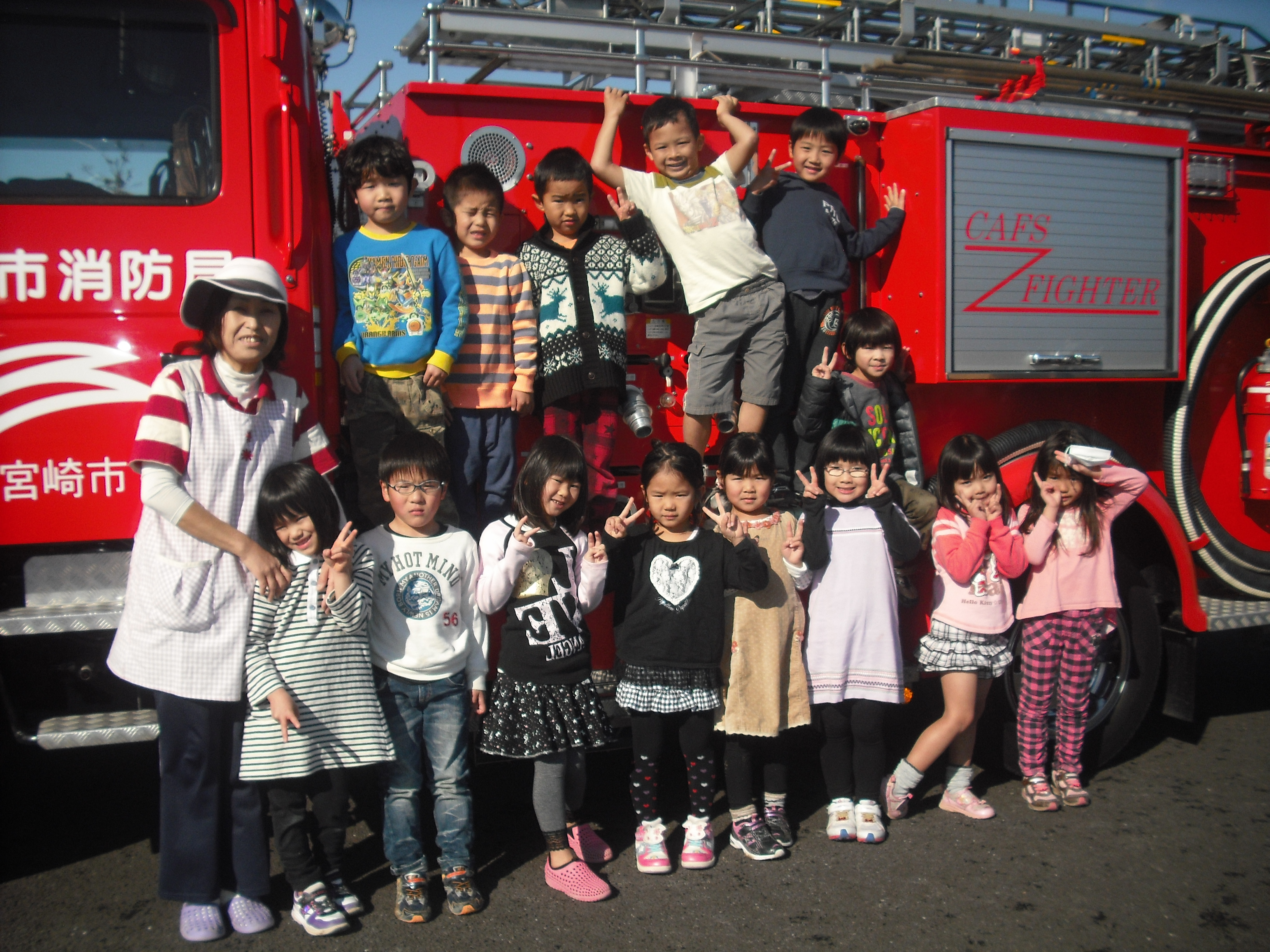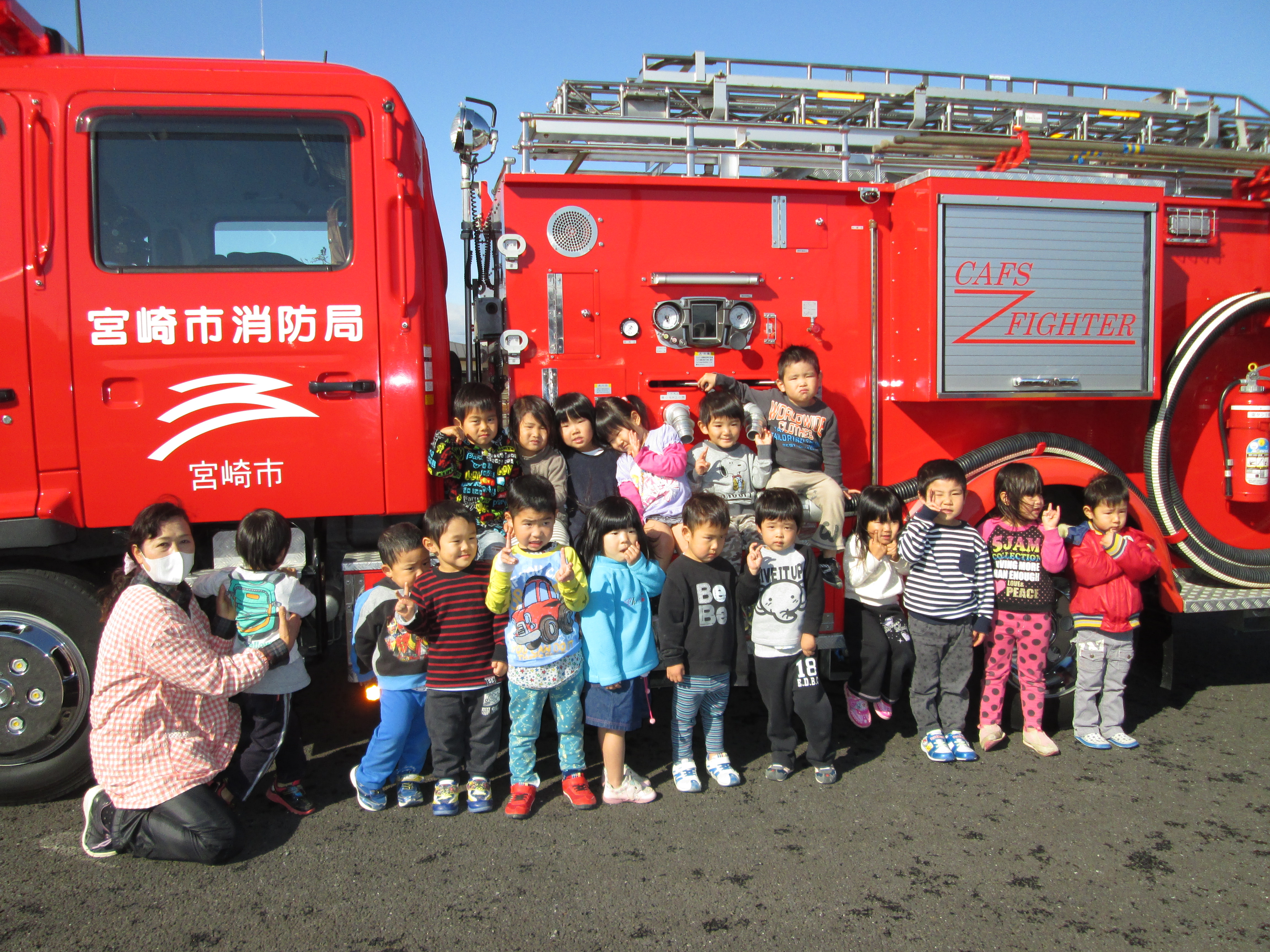 今回の避難訓練は、子ども達が楽しみにしていた消防車がやってきました。
