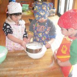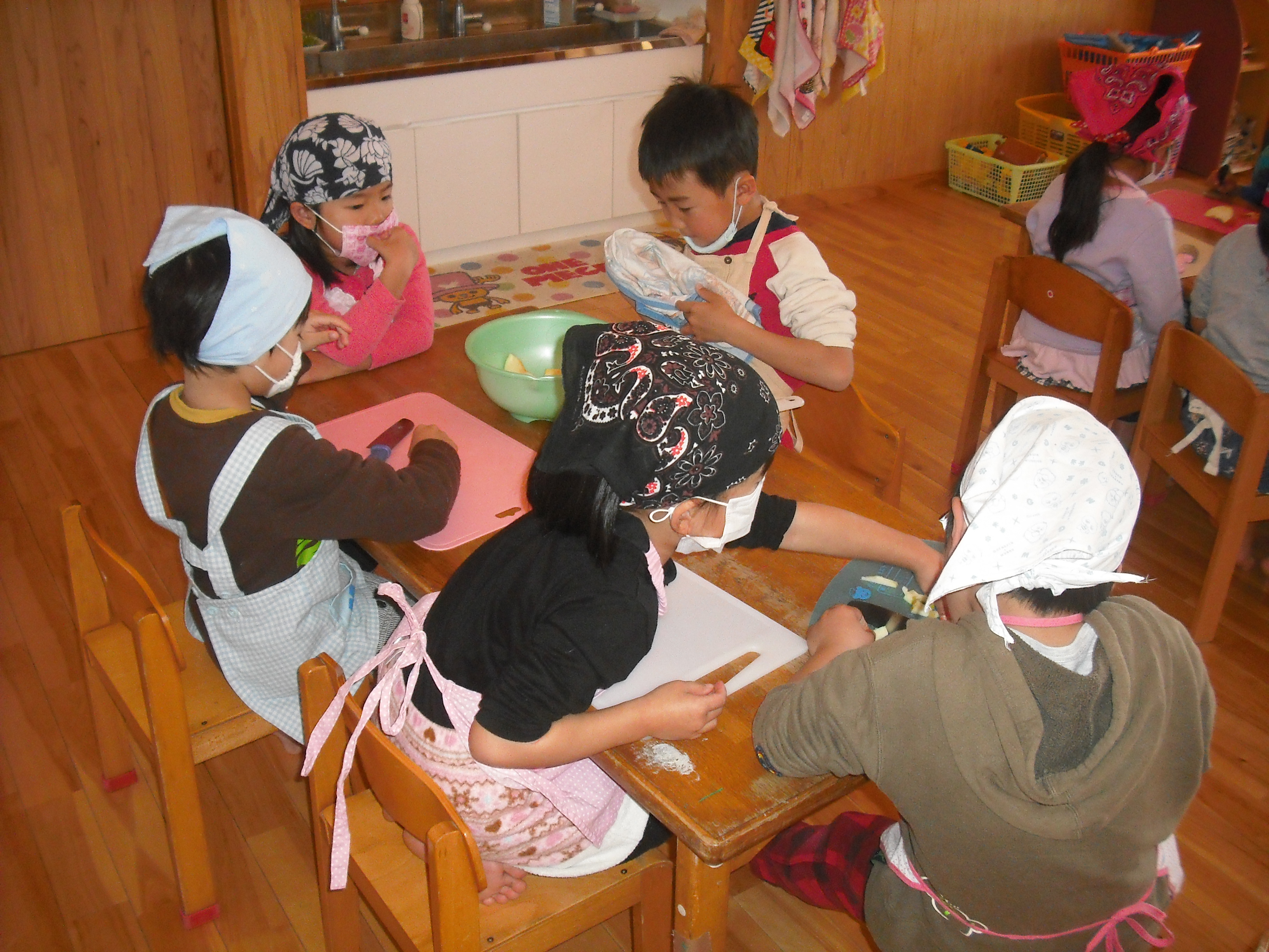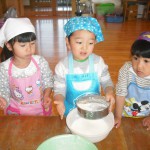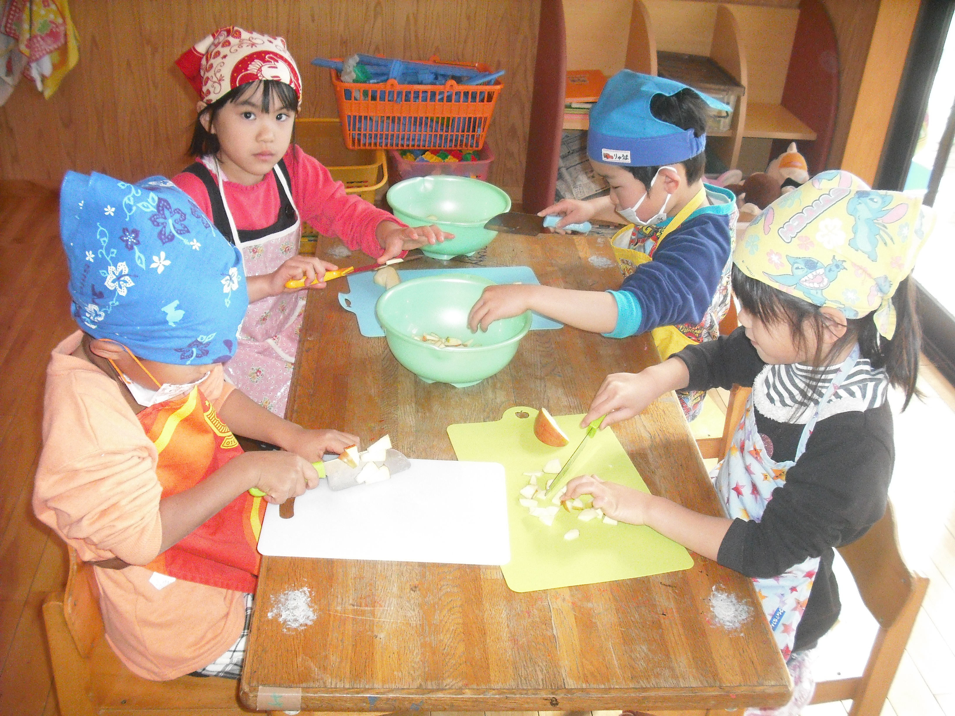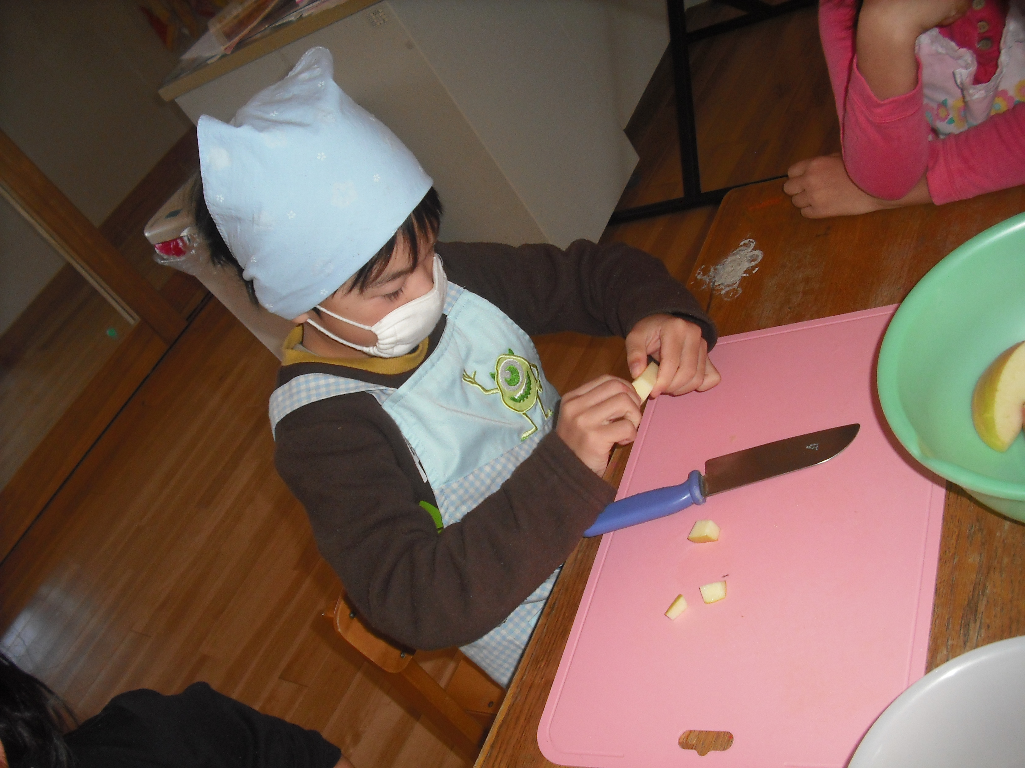 ドロップクッキー作り 2月6日(金) ぞう組さんときりん組さんが合同でクッキングを行いました。 きりん組さんがリンゴを切って、ぞう組さんが粉をふるいます。 一緒に混ぜて・・・オーブンで焼き上げたら、『リンゴのドロップクッキー』の出来上がり! 美味しいクッキーを頬張り、大満足の子ども達でした。