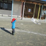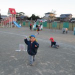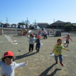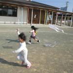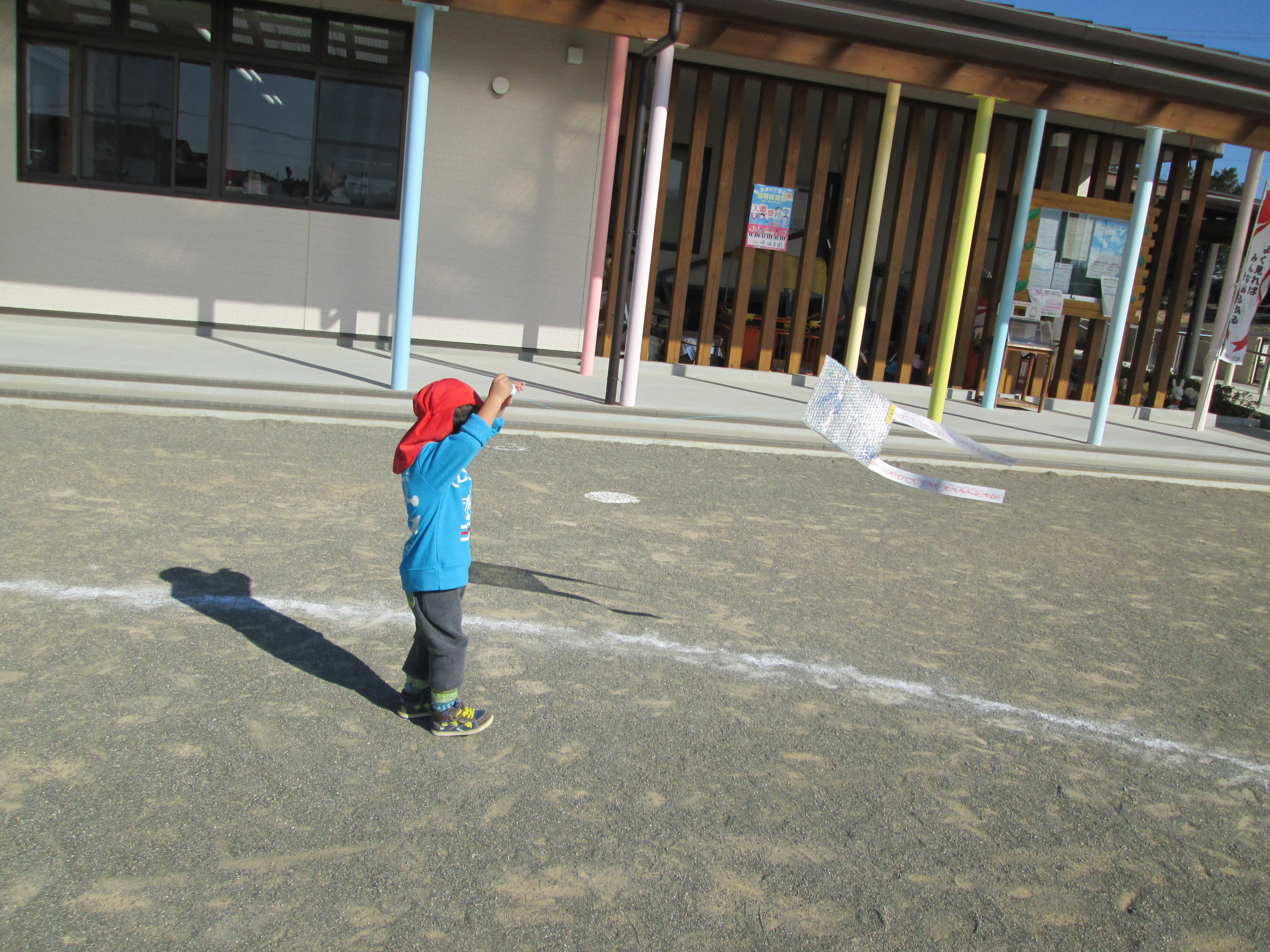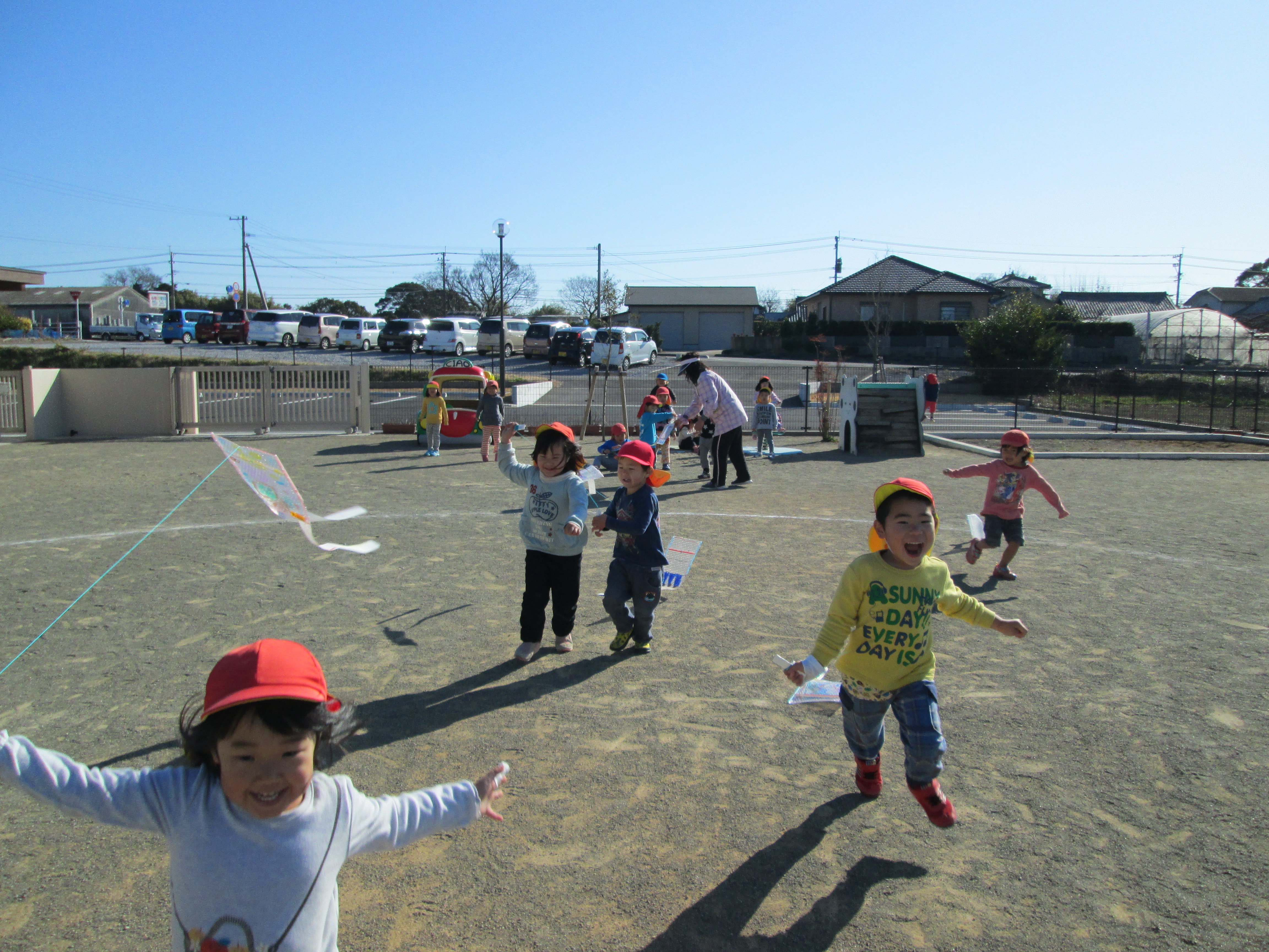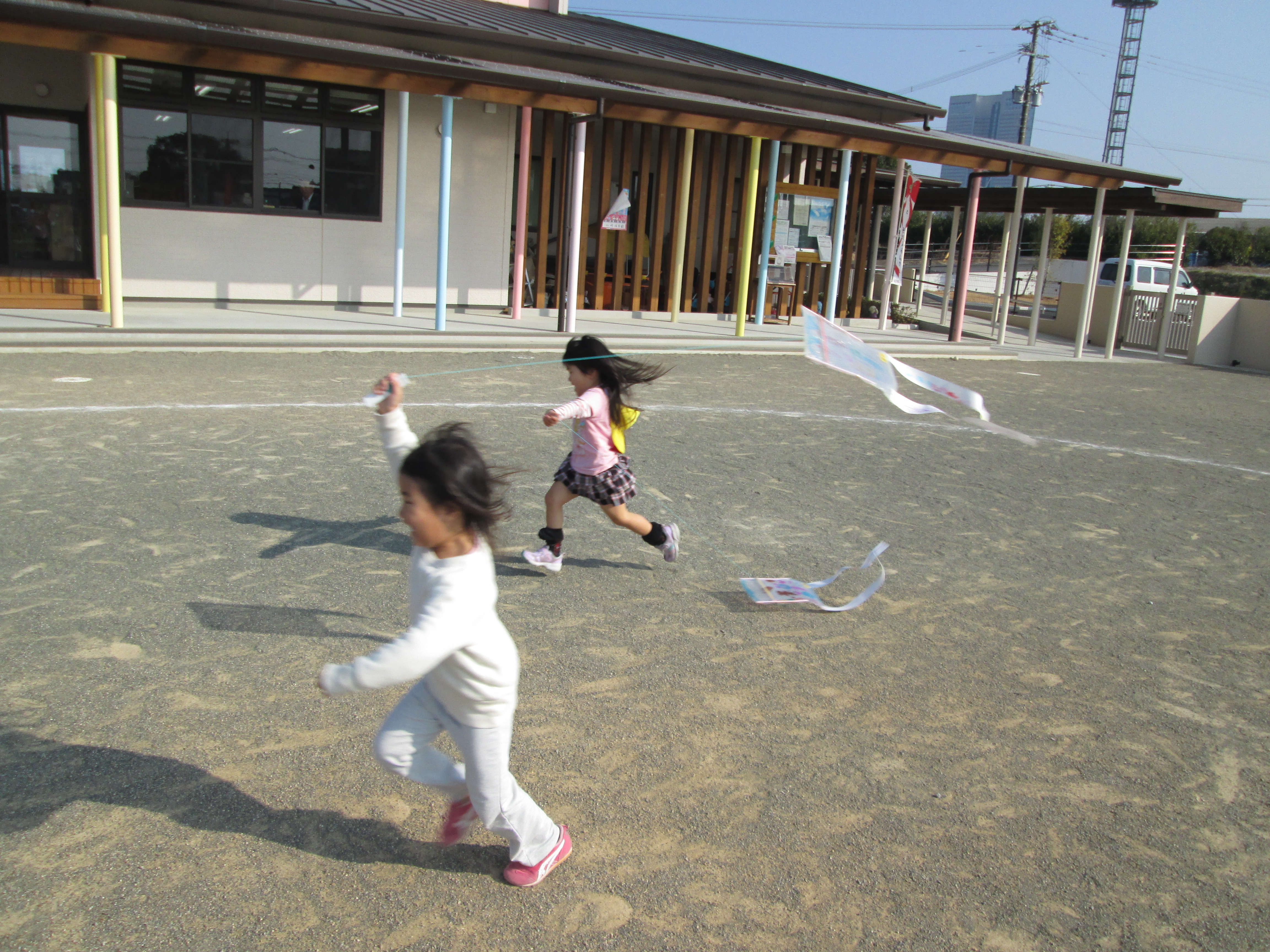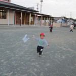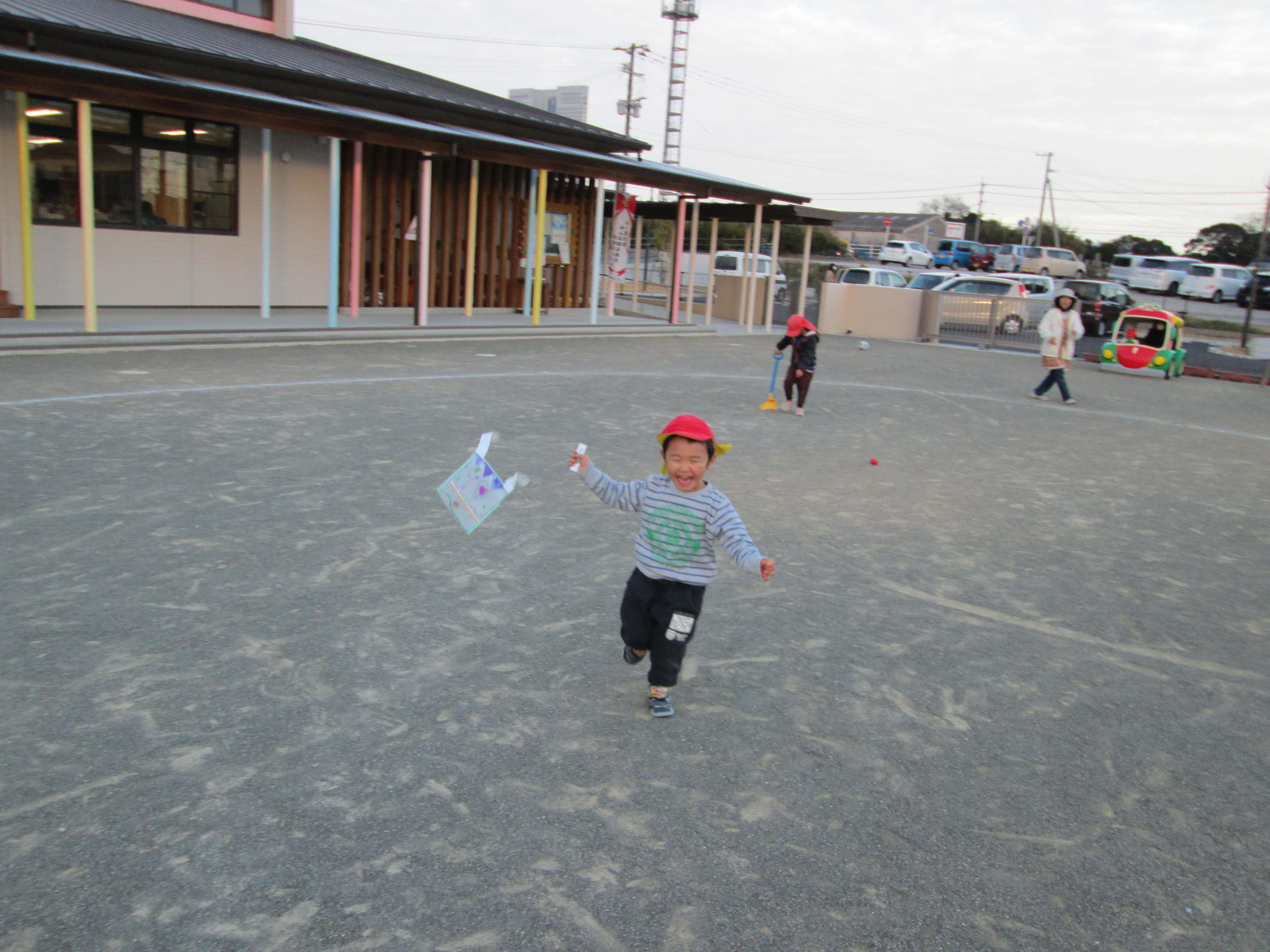 ぱんだ組さんの凧揚げ大会が始まりました。