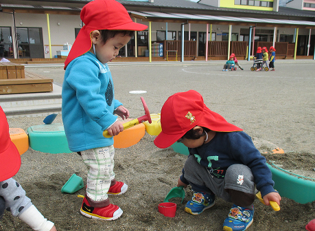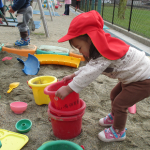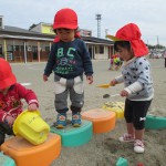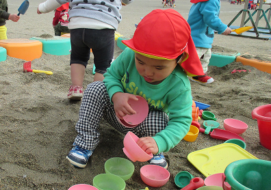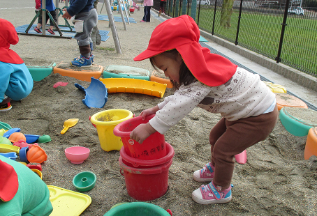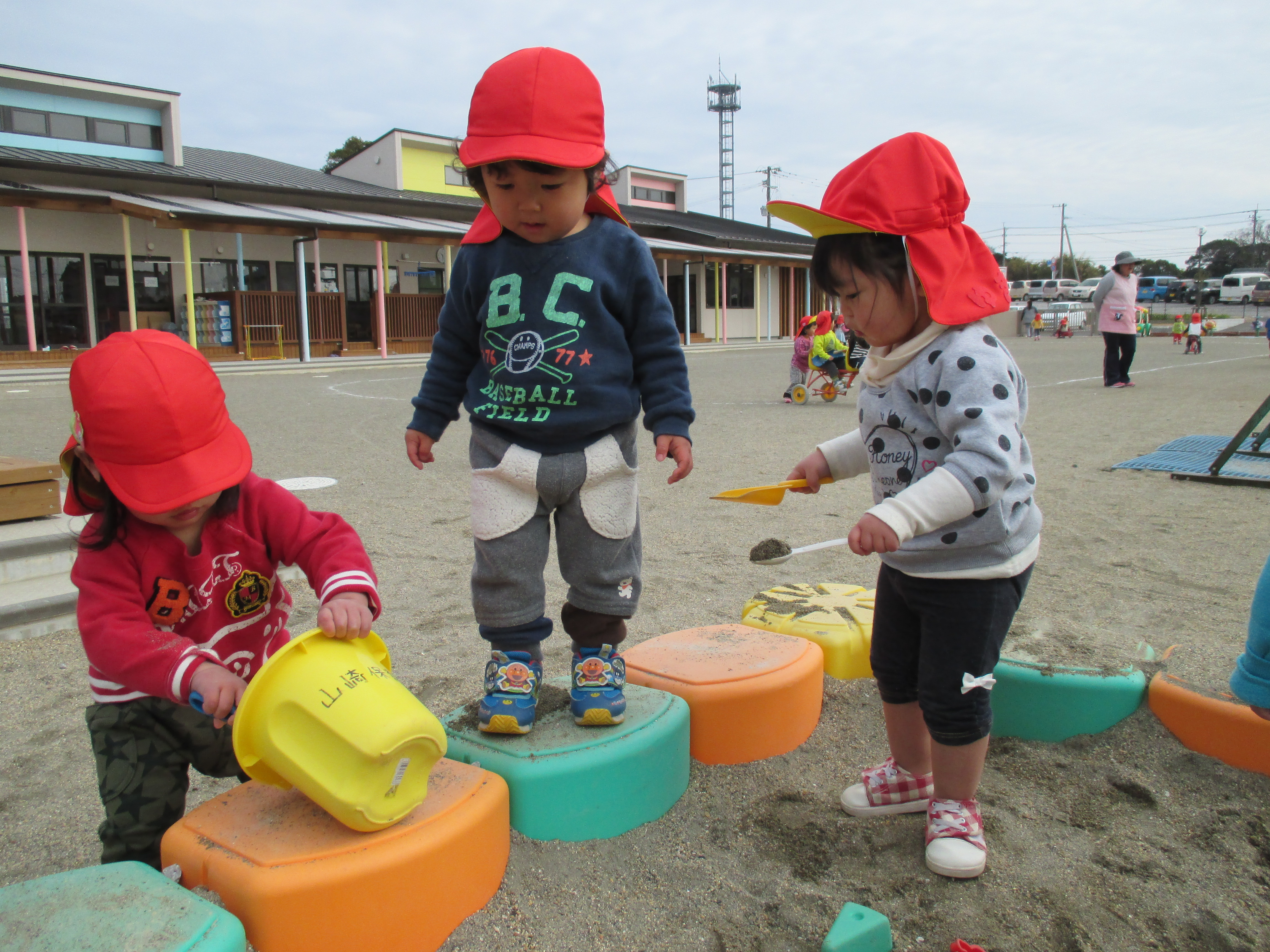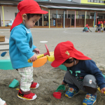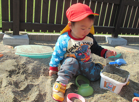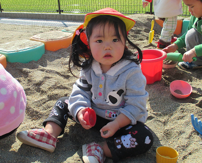 でも、りす組さんは寒さにも負けず、みんなで仲良く砂遊び。