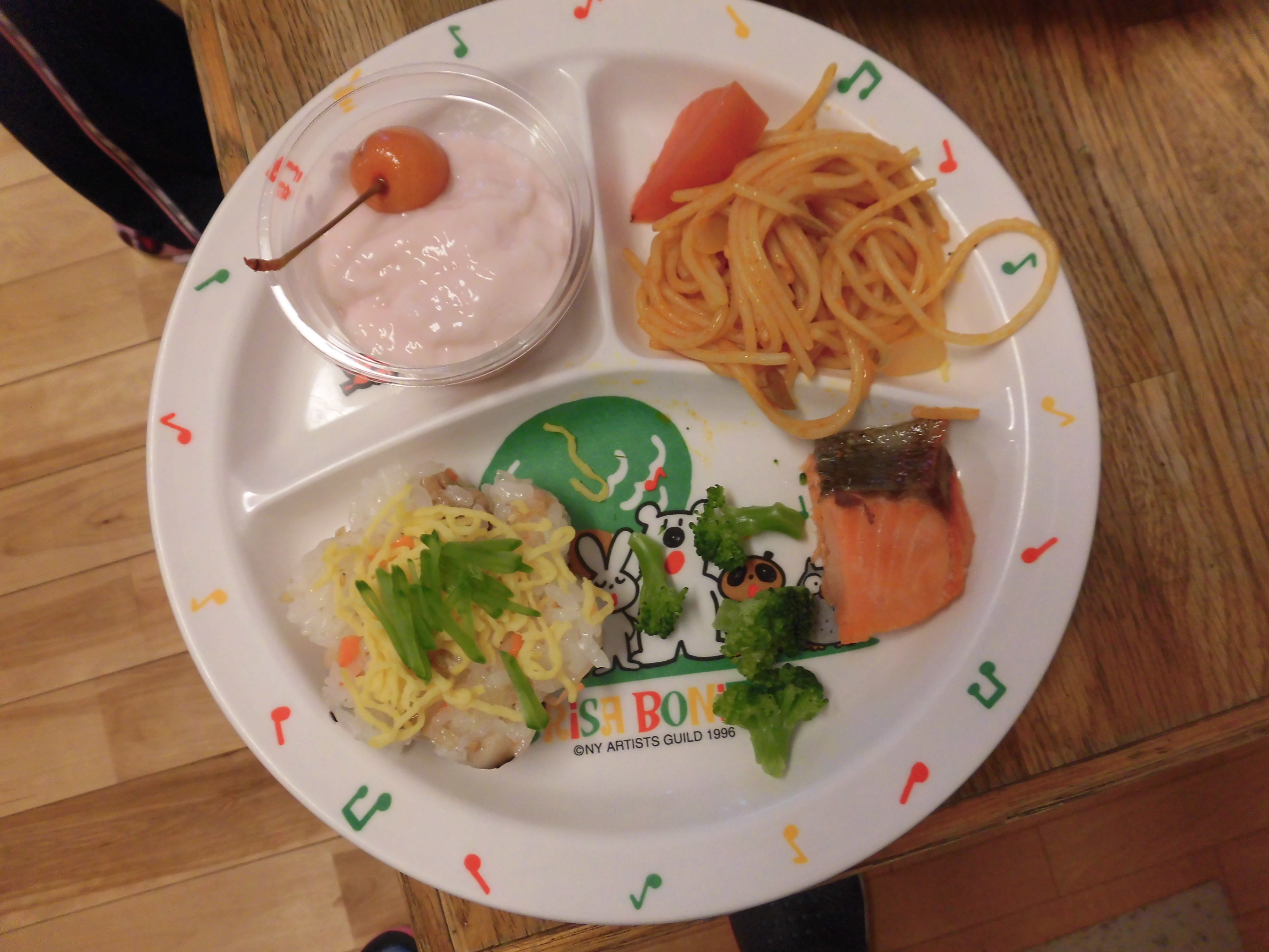 給食も『ひな祭り寿司・鮭の塩焼き・スパゲティー・豆腐スープ・苺ムース』とご馳走メニューでした。