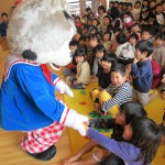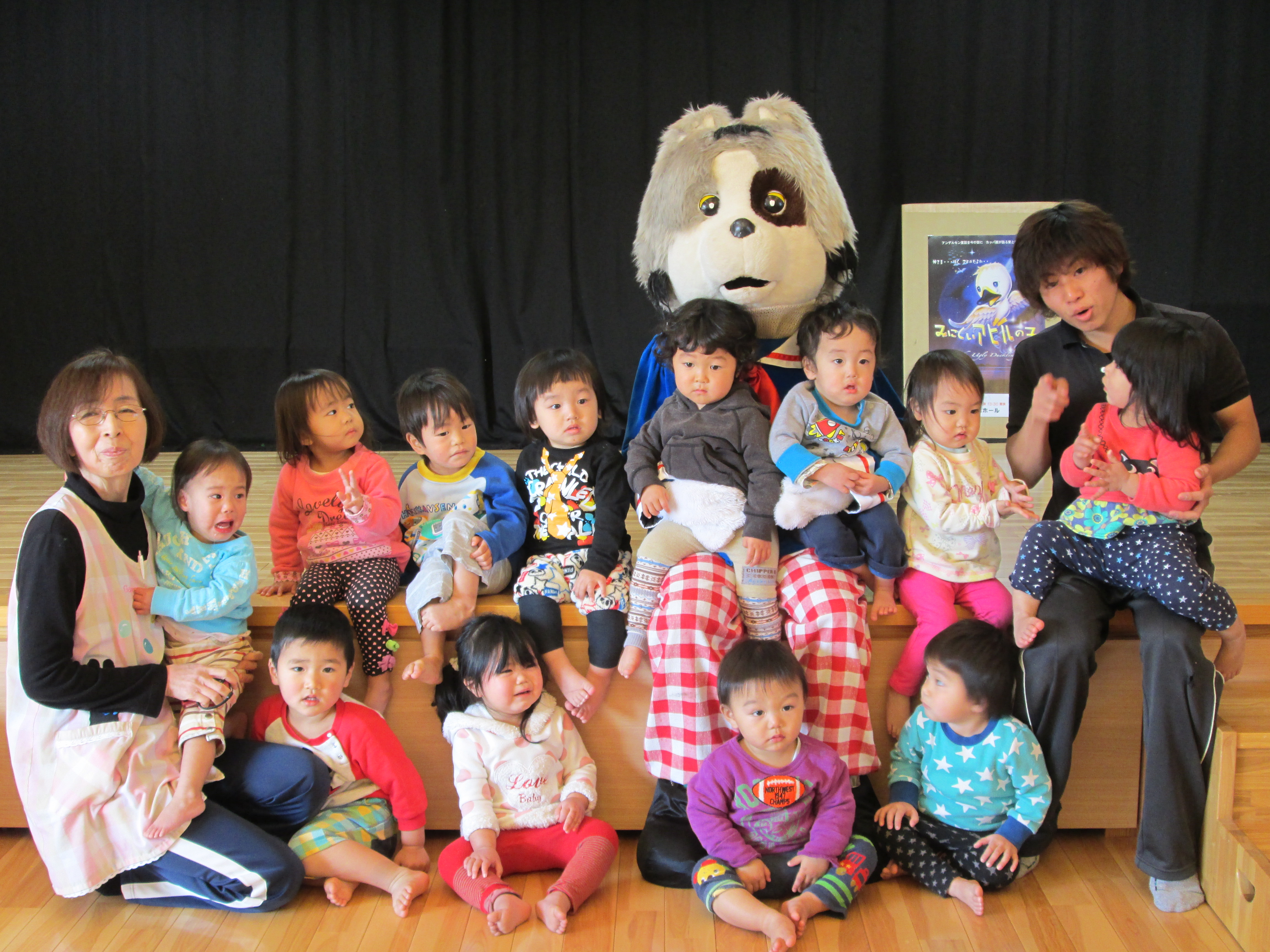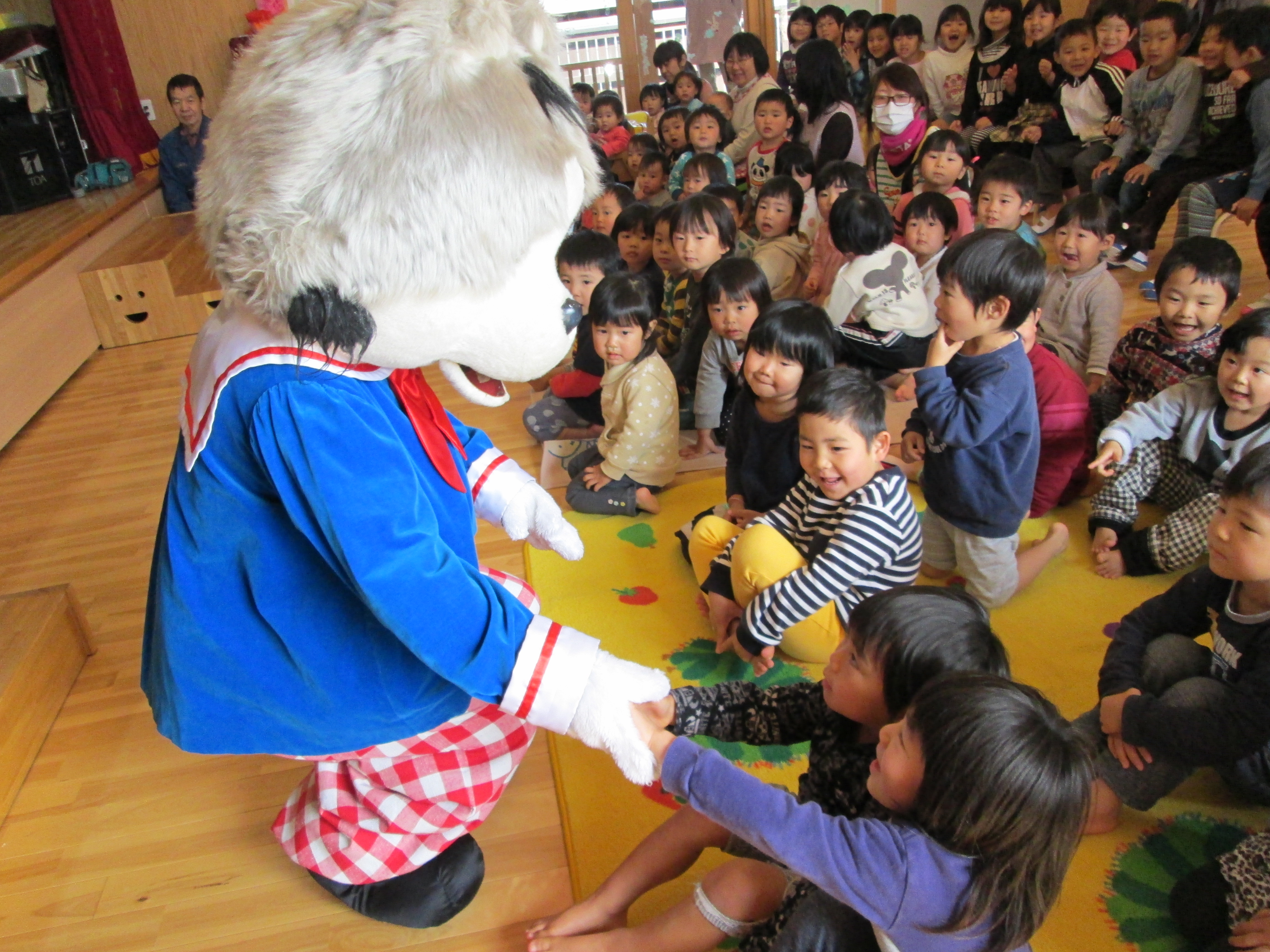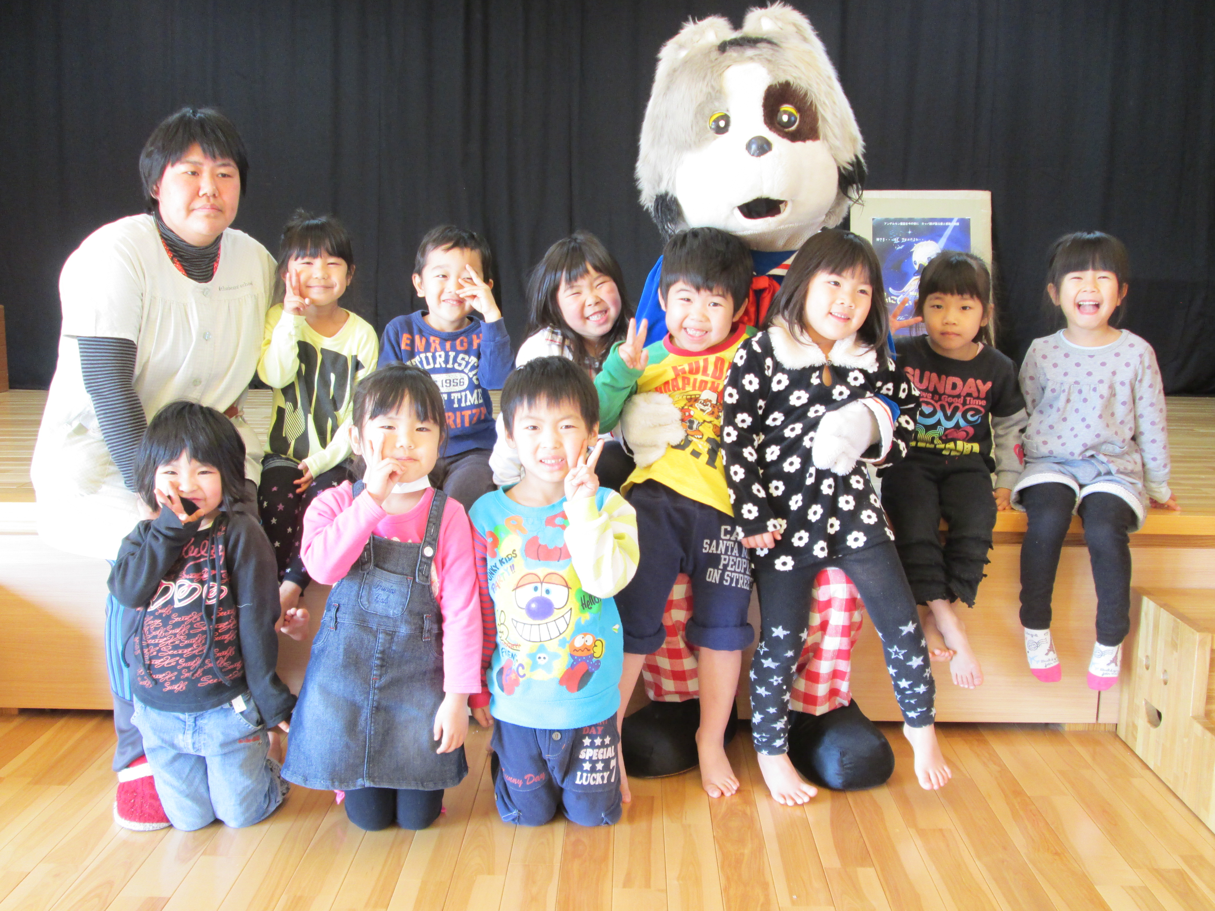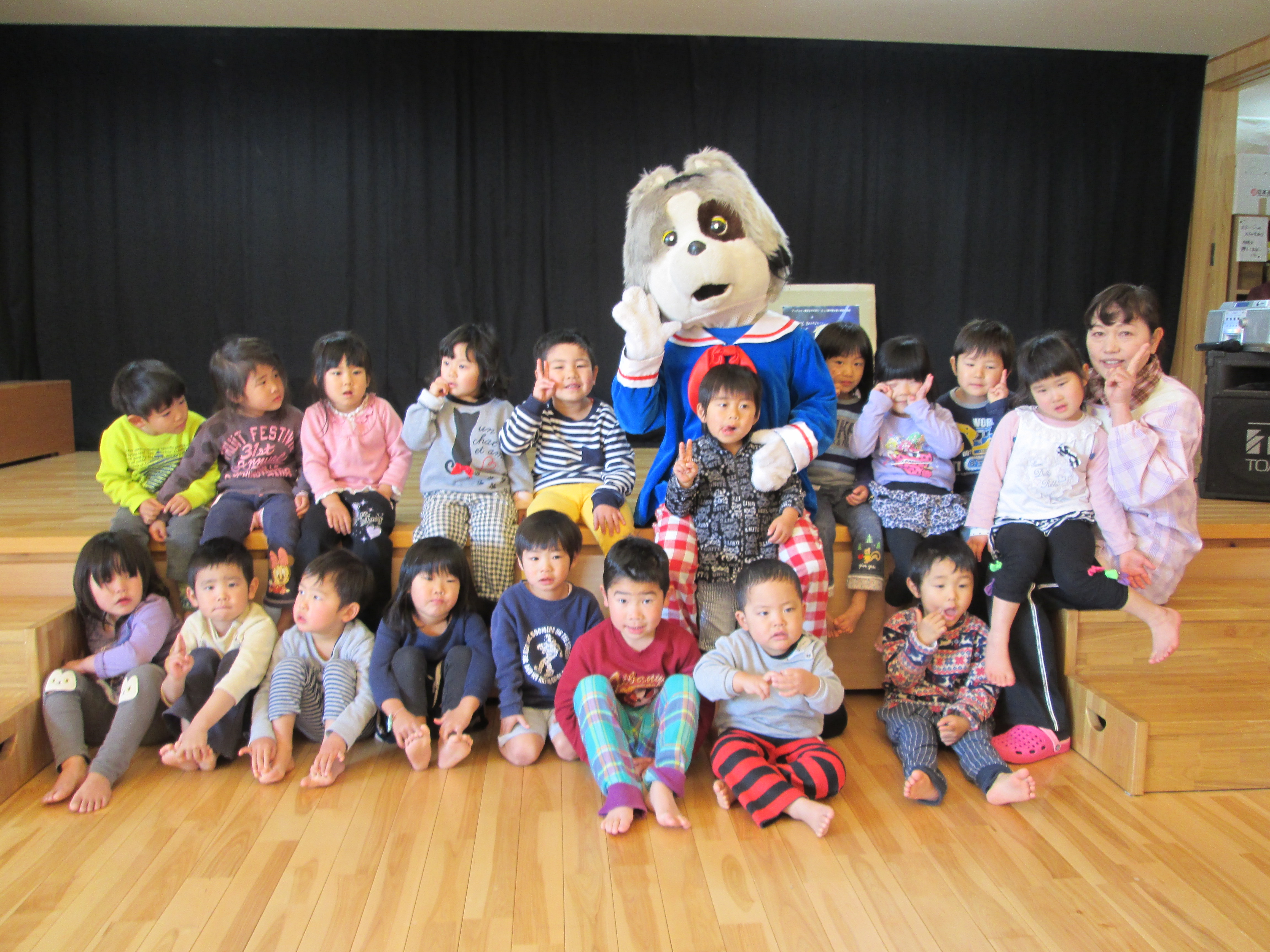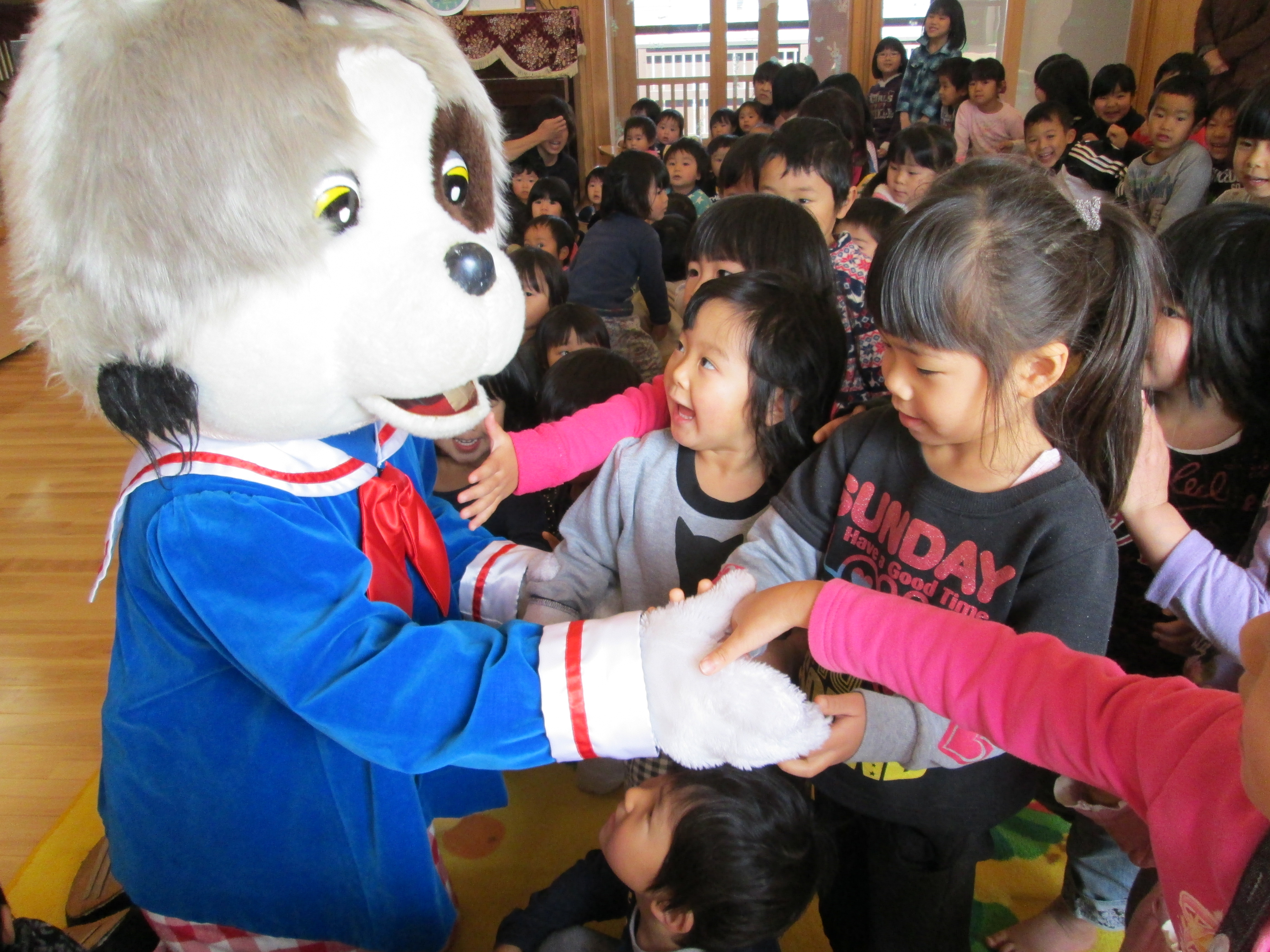 カッパ座 3月5日(木) 劇団カッパ座が来園! 子ども達は朝から『河童が来るよ~♪』と楽しみにしていました。 登場したのは・・・『あれ?河童じゃなかったね~』 犬の『マーたん』の寸劇を楽しんだ後は、握手会と写真撮影会。楽しい一日でした。