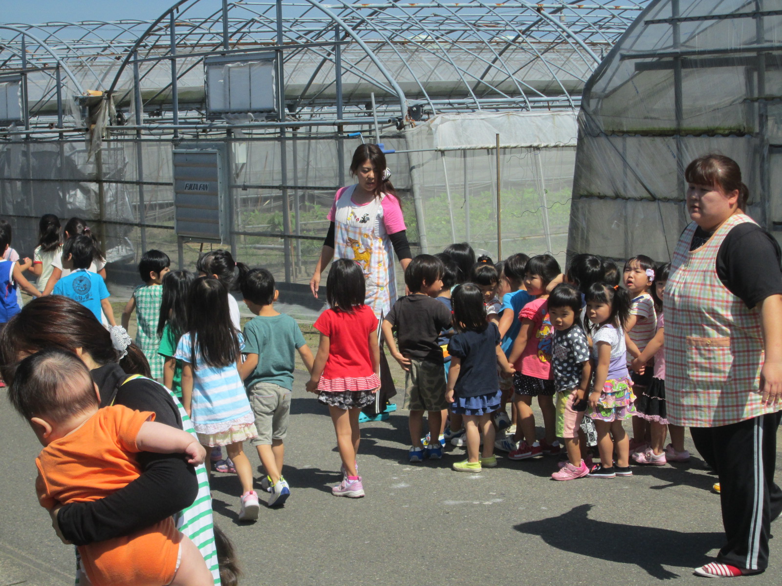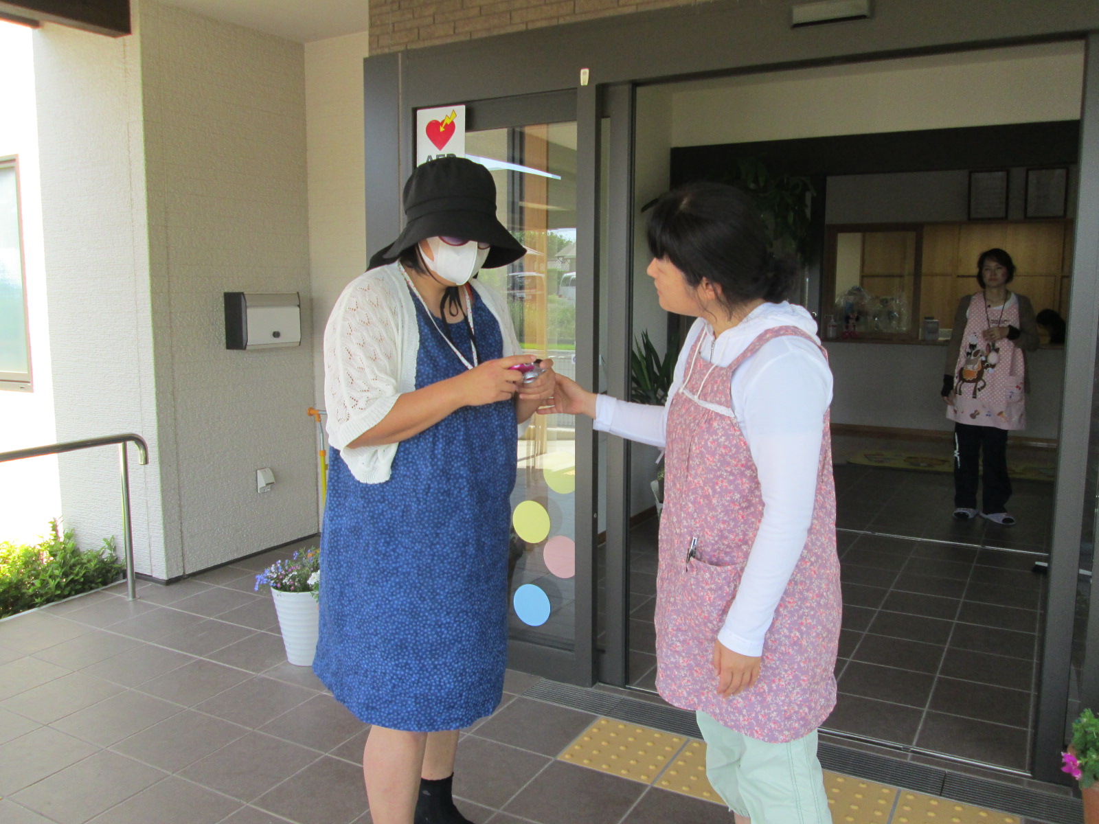 5月避難訓練 5月21日(木) 今月の避難訓練は、不審者対応訓練でした。 先日の勉強会で学んだ不審者侵入時の初動対策の成果は・・・敷地内に見知らぬ人を発見! すぐに声掛けをして対応します。その間、子ども達は秘密の合言葉で安全な場所へ移動。 今年度から予告なしの避難訓練を行っているので、避難の際に新たな問題点も浮上しました。反省点を改善していきたいと思います。
