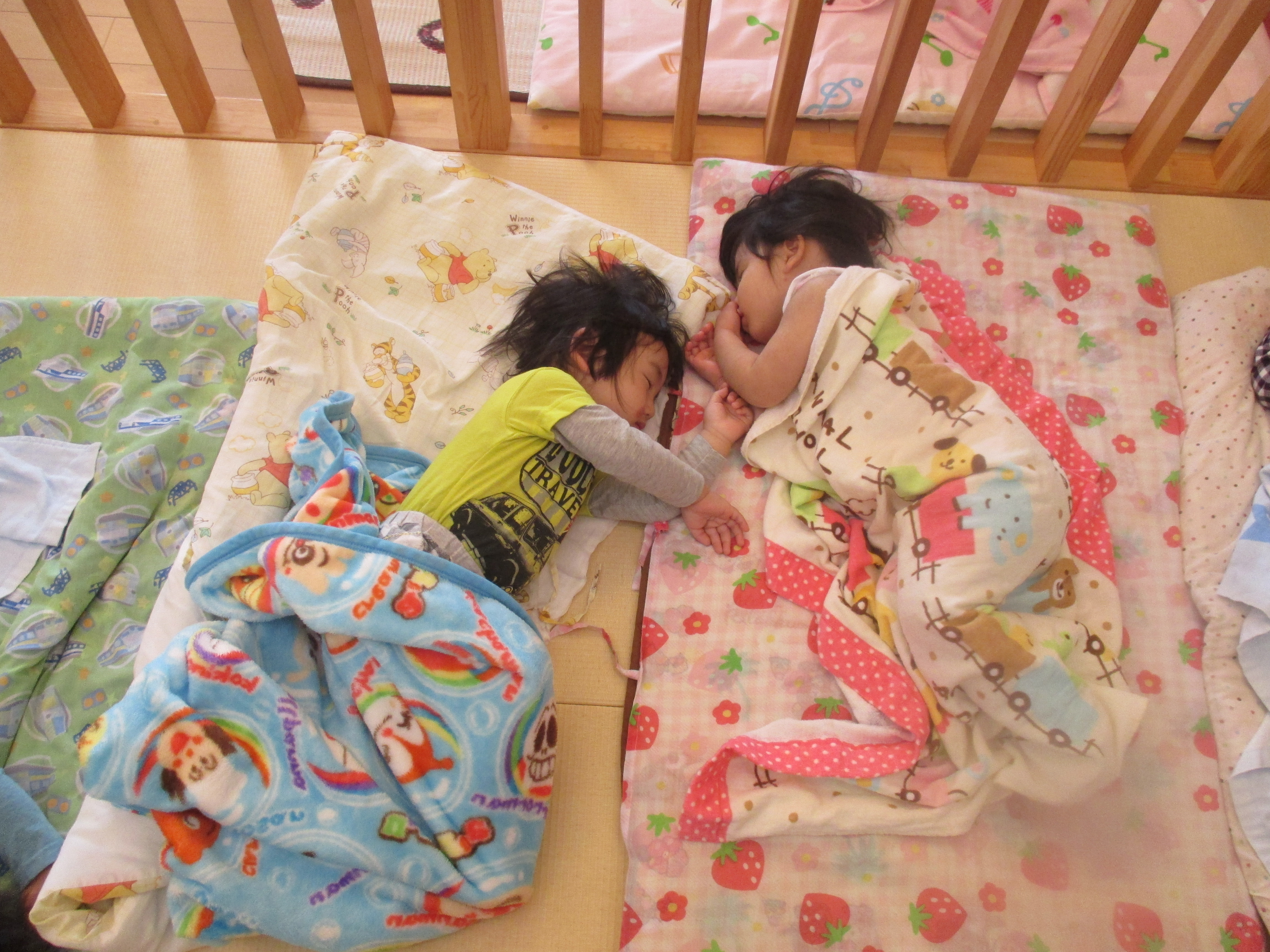 ひよこ組とりす組を覗いてみると・・・みんなスヤスヤ眠っていますね~。