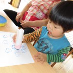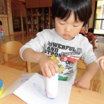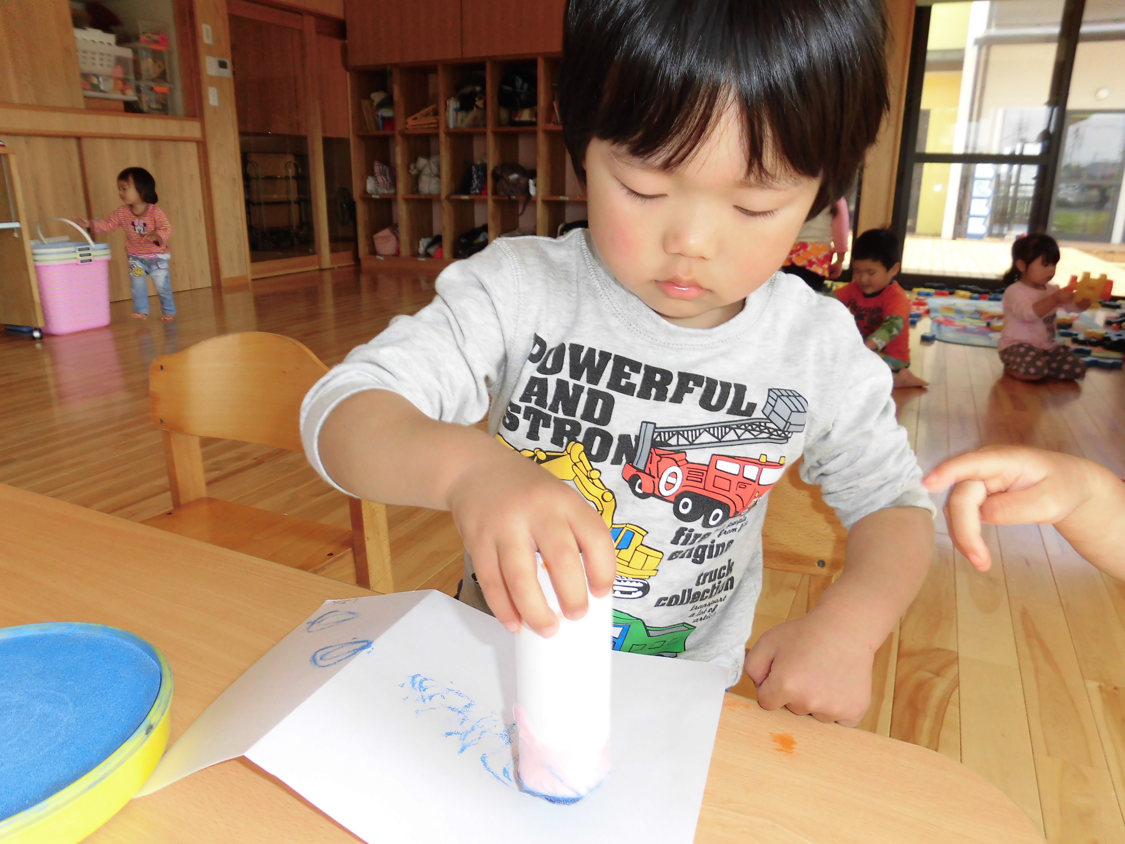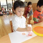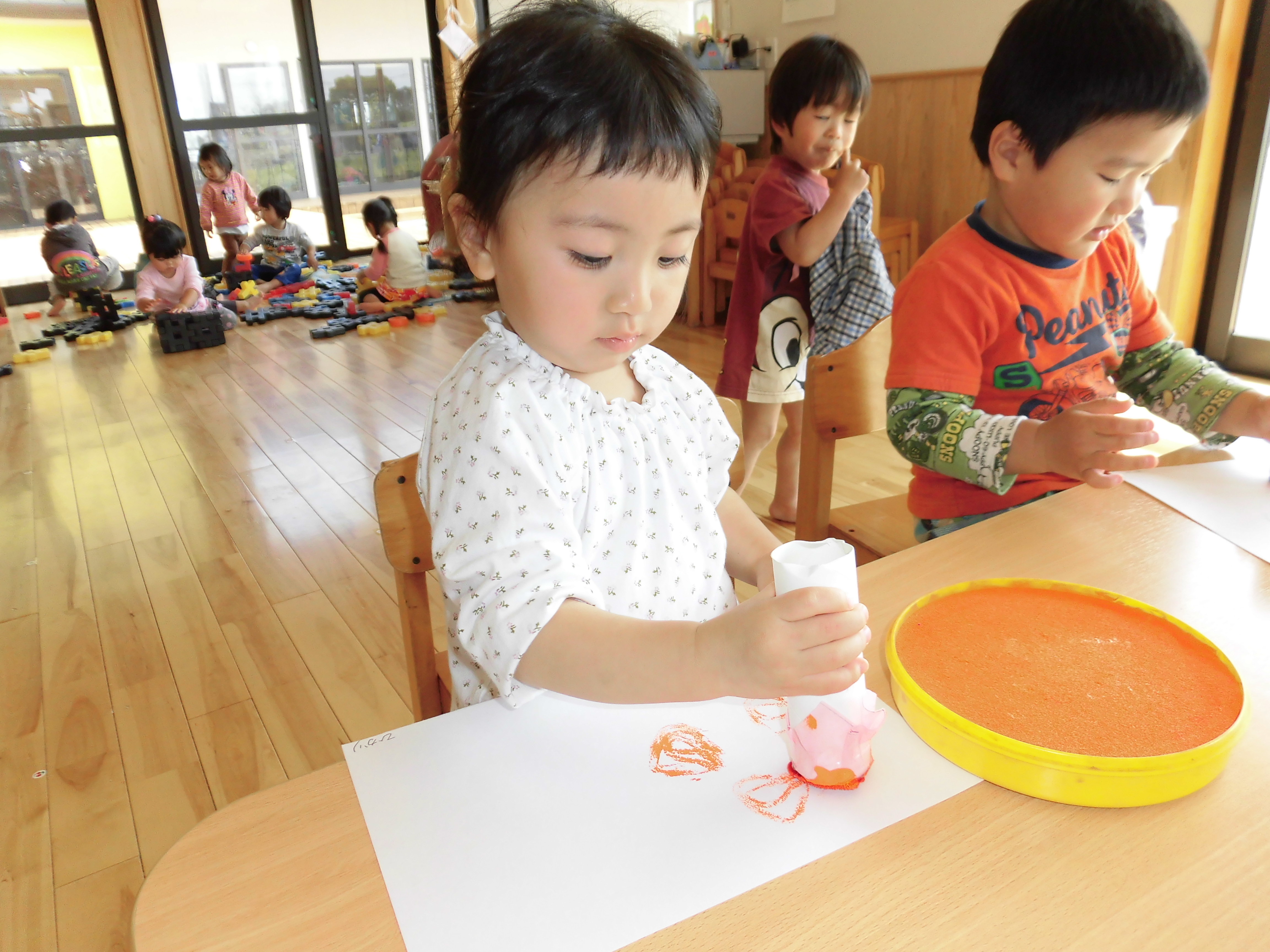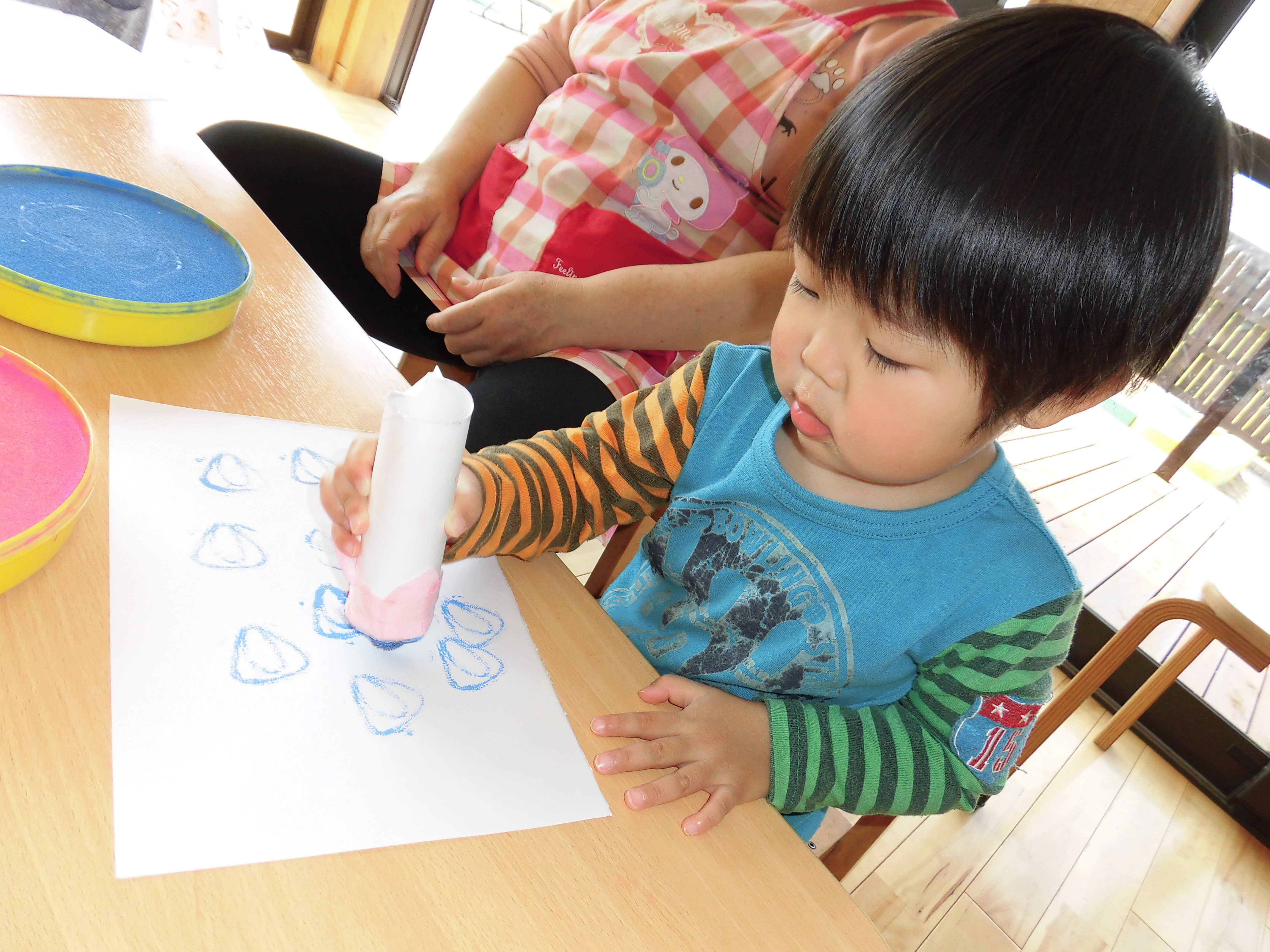 うさぎ組さんは、スタンプあそびを行っています。