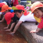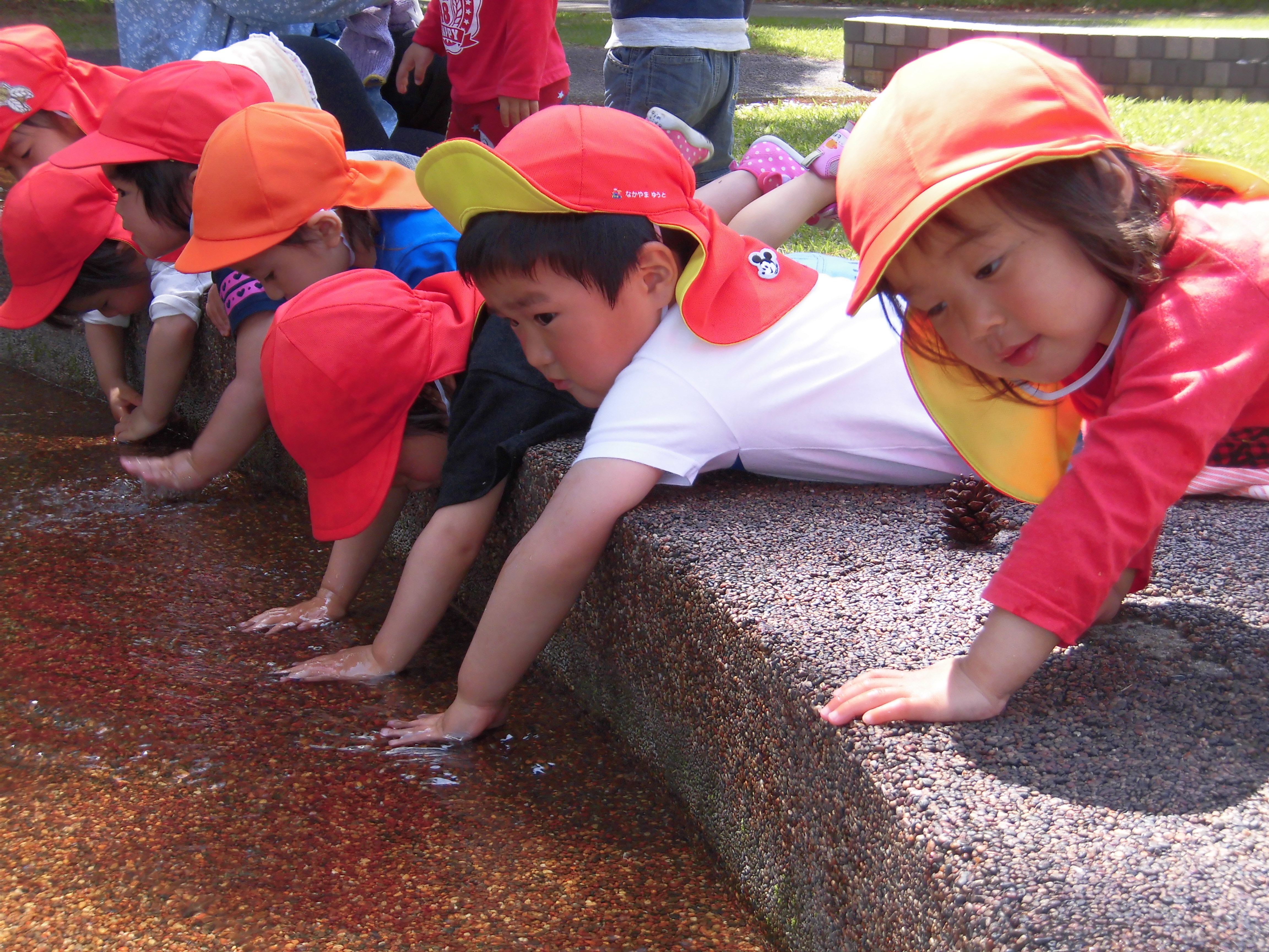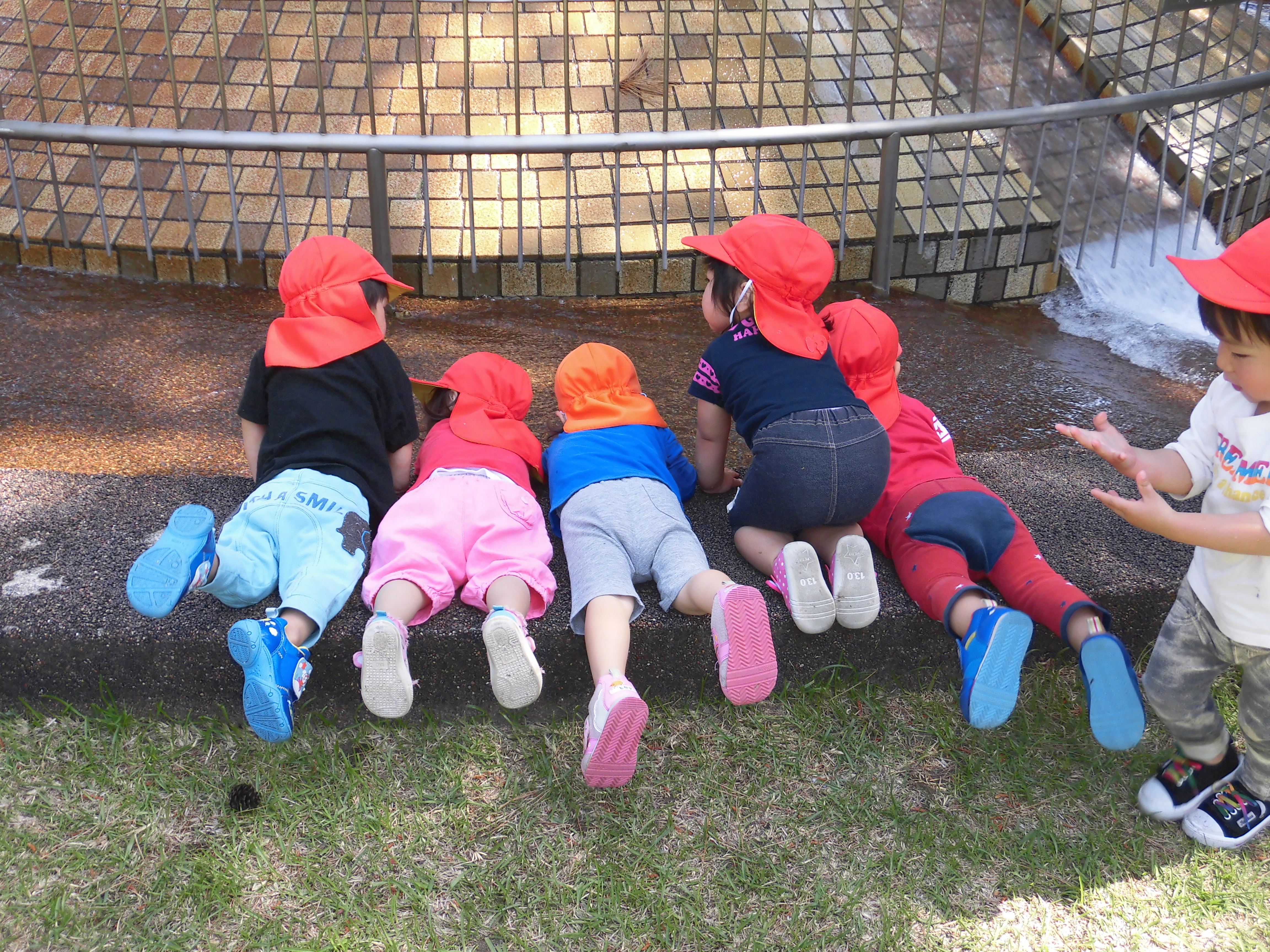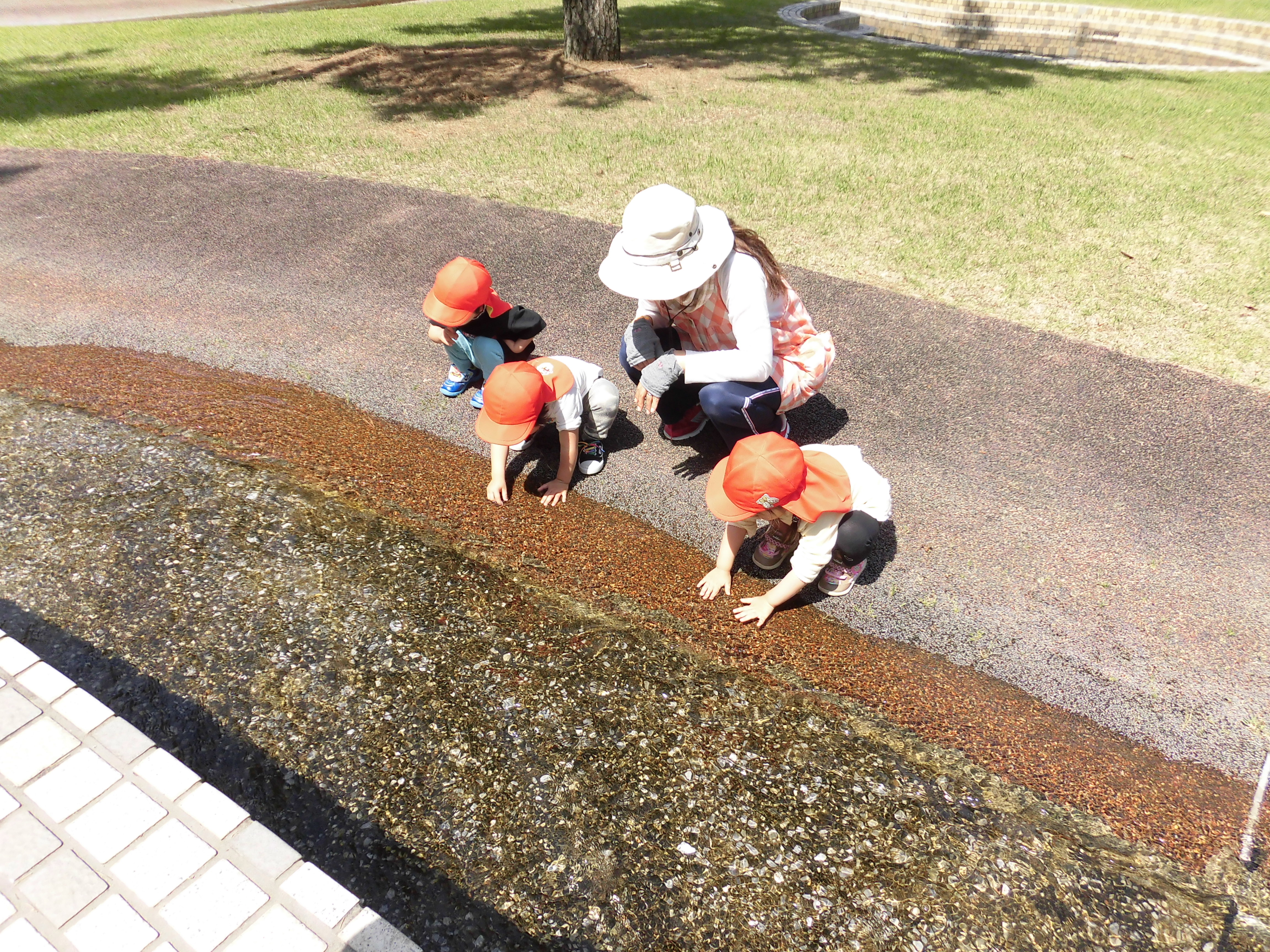 国際海浜エントランスプラザ 4月24日(金) うさぎ組さんは、国際海浜エントランスプラザまでお散歩に行きました。 『わ~、お水が流れているね』 『冷たくて気持ちいいね~』 ちょっと早い水遊びを楽しんできましたよ。