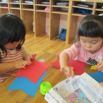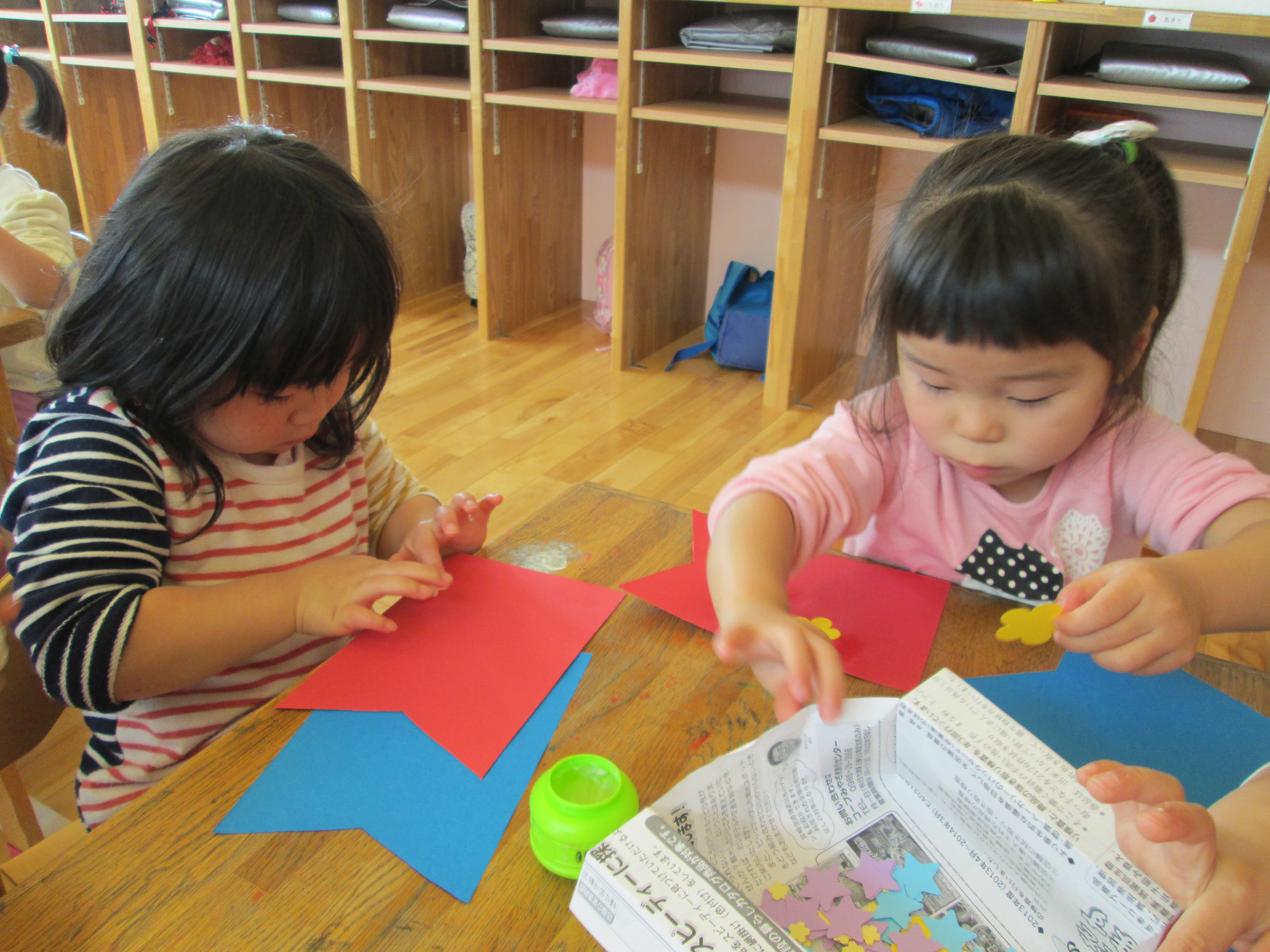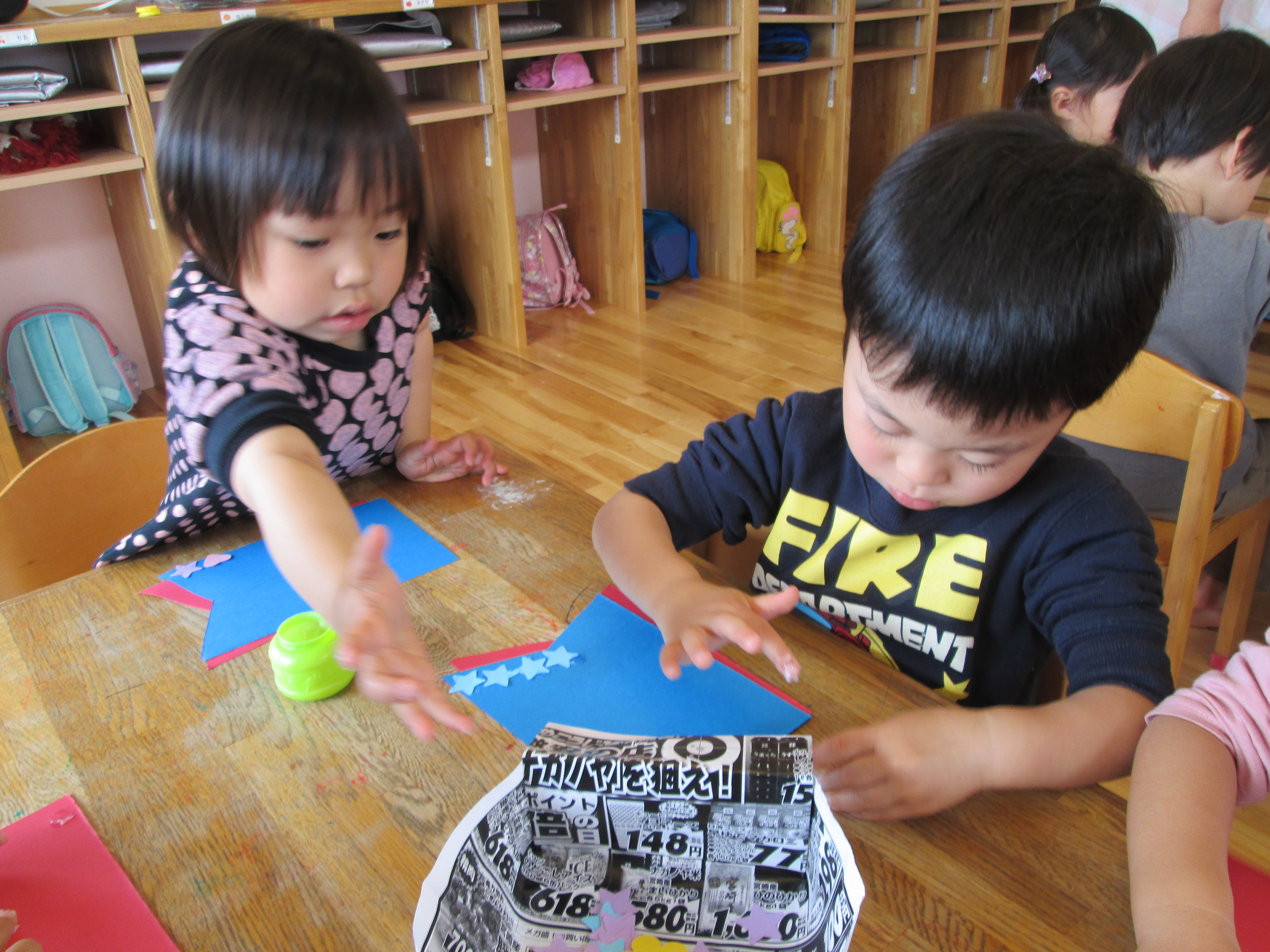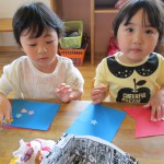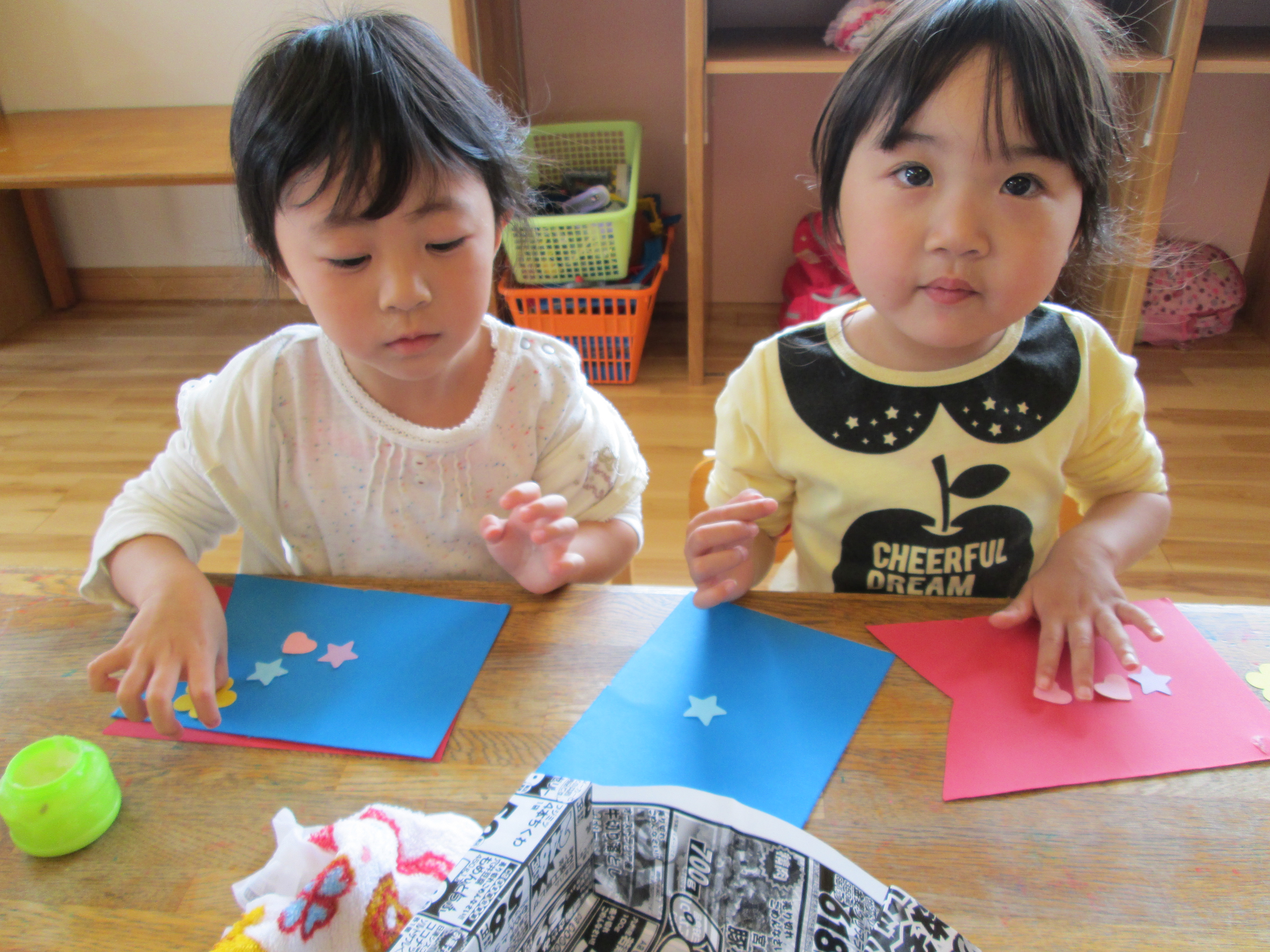 『どこに貼ろうかな~』 『ペタペタするね』