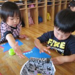 ぱんだ組さんが、糊あそびをしています。