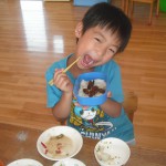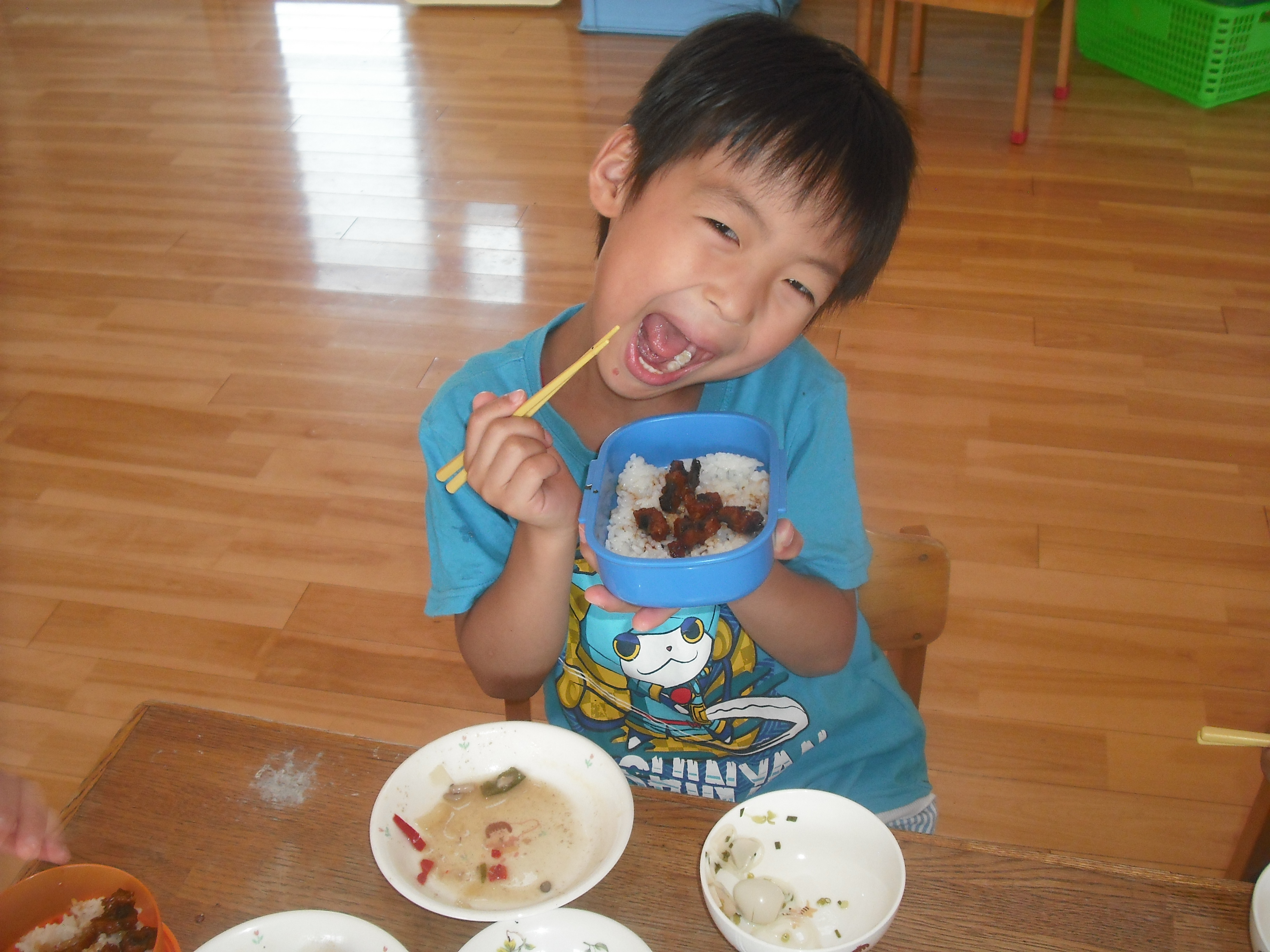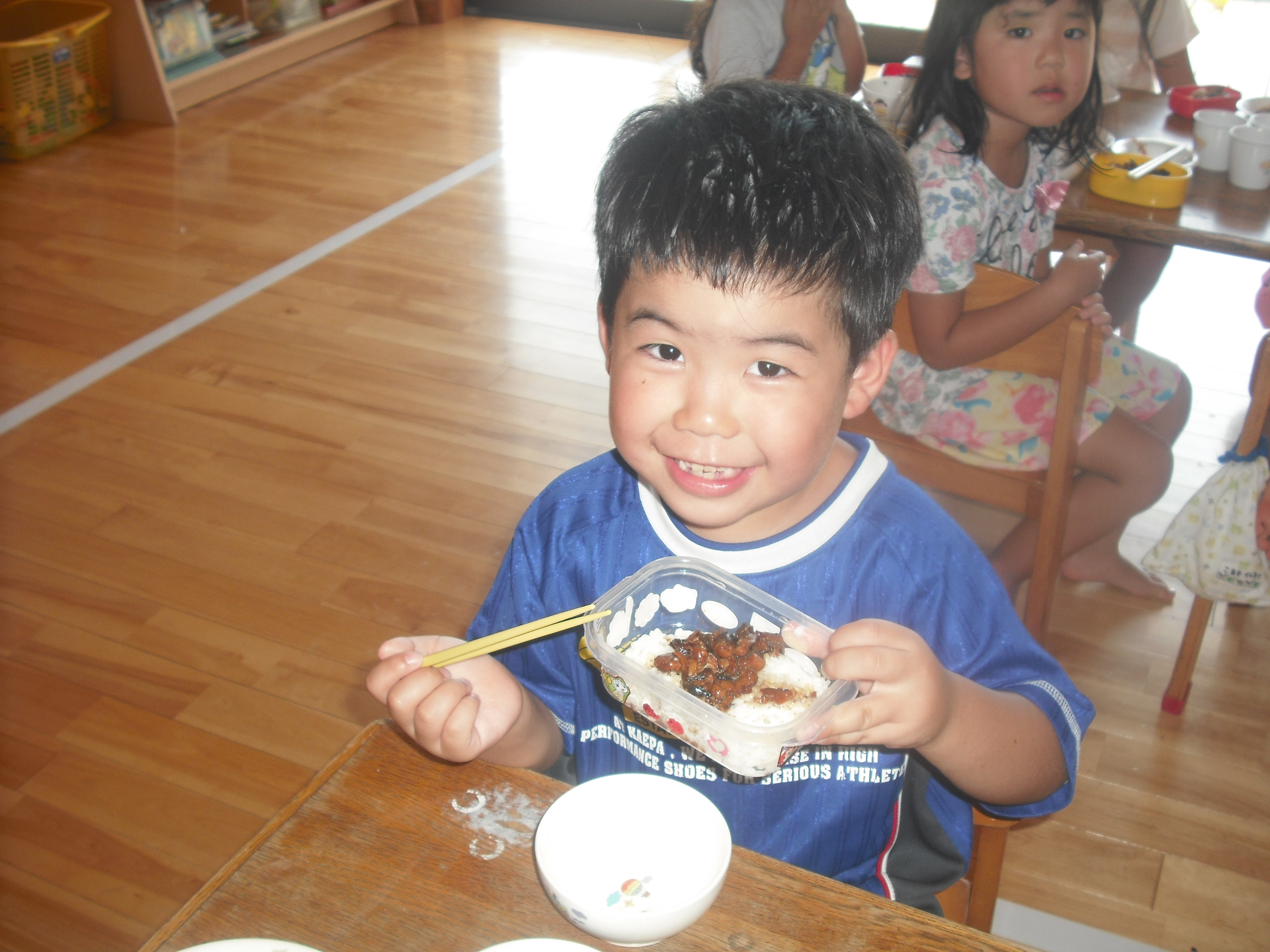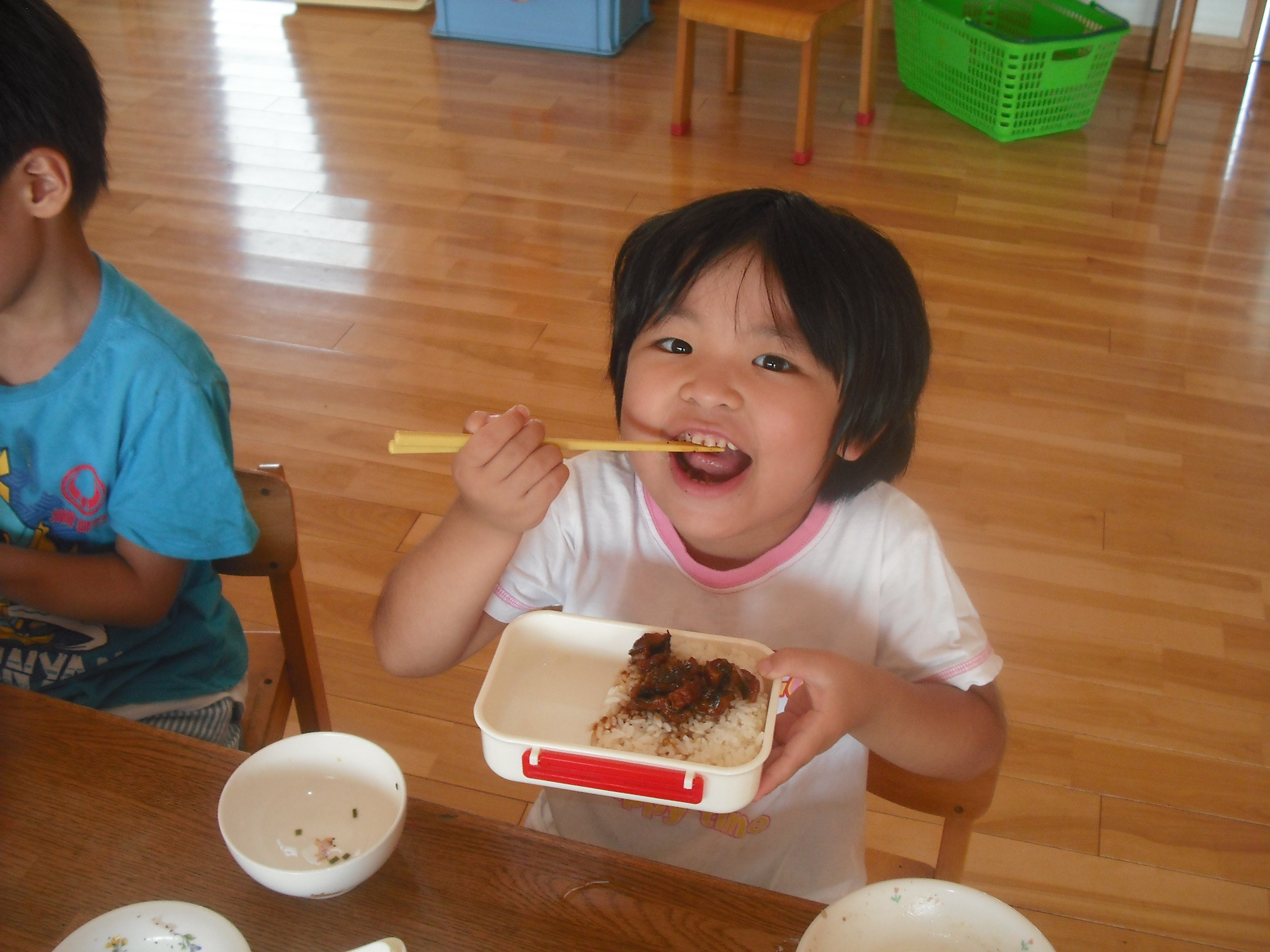 うなぎ 7月30日(木) 梅雨が明け、毎日暑い日が続いていますね。 夏バテしないように栄養をしっかりとらなくては・・・と思っていたら、大森淡水さんから『うなぎ』をいただきましたよ! 給食の時間になると、各クラスから『美味しい~♪』の声と笑顔があふれていました。 大森淡水様ありがとうございました。