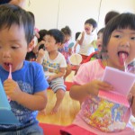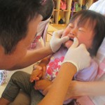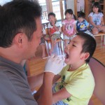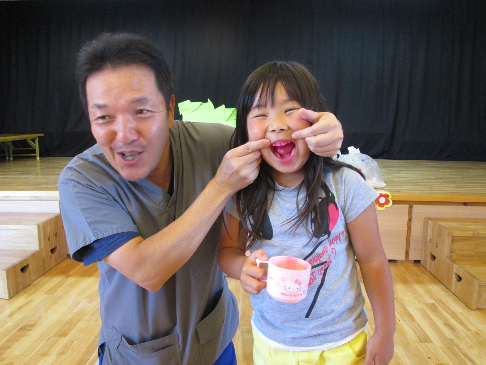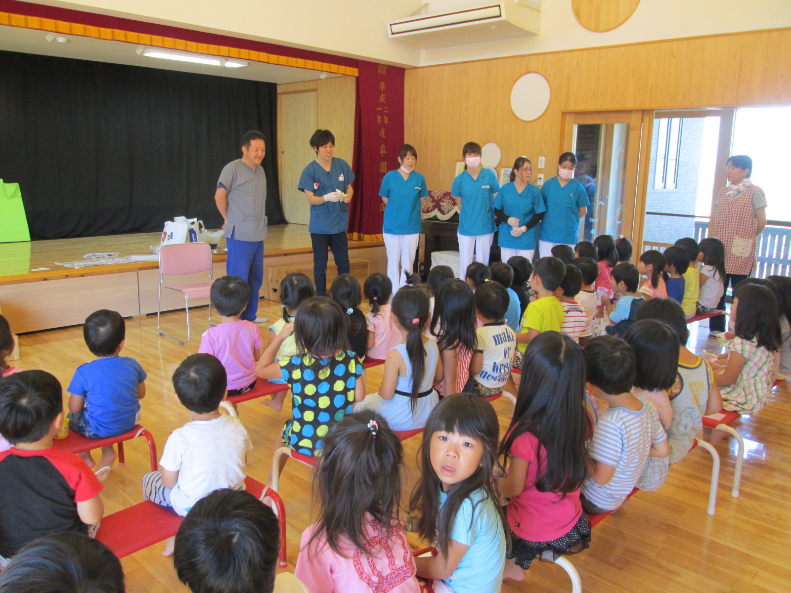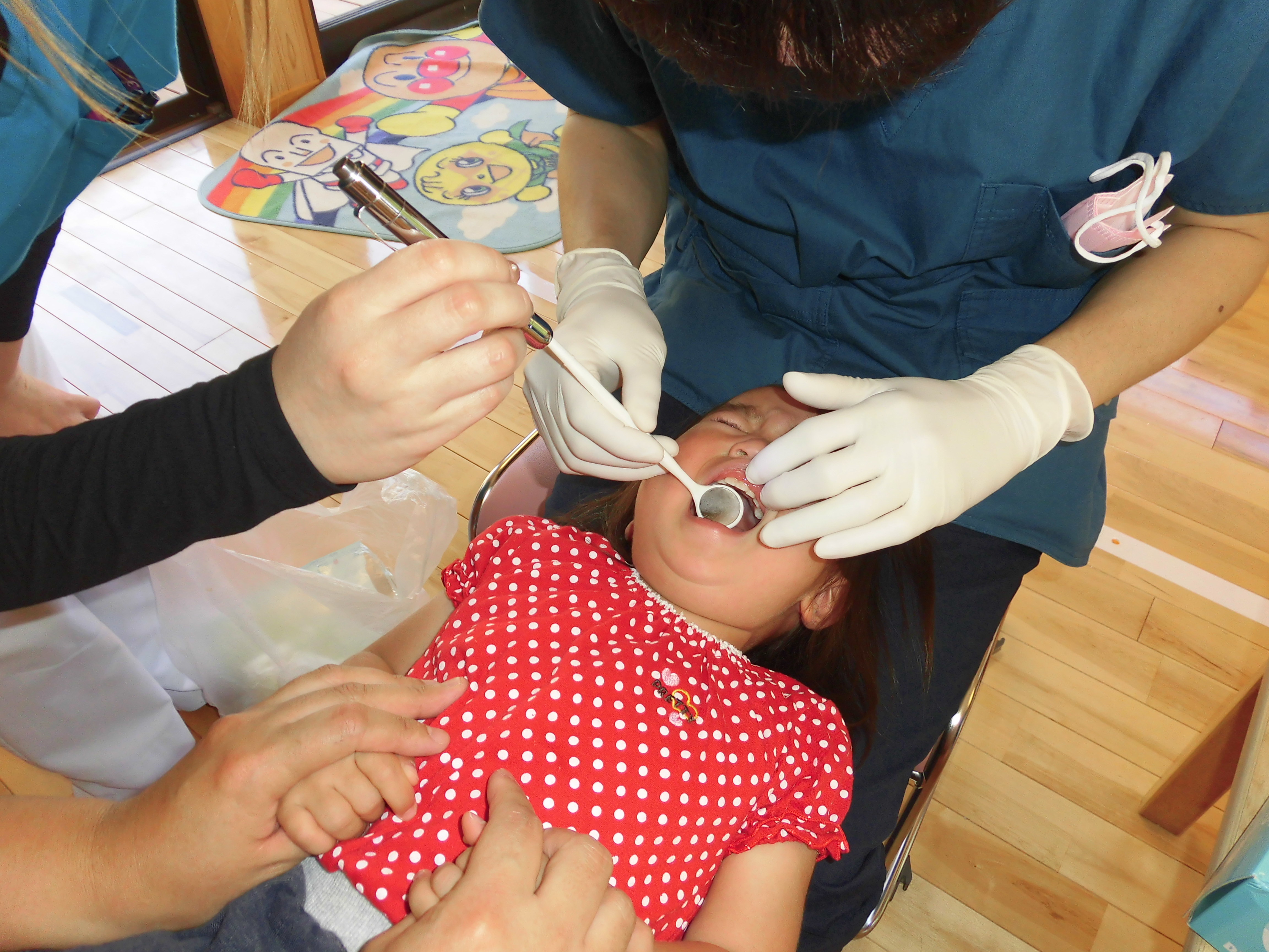 歯科検診 6月4日(木) 歯科検診を行いました。『どれどれ~虫歯はないかな?』未満児さんは大泣きです。 以上児さん達は、検診後にブラッシング指導を行いましたよ。 染め出しを行った後、鏡を見ながらピンクに染まった部分を歯ブラシで綺麗に磨きます。みんな上手に磨けたかな?