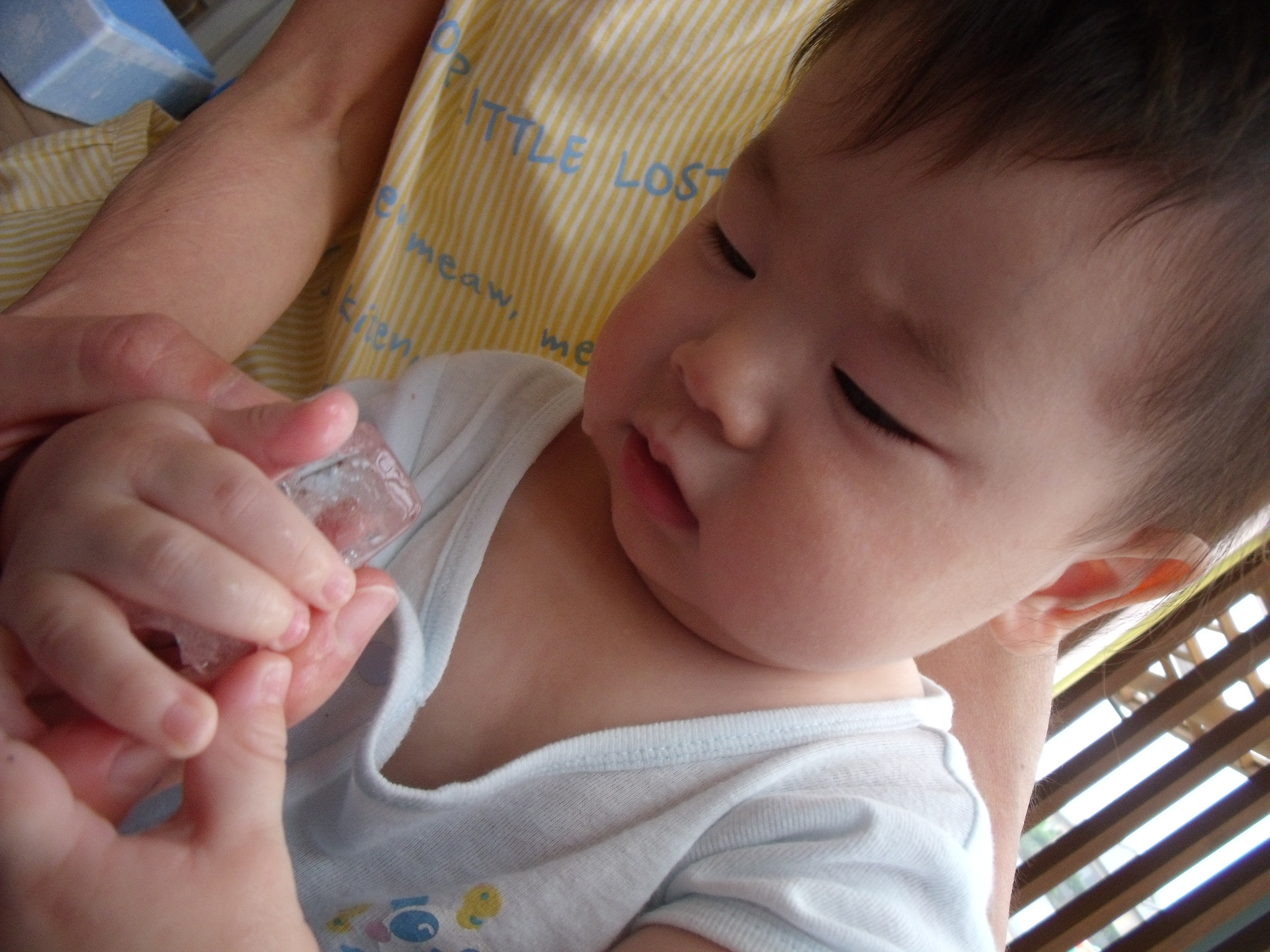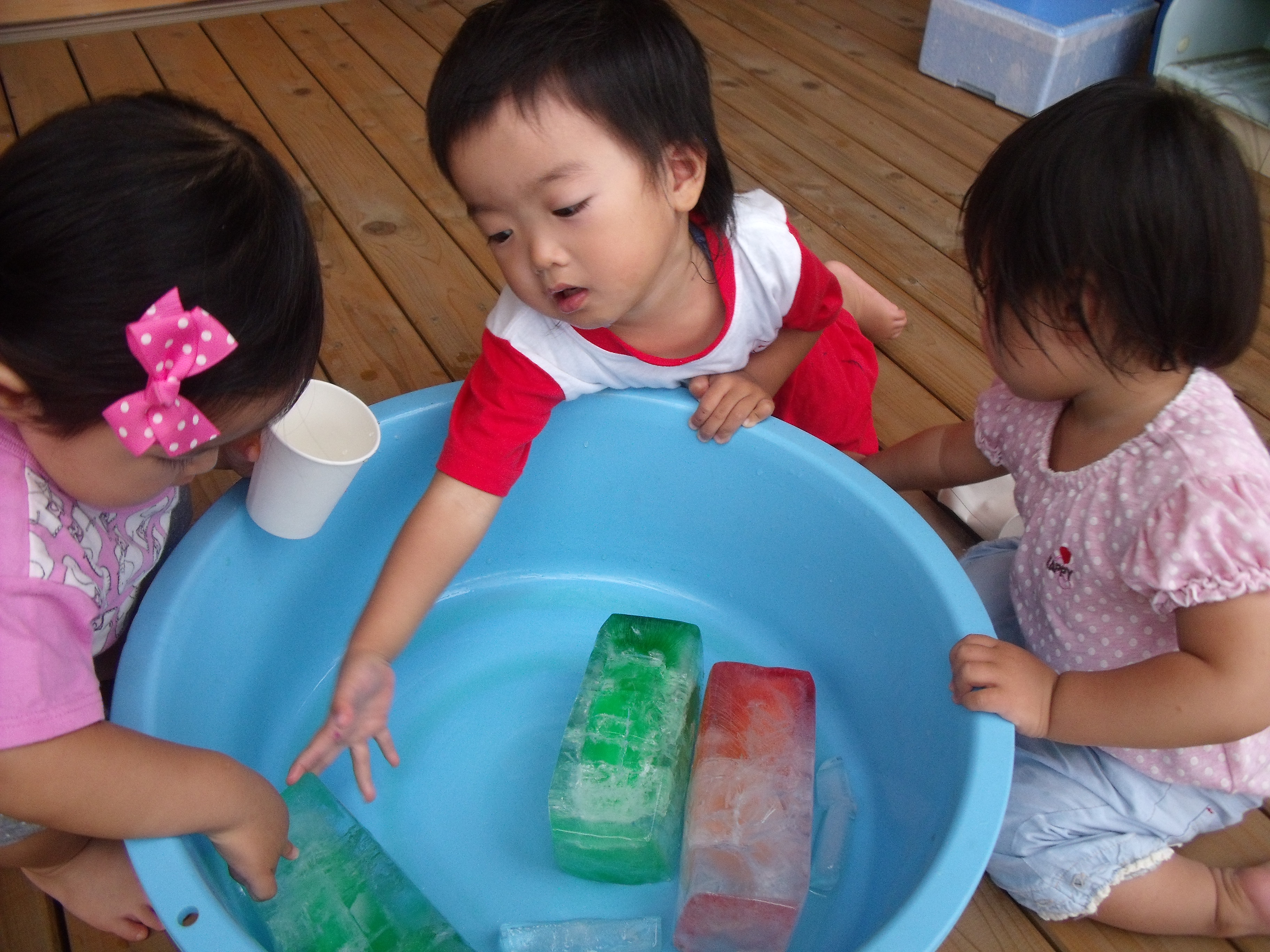 蒸し暑さを忘れる氷あそびを楽しみました。