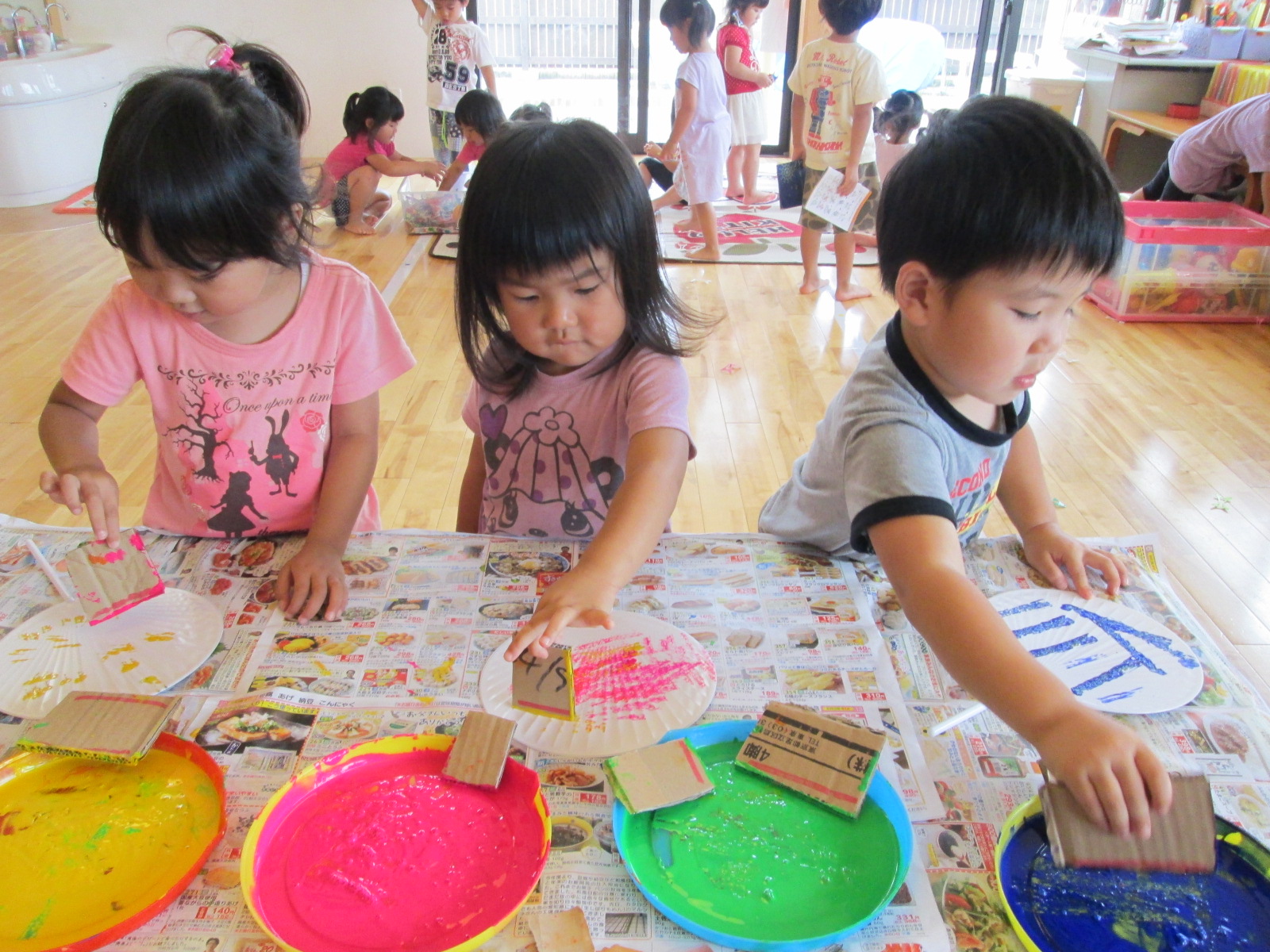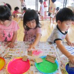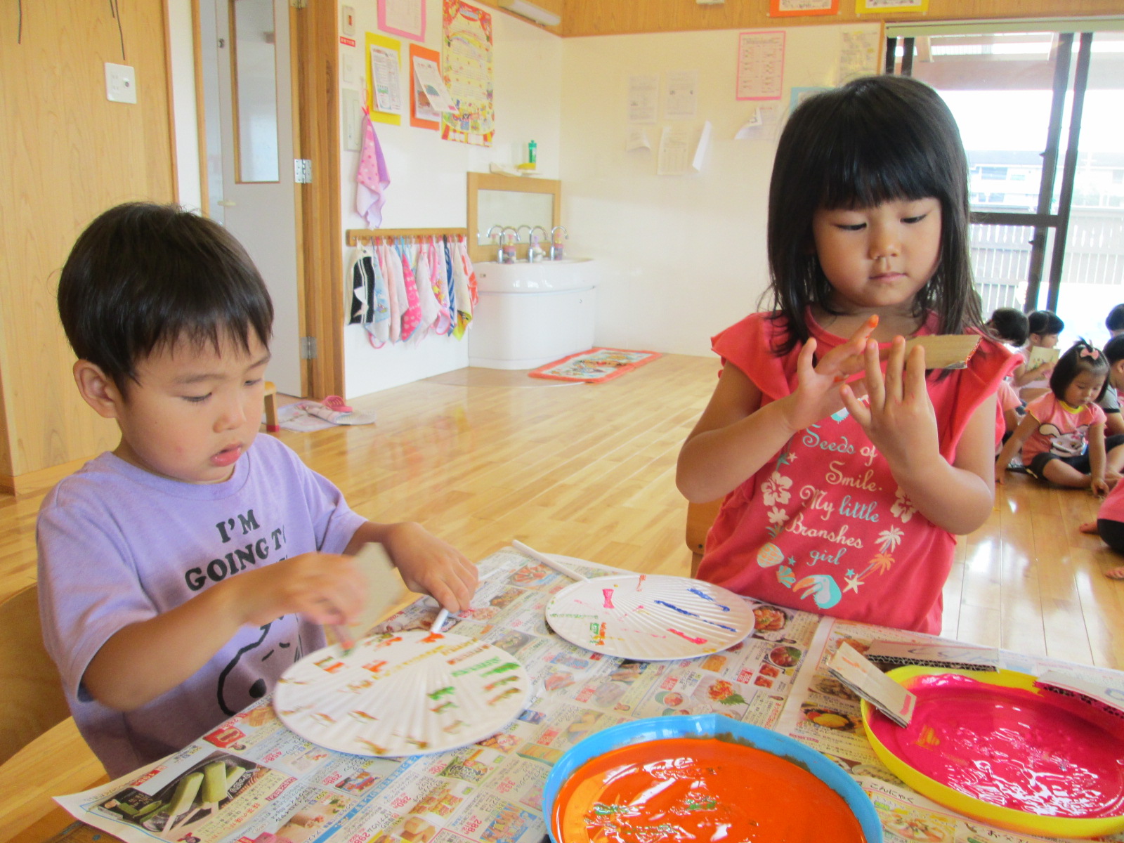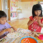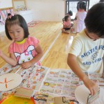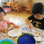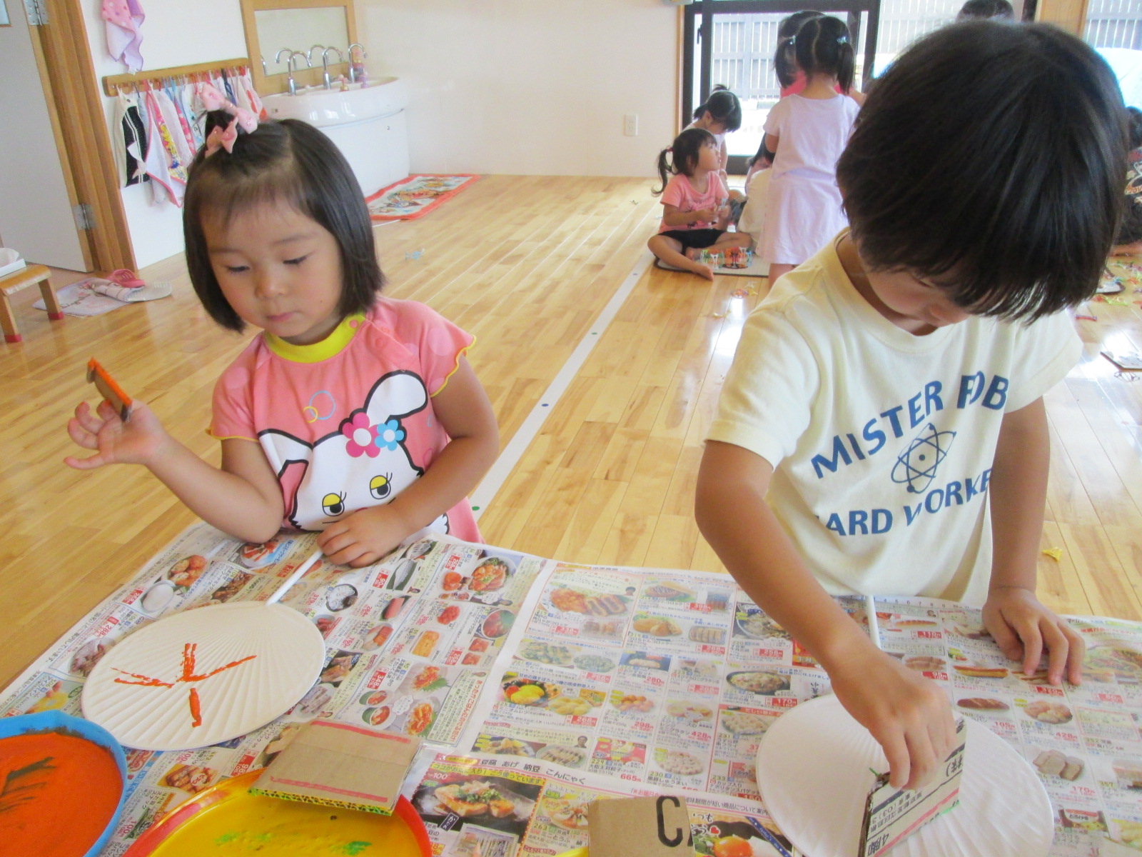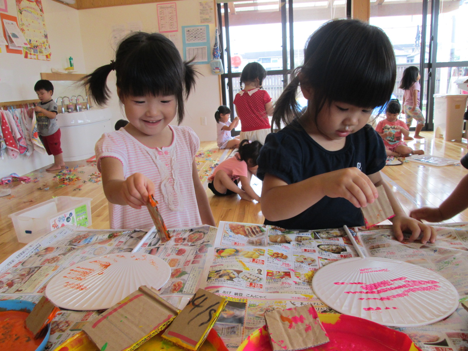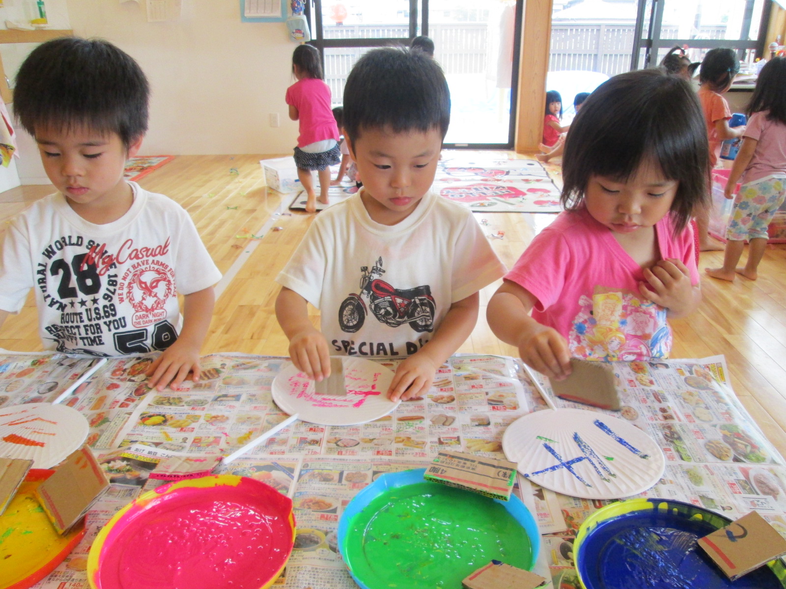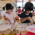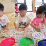 ぱんだ組さんは、段ボールで作ったスタンプを使って『うちわ作り』を行いました。