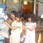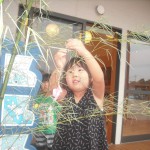 笹の葉に、願い事を書いた短冊や吹き流しなどを飾りつけていきます。