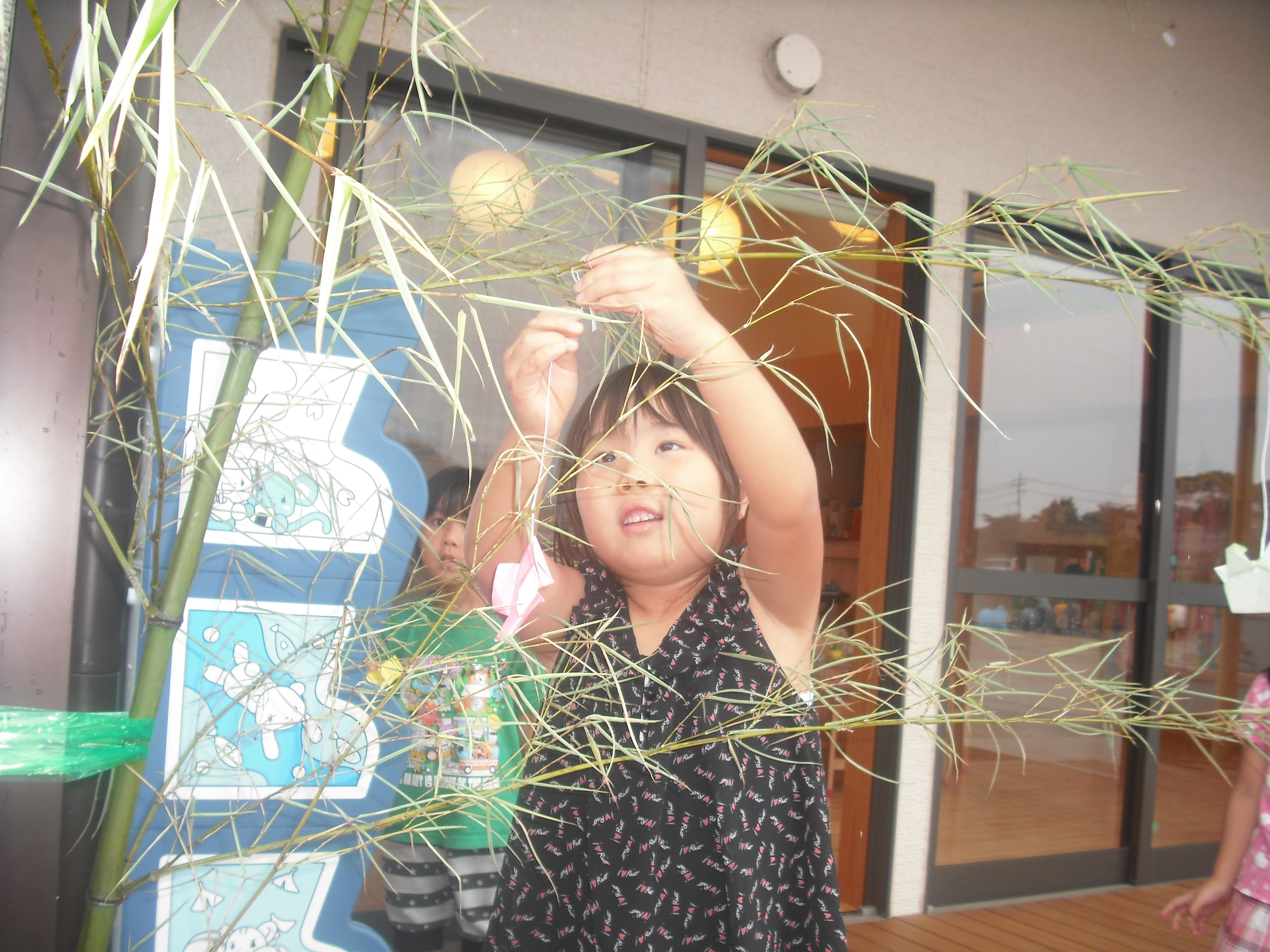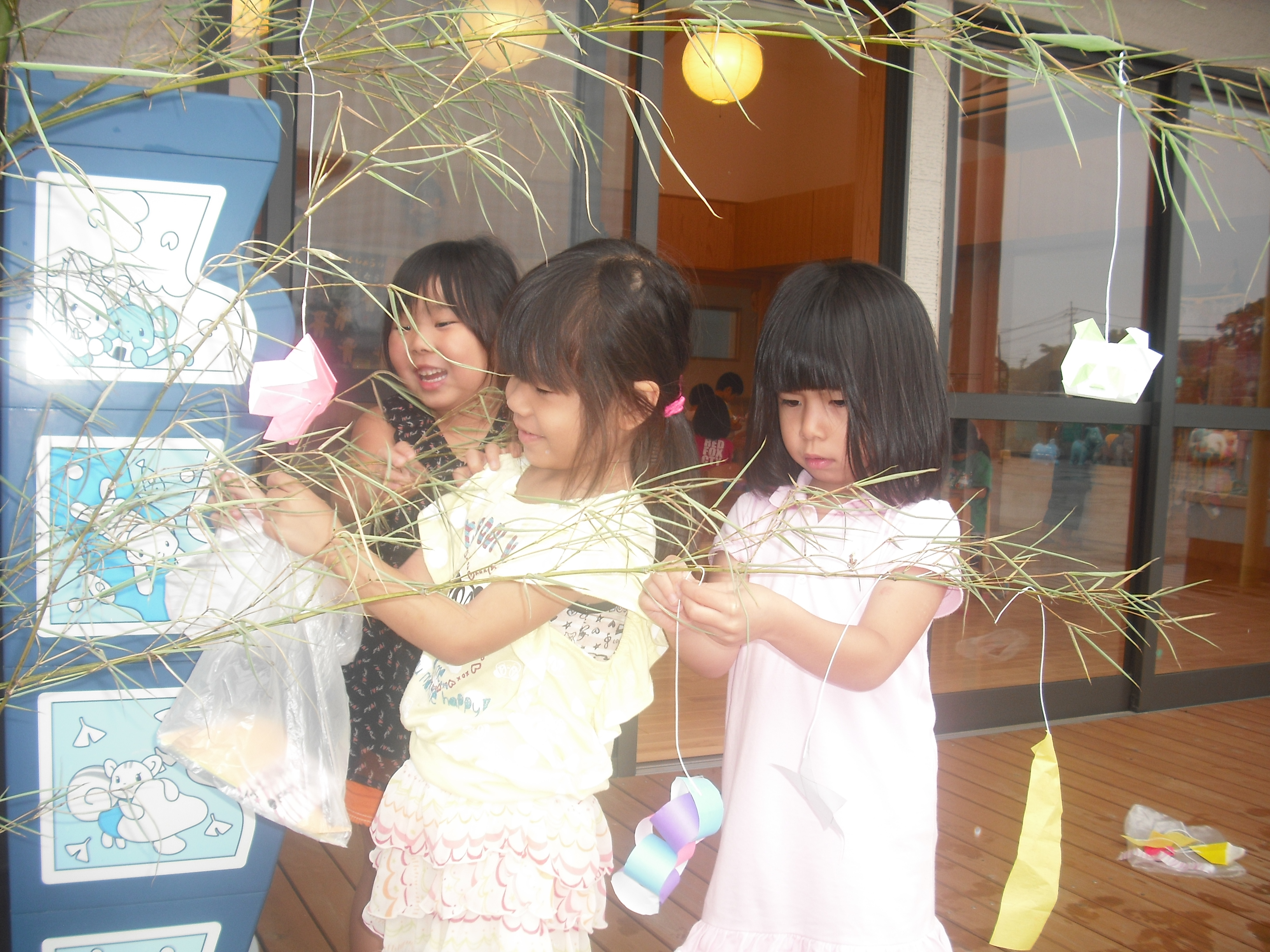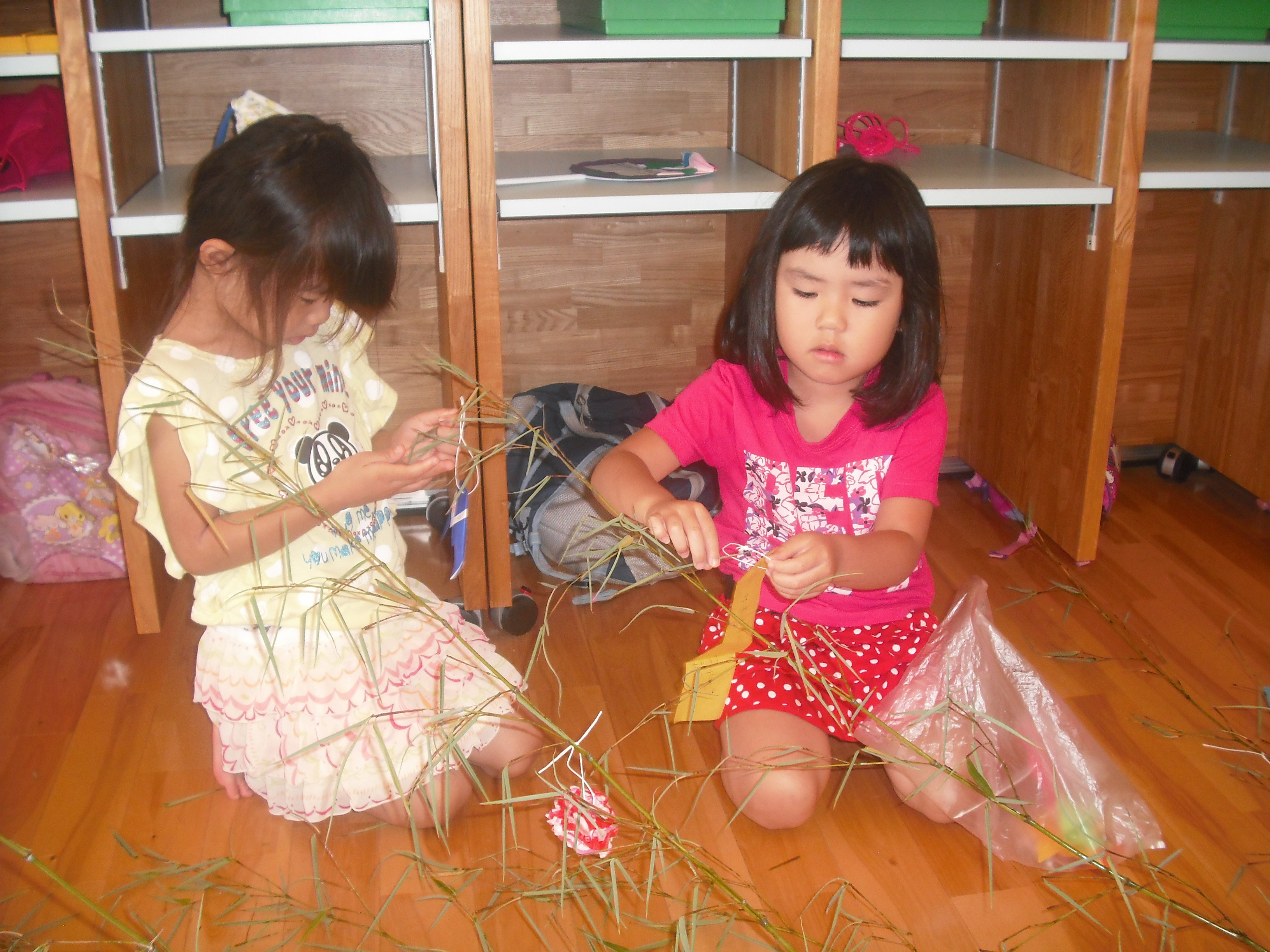 きりん組さんが、七夕の飾り付けを行っていますよ。