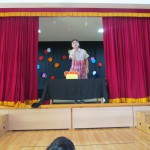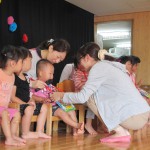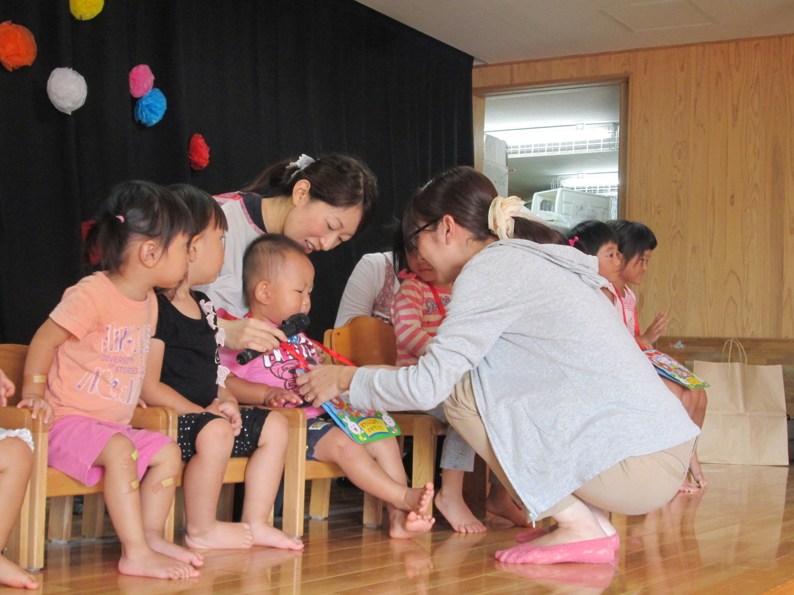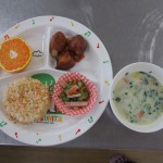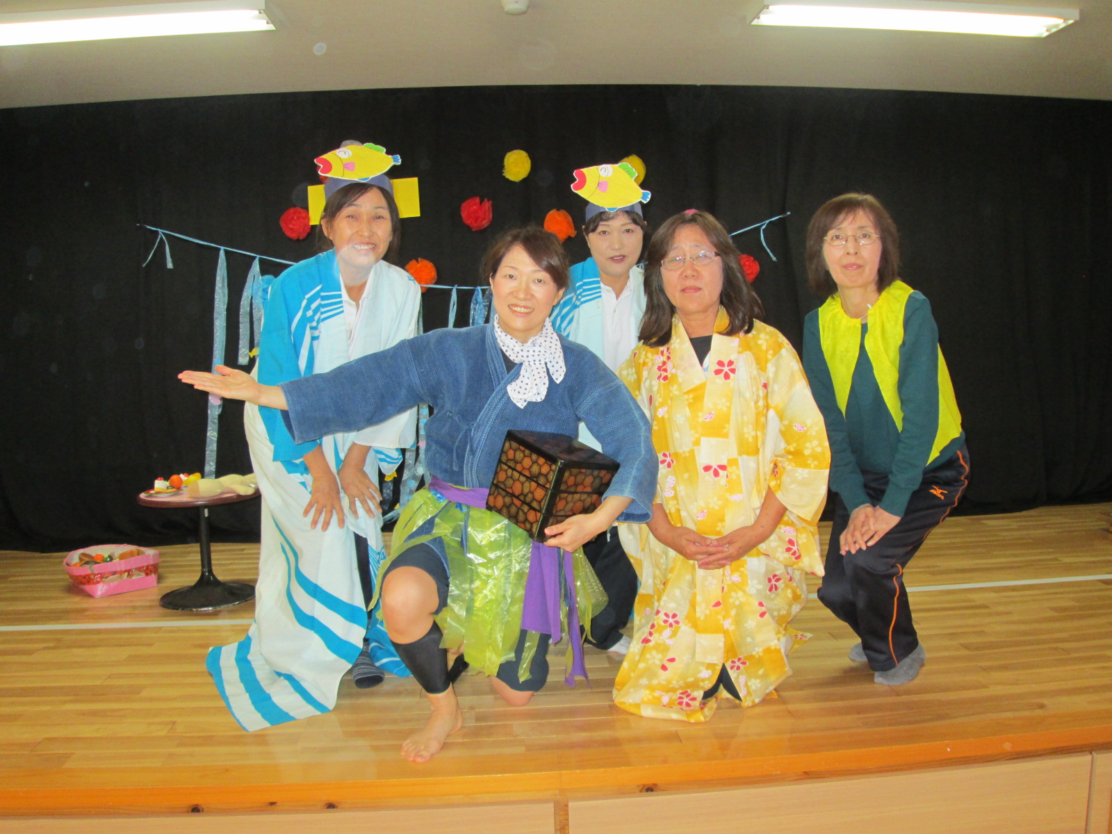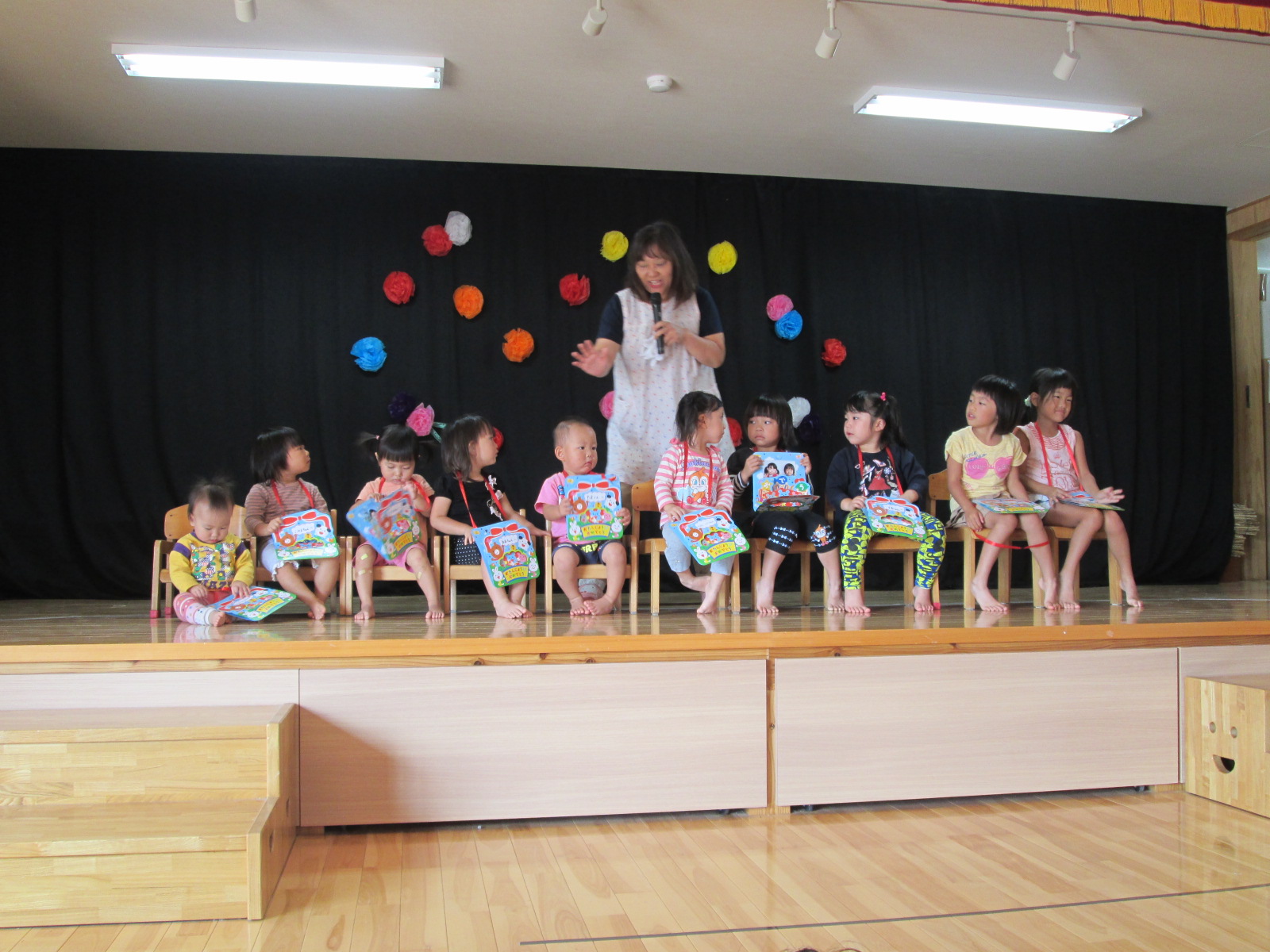 10月誕生会 10月21日(水) 今月は、10名の誕生児が勢ぞろいし賑やかな会となりました。 芸達者な先生達の出し物は『浦島太郎』。子ども達も毎回楽しみにしています。 誕生会メニューも楽しみの一つ。今月は、キャロットライス・フィッシュボールの甘酢あん・胡瓜とハムのサラダ・豆乳スープ・みかんでした。