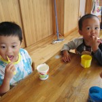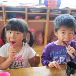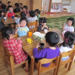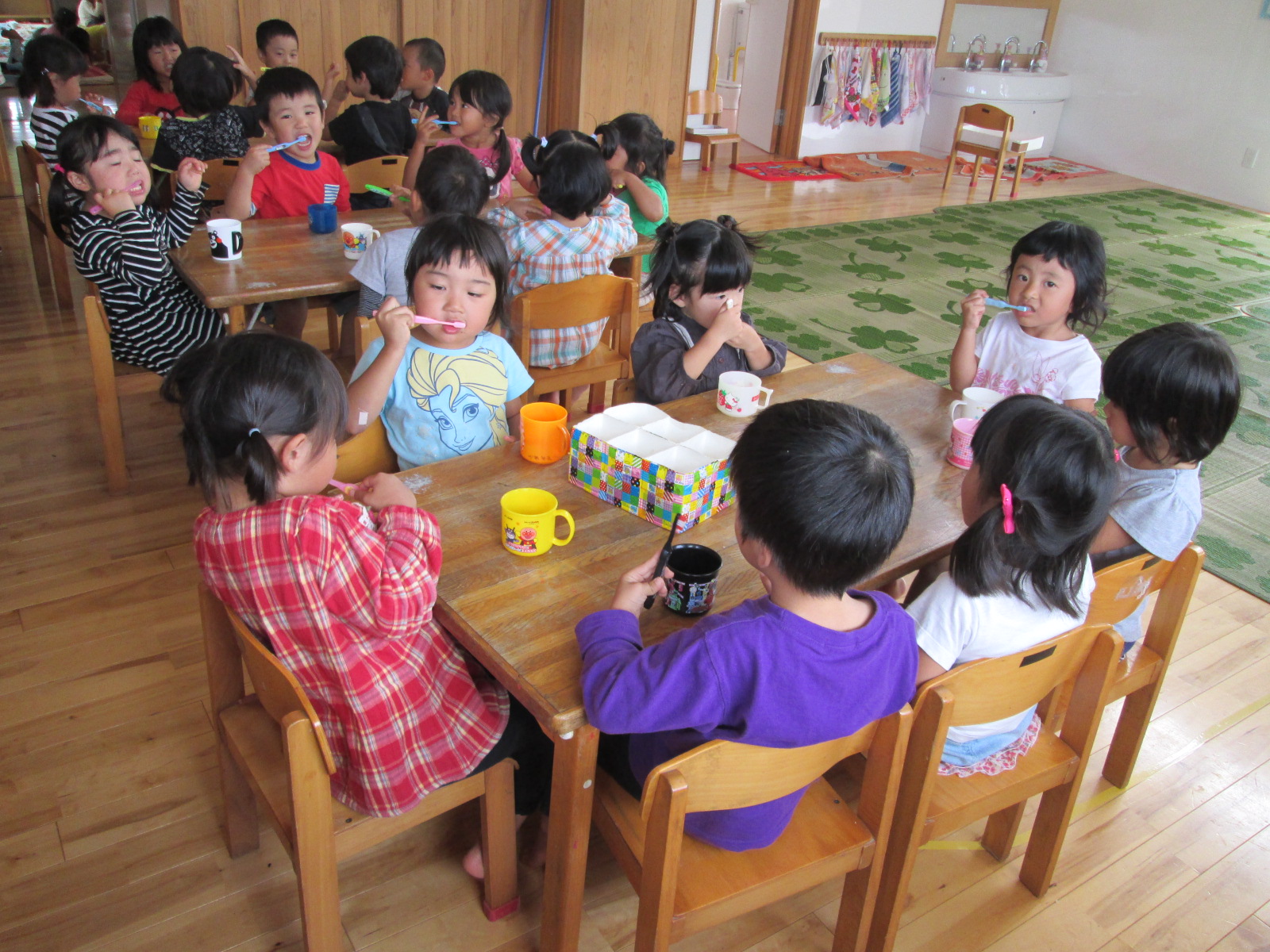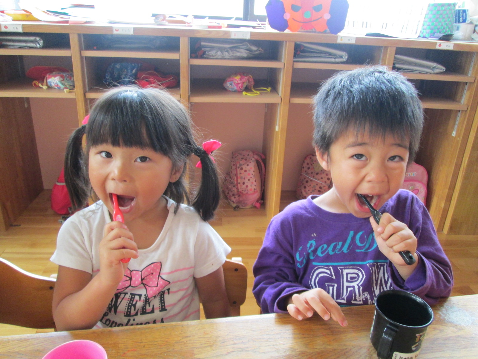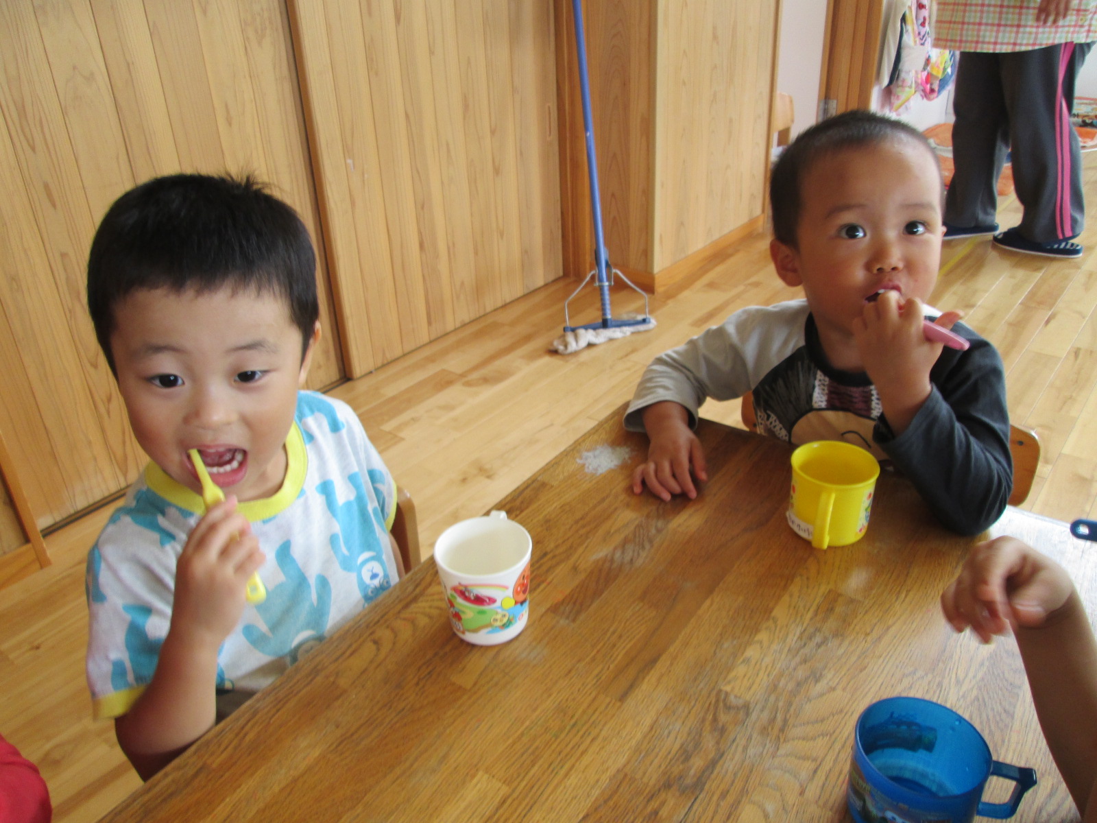 ぱんだ組さんが、給食後に歯磨きを行っていますよ。