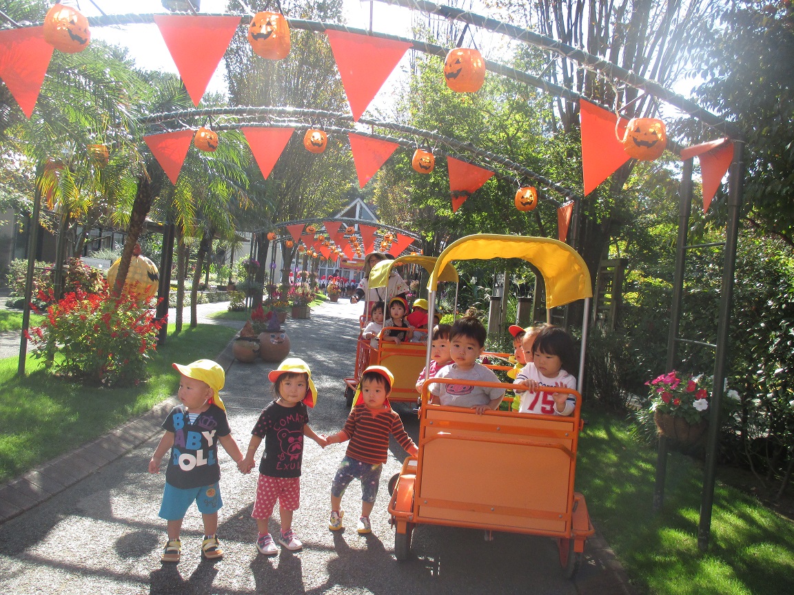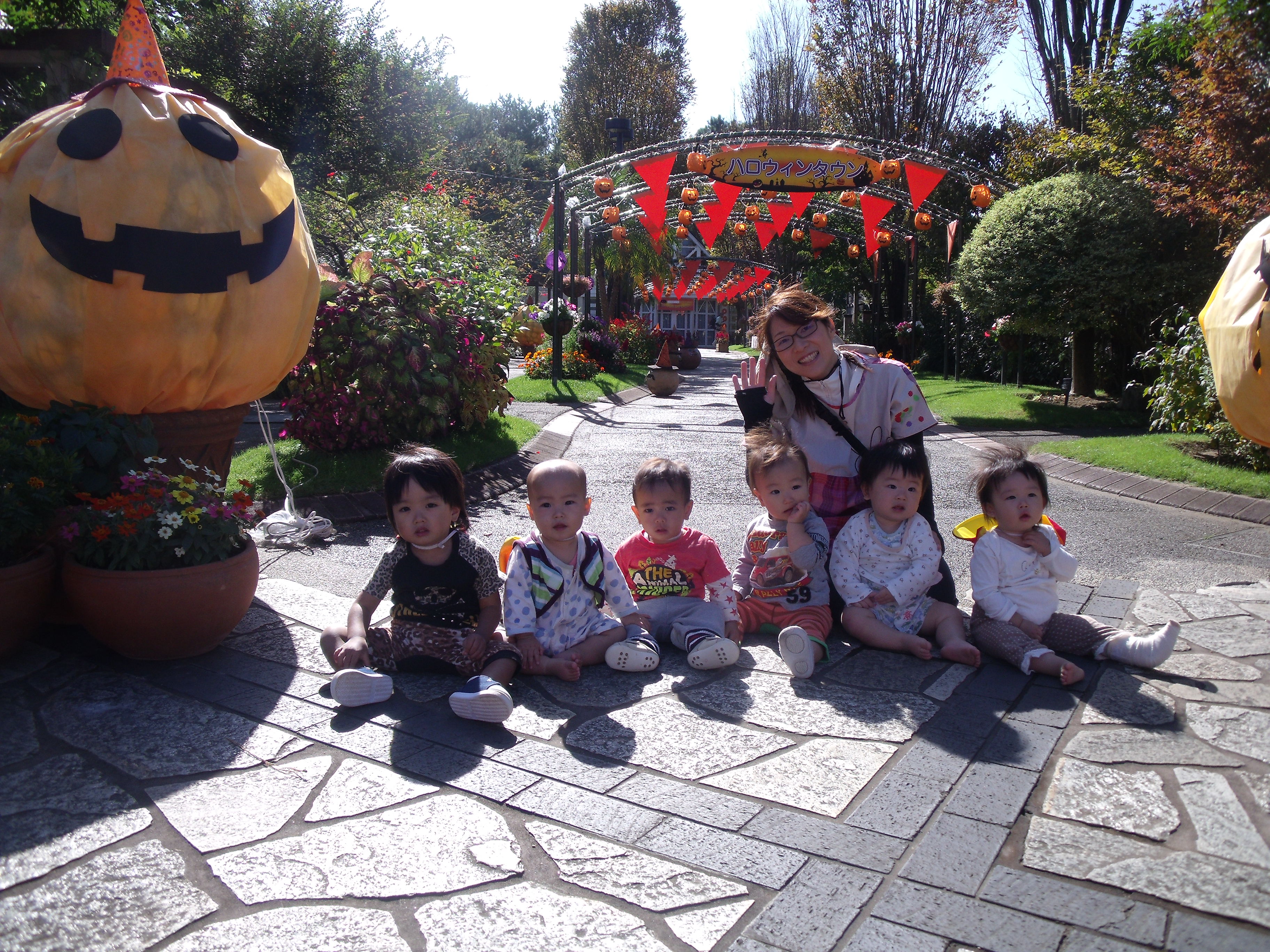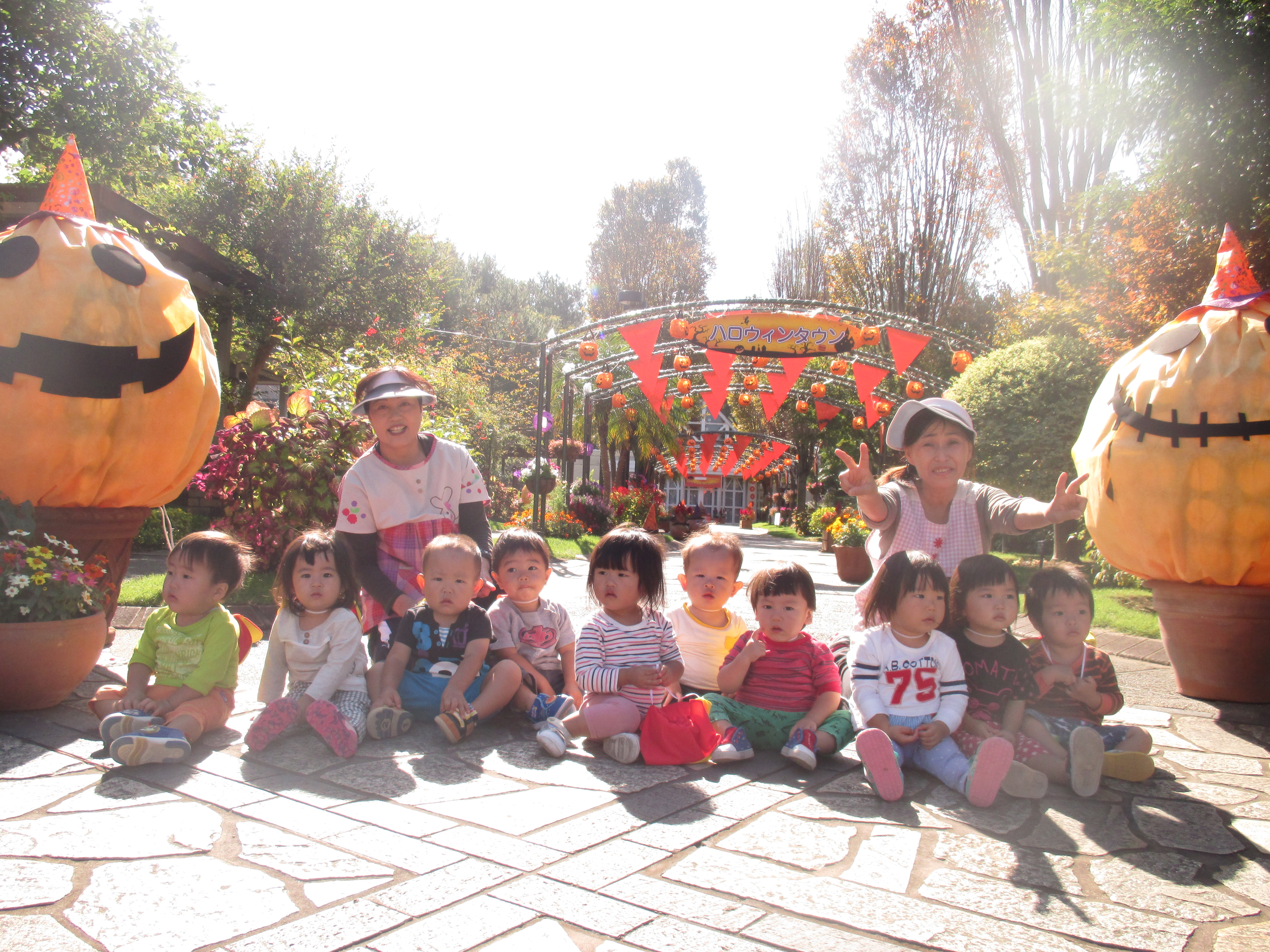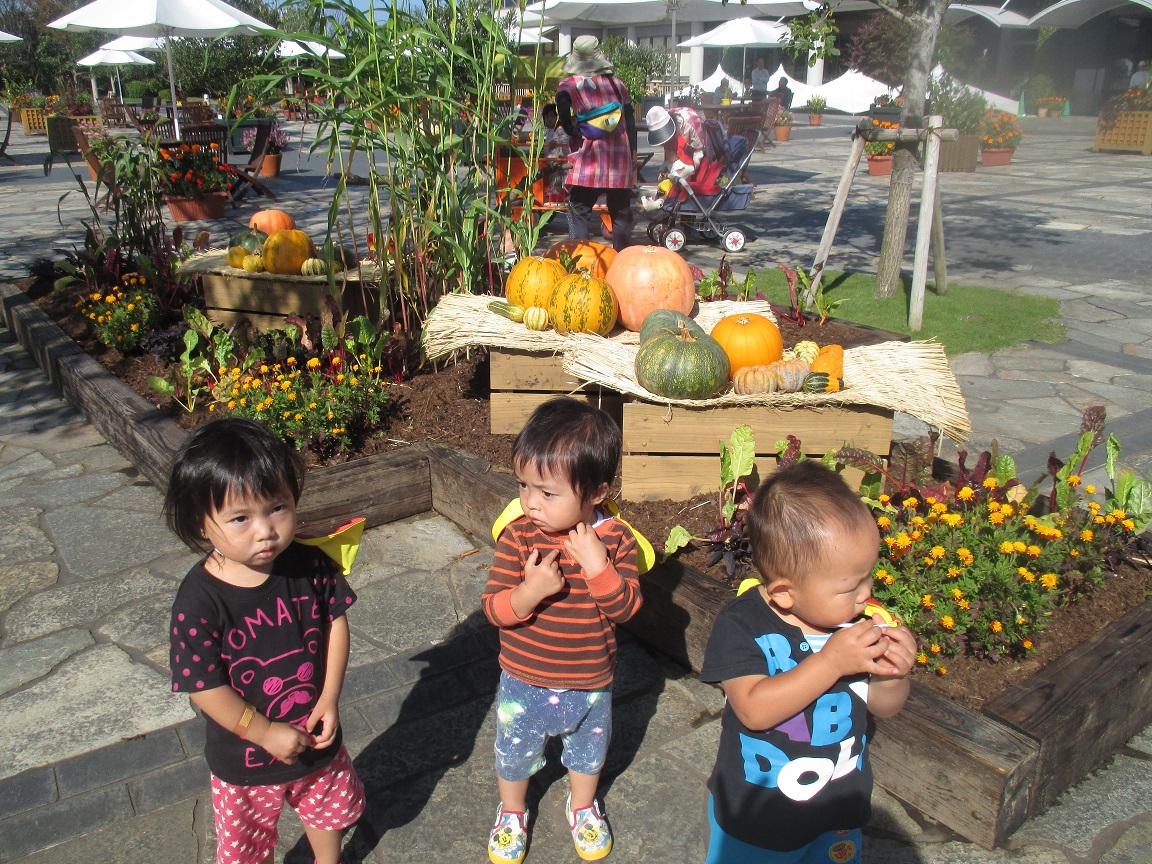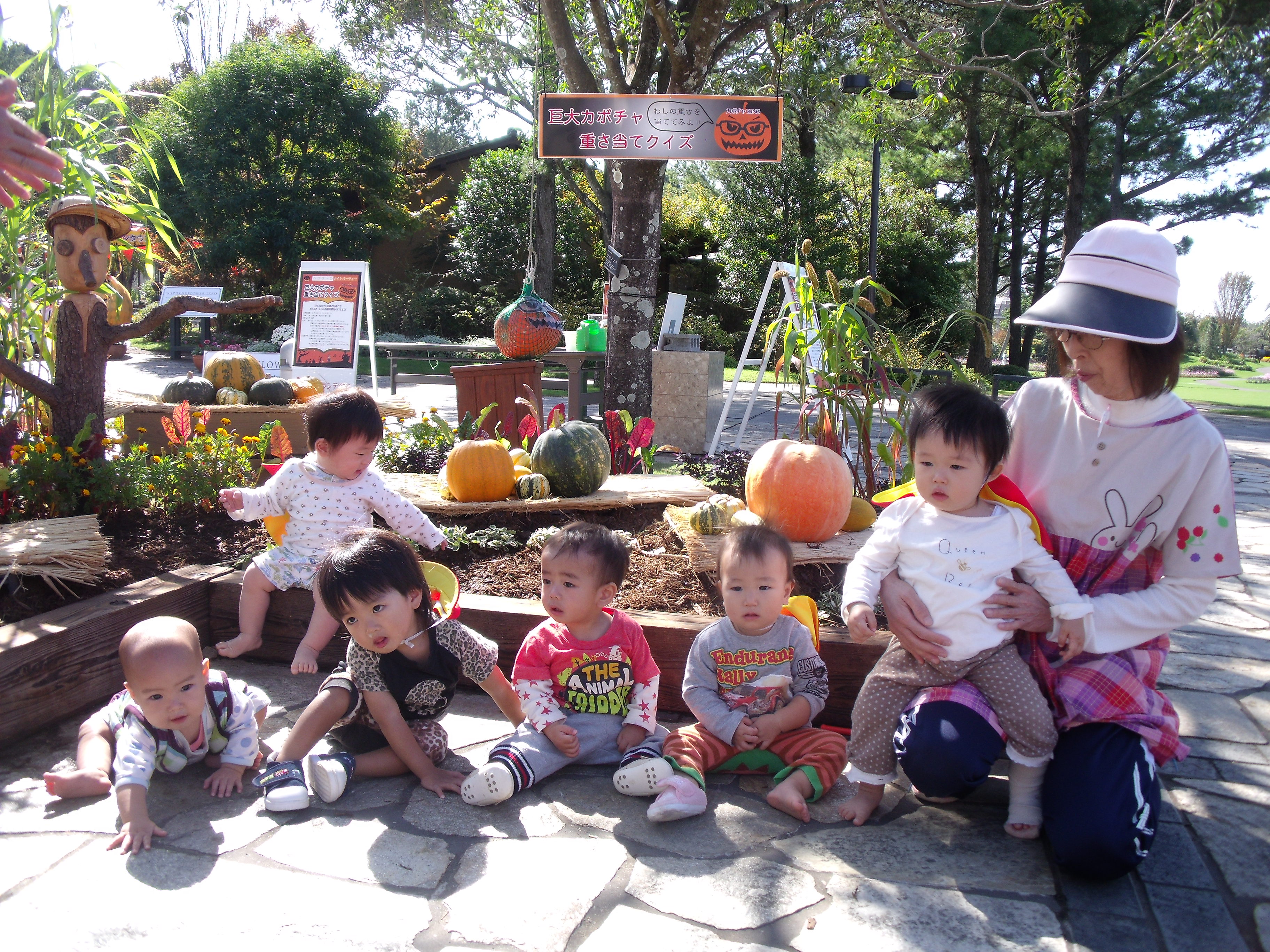 フローランテ宮崎 10月22日(木) 晴天続きですね。 ひよこ組さんとりす組さんは、フローランテ宮崎までお散歩に出かけました。 フローランテもハロウィン仕様になっており、大きなカボチャを見たり触ったりとハロウィン気分を楽しんできましたよ。