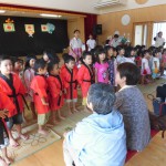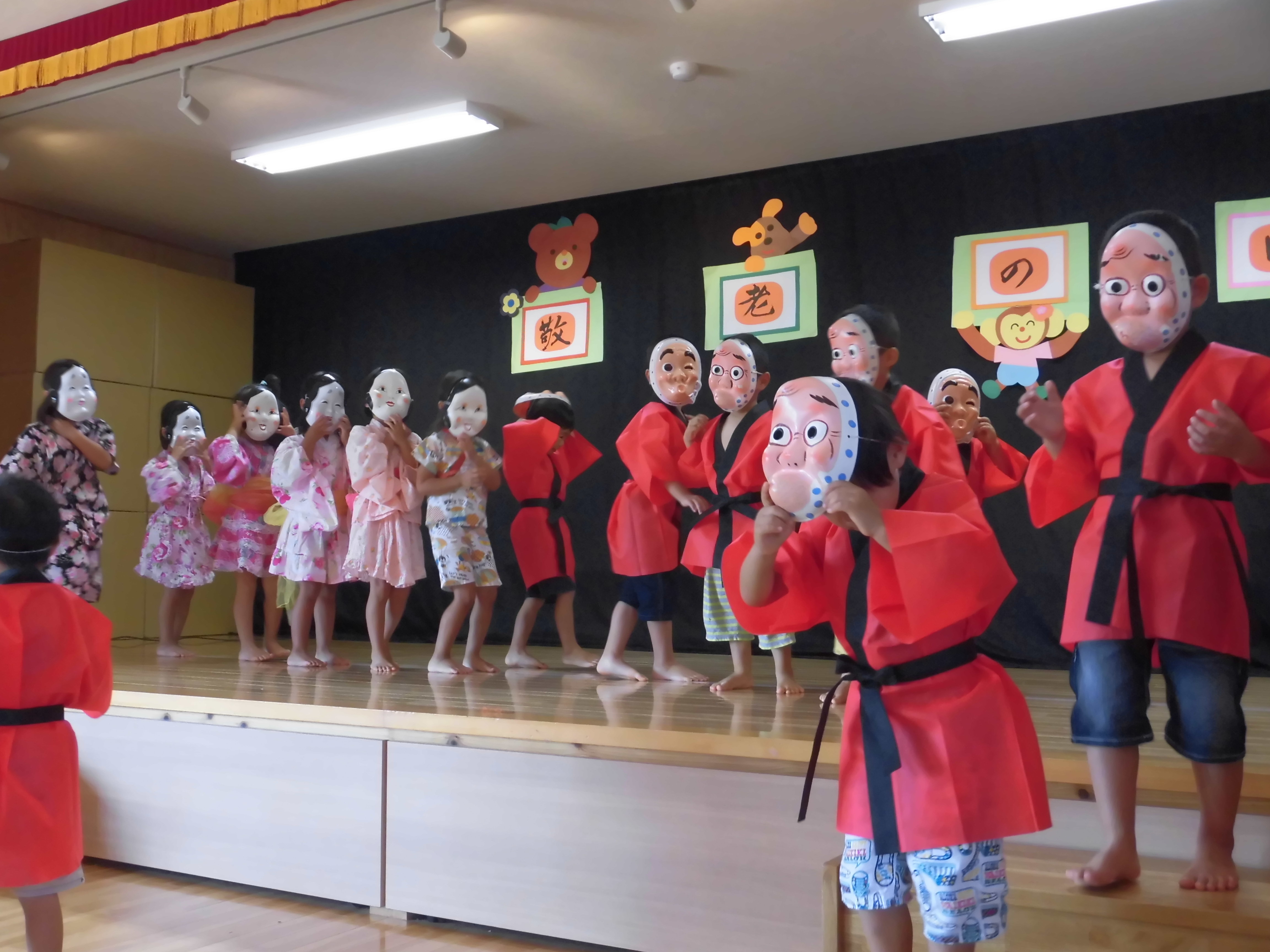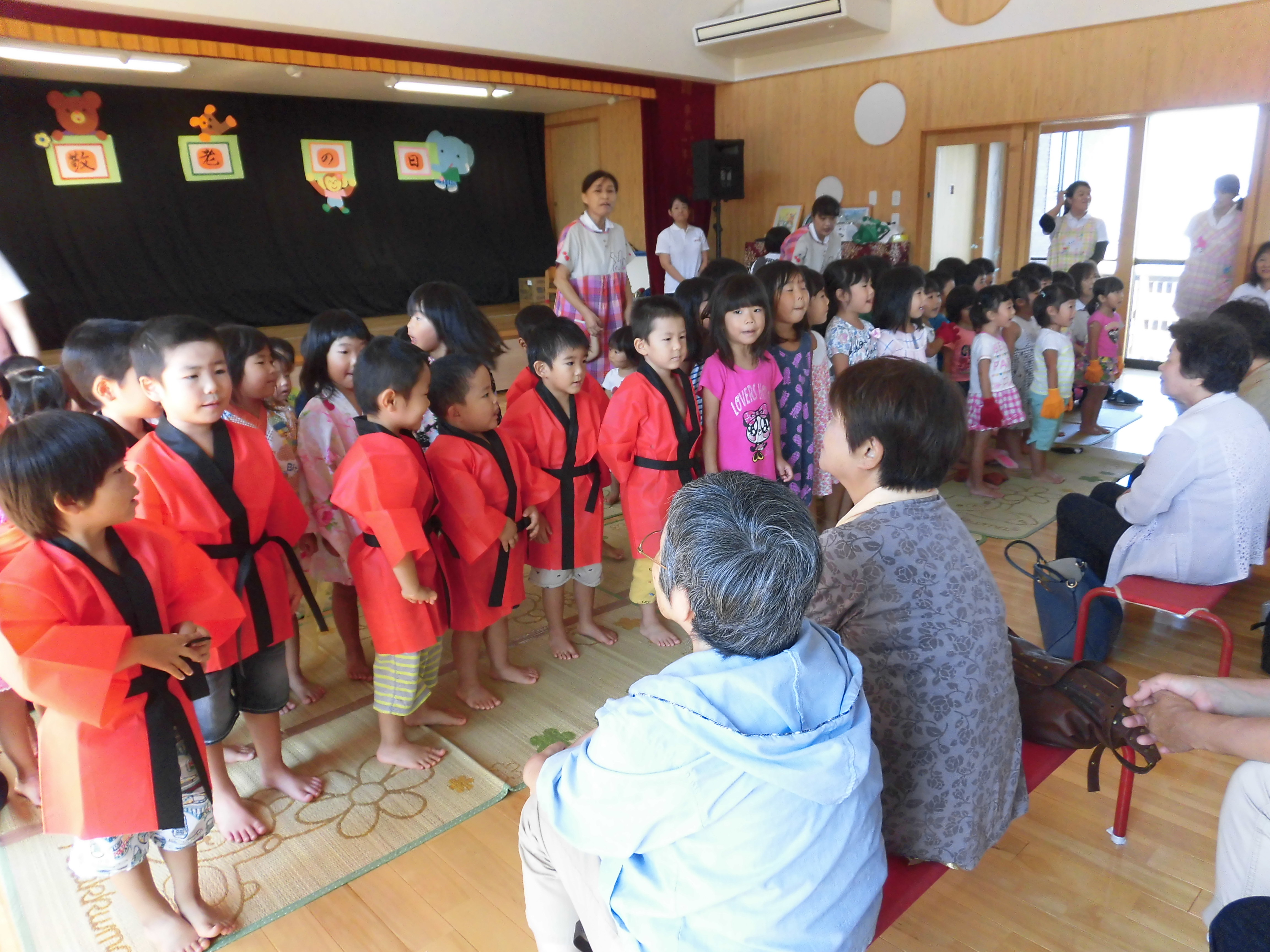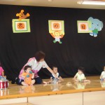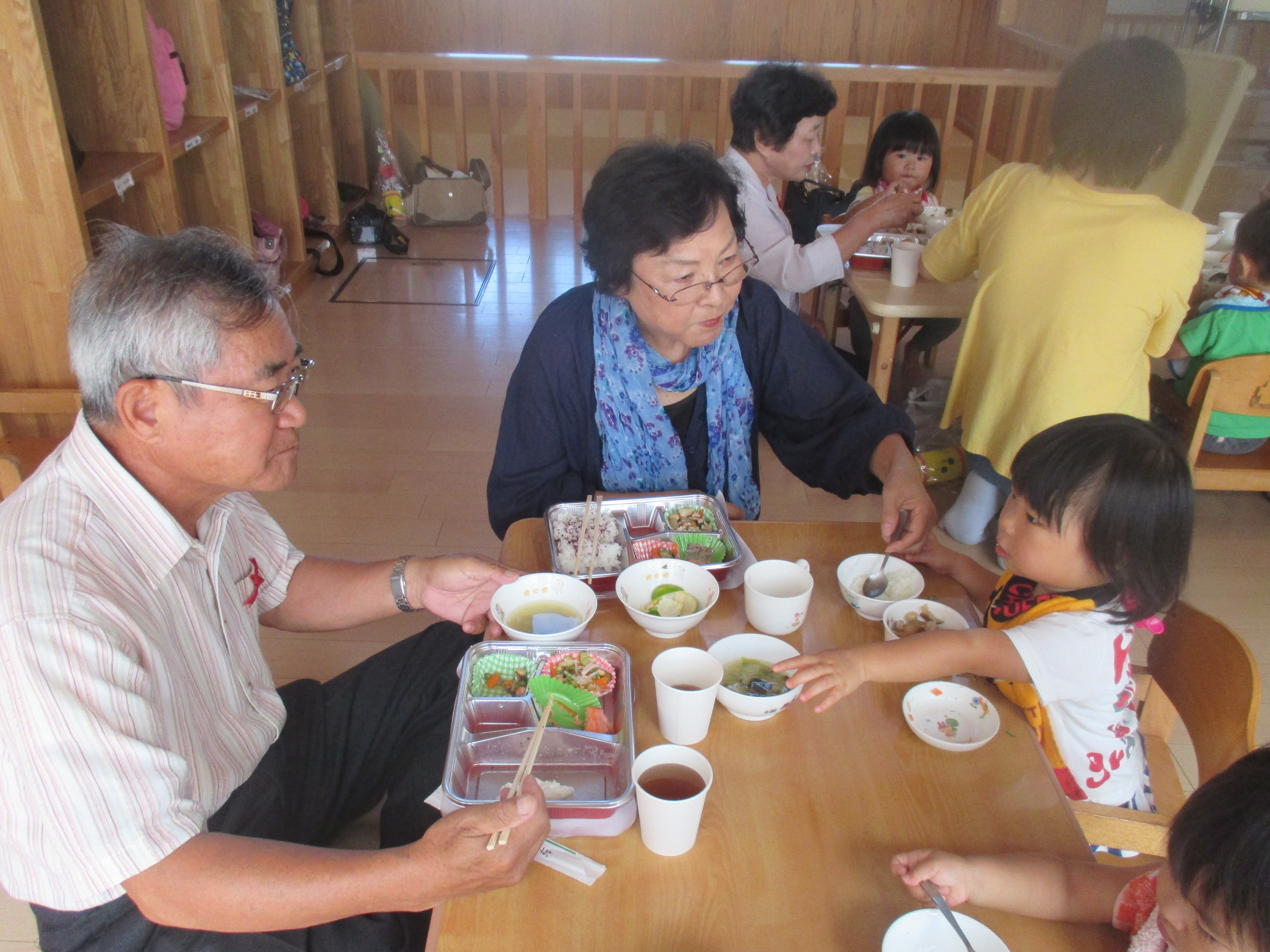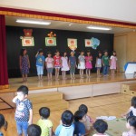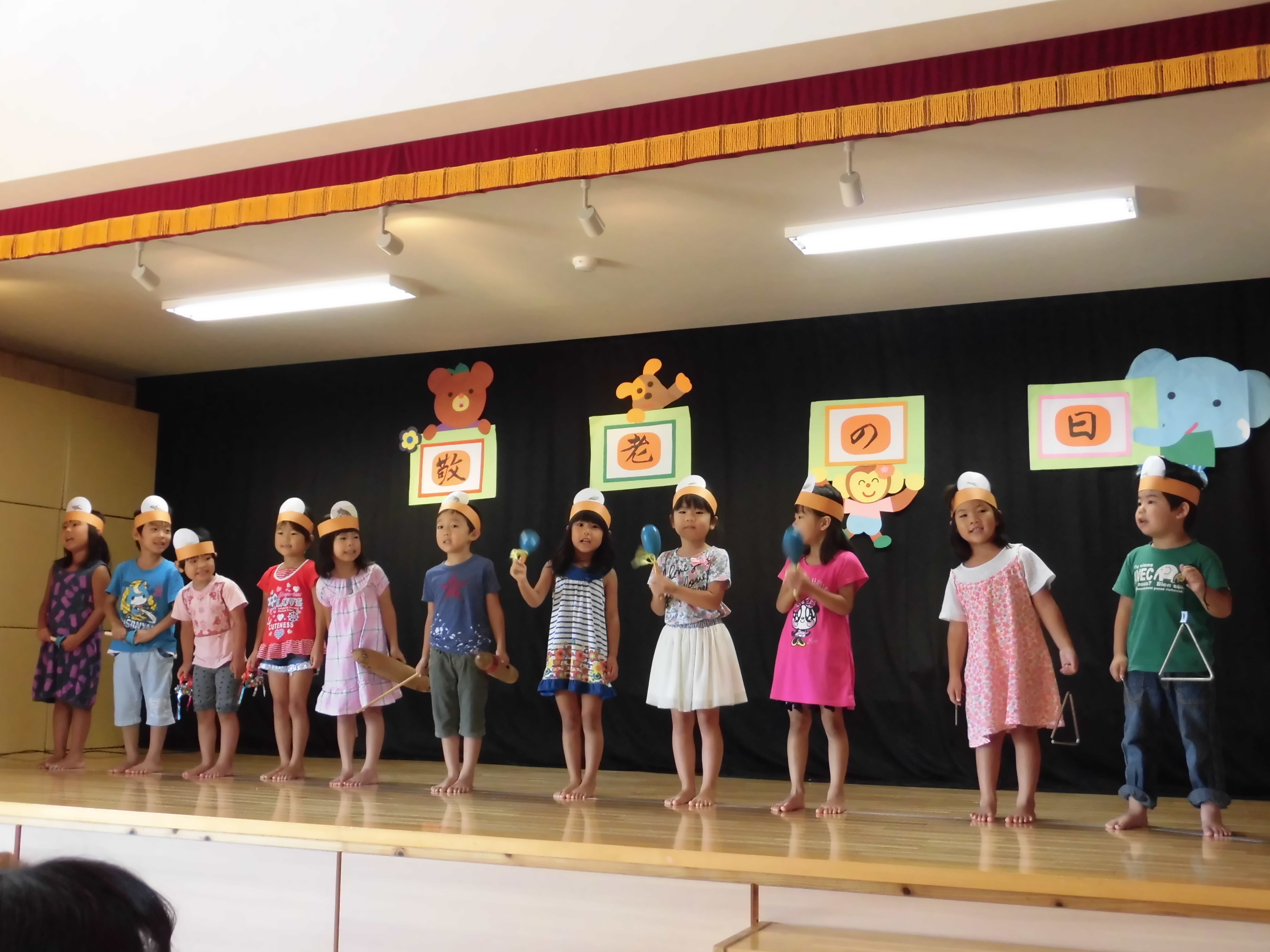 敬老祝い 9月18日(金) 今日は、おじいちゃん・おばあちゃんを招いて敬老祝いを行いました。 歌やダンス、劇に踊りなどを披露したり、触れ合い遊びを楽しんだりと保育園での様子を見ていただきました。 活動の後は一緒に給食を食べ、楽しいひと時を過ごしました。