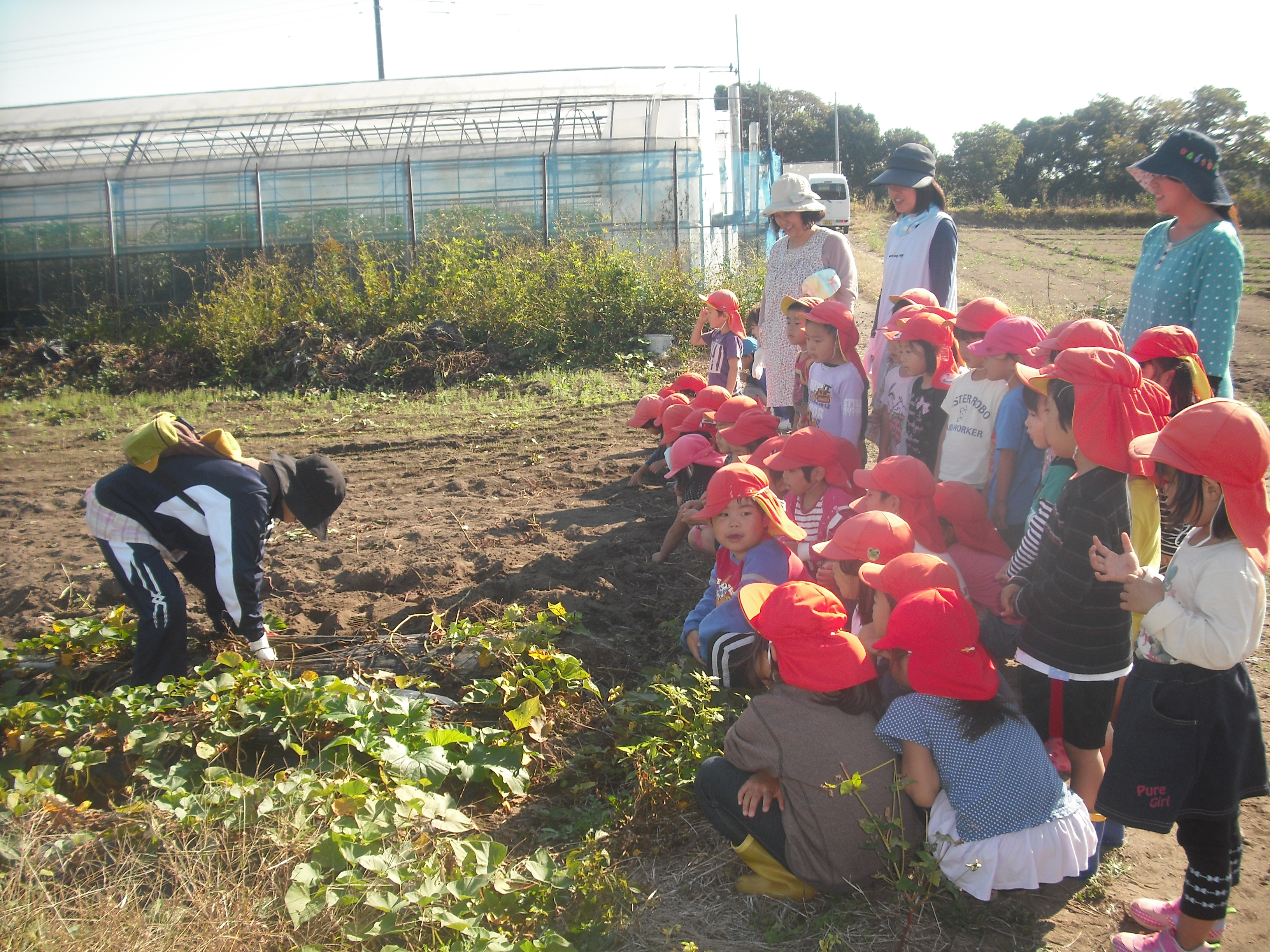 『ぶどう狩り』に続き、またまた保護者の方のご厚意で『芋掘り』を体験させていただきました。