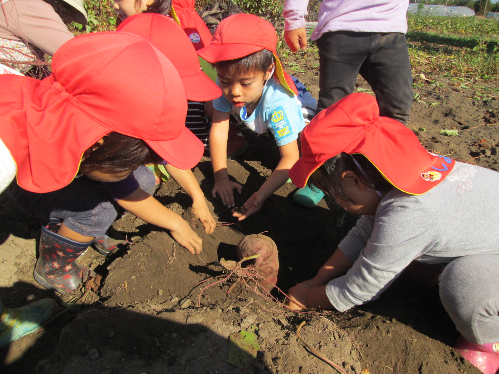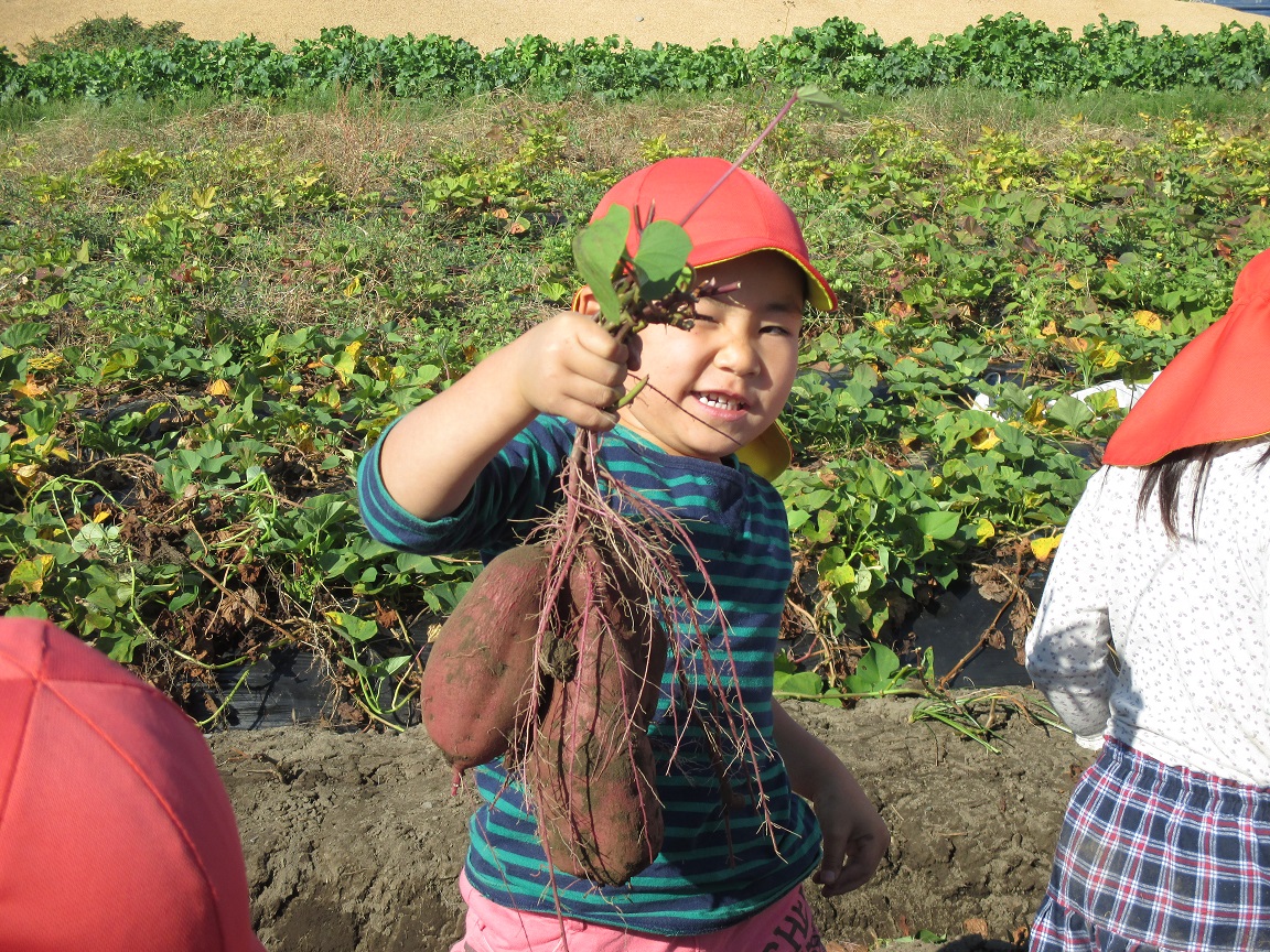 みんなの顔より大きいお芋が・・・大収穫に大喜びの子ども達でした。