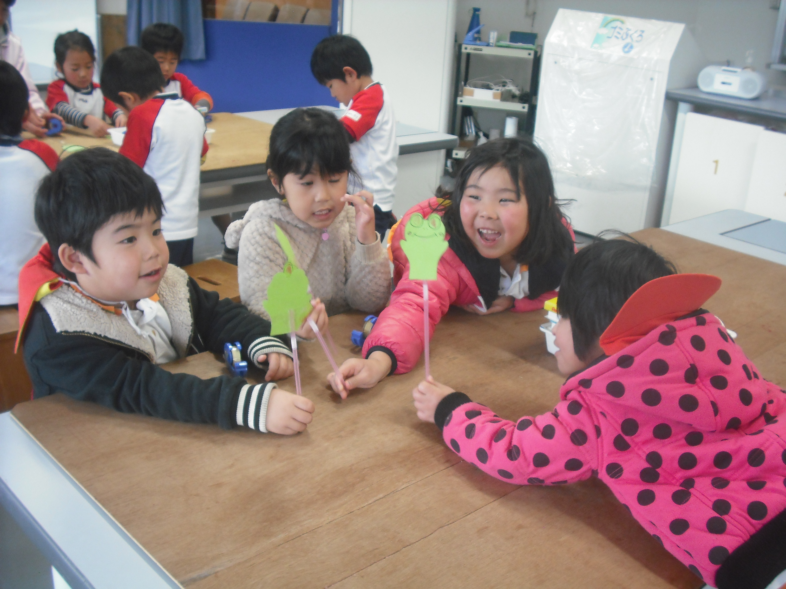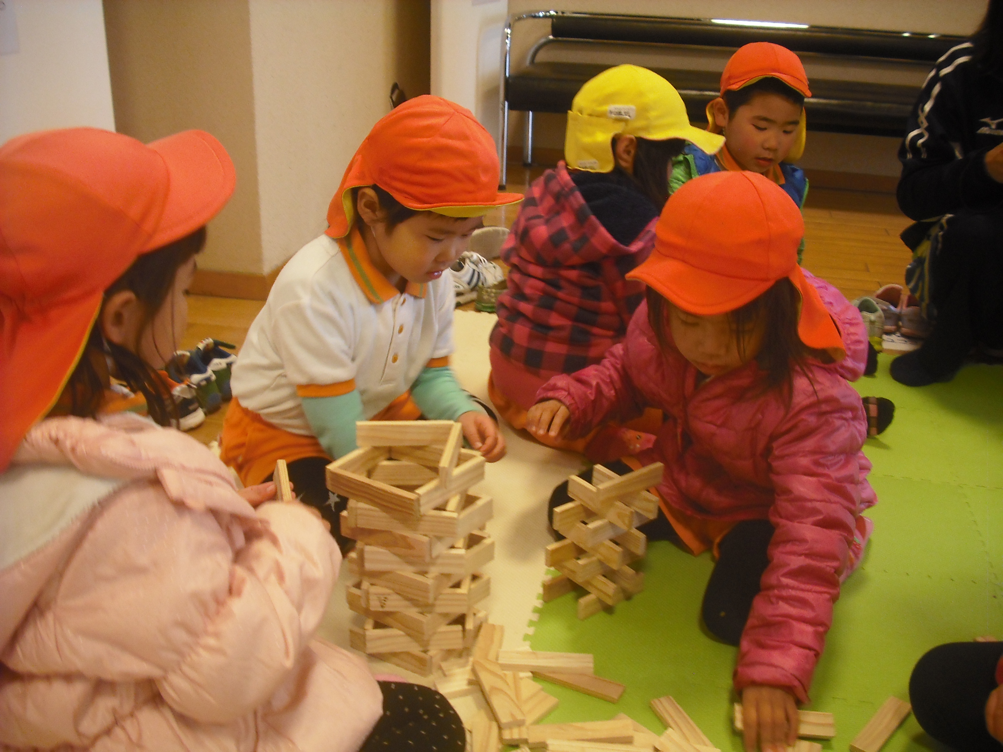 大淀川学習館 1月27日(水) きりん組さんとぞう組さんは、お弁当を持って『大淀川学習館』へ出かけました。 3D眼鏡をかけてシアターを見たり、ゲコゲコガエルの製作を行いました。 県産材の積み木コーナーでは、皆集中して作品を作りあげていましたよ。