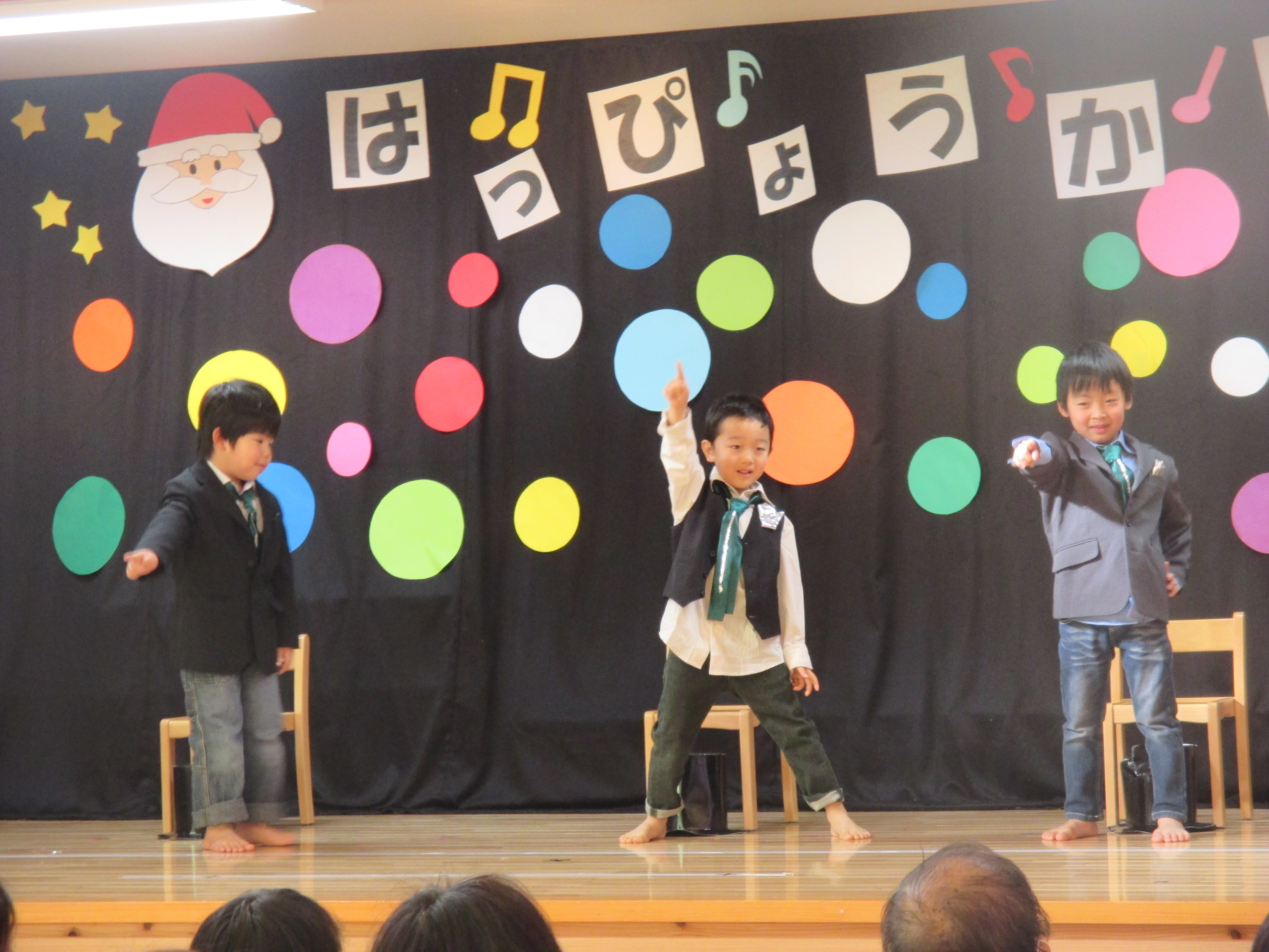 クリスマス発表会 12月20日(日) 楽しみにしていたクリスマス発表会。 予行練習から数回の手直しを行い、当日を迎えました。 子ども達は、練習を重ねてきたことが自信にかわり堂々とした立ち振る舞いで発表できました~☆ ステージの上のみんなの笑顔がキラキラと輝いた一日でした。