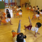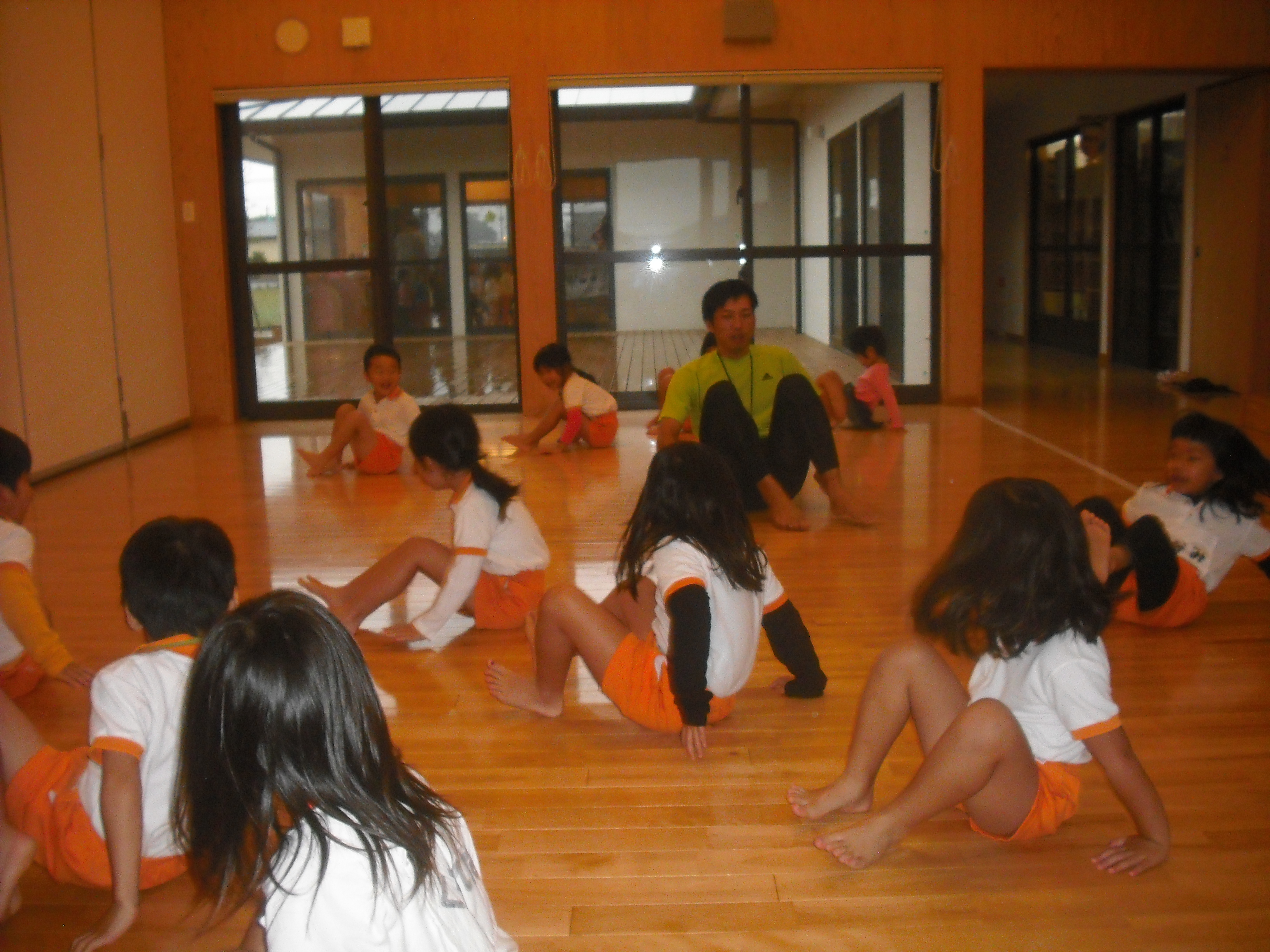 今日の体育レッスンは雨のため、室内で行うことになりました。