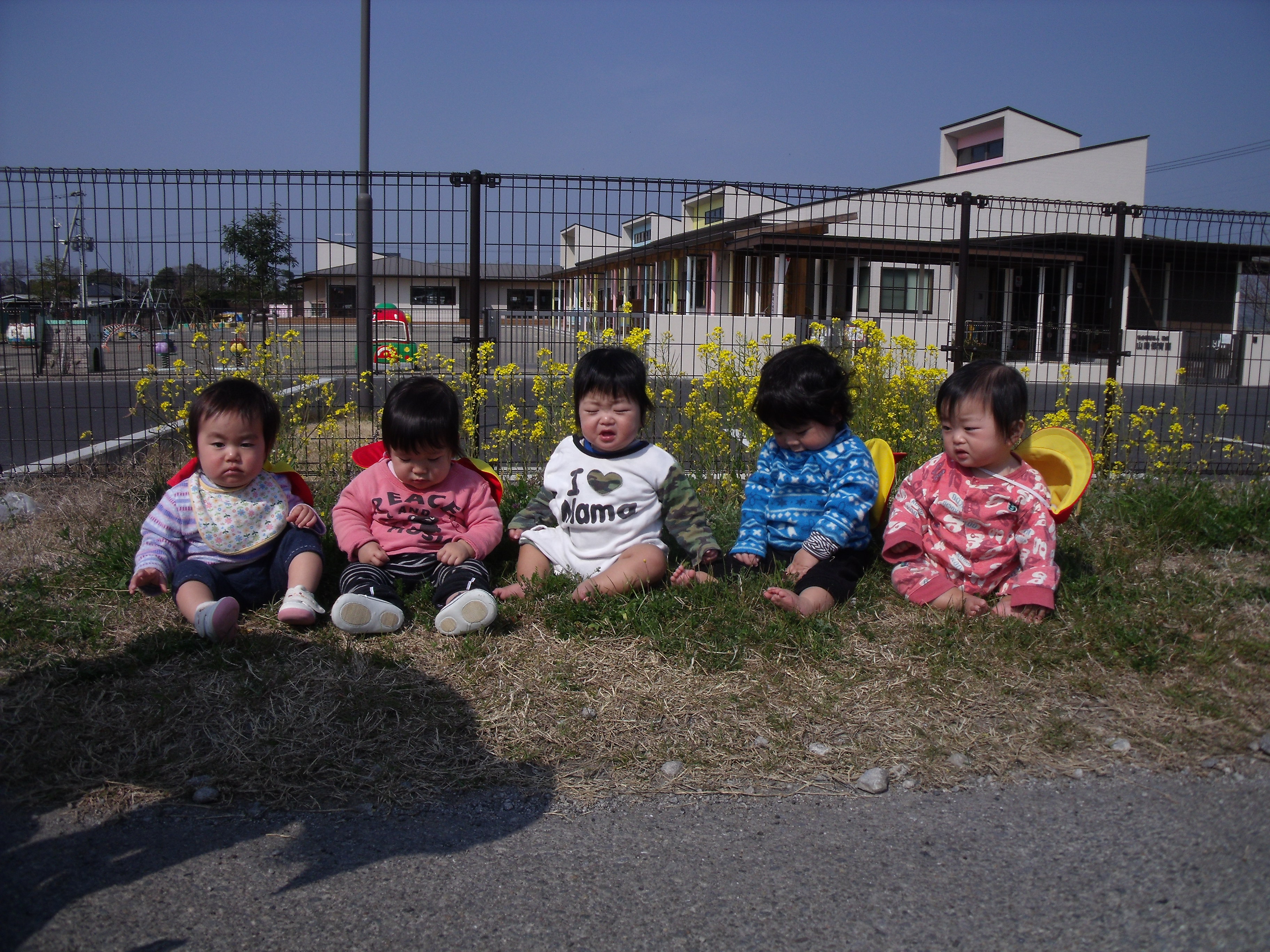 ひよこ組さんは、園舎周りをお散歩・・・。