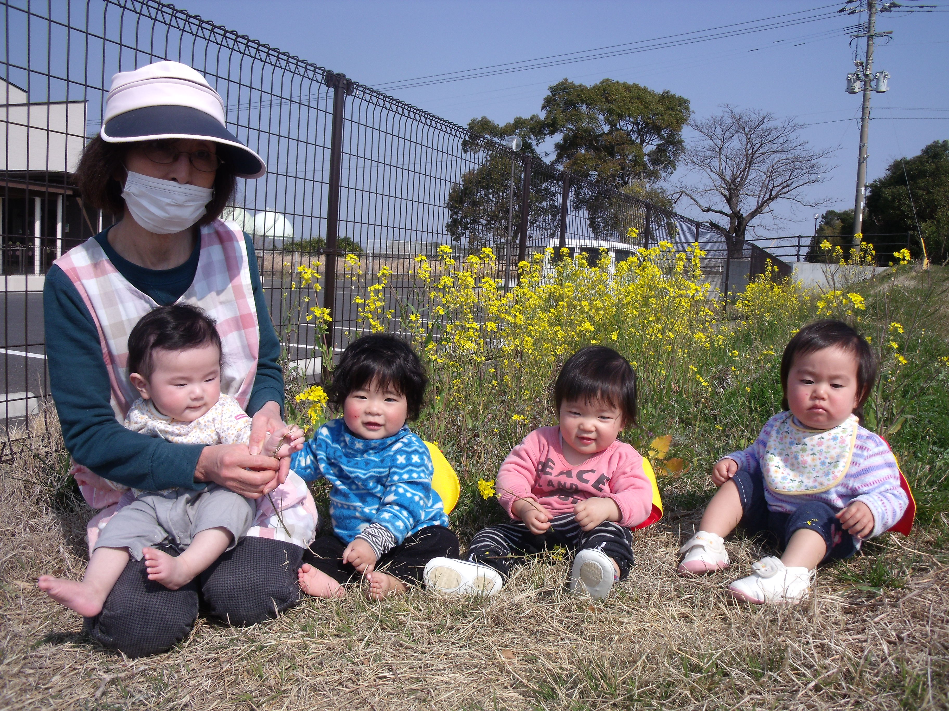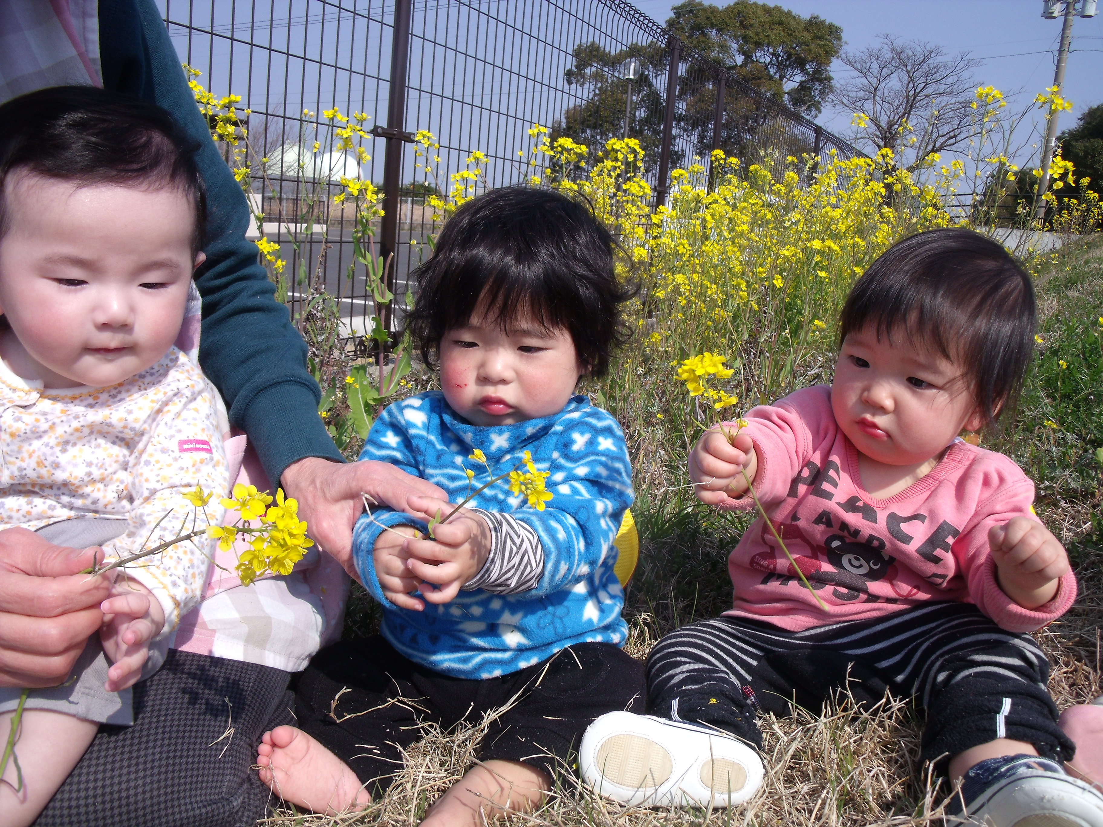 菜の花が咲いているね~♪ ポカポカ陽気で気持ちいいね。