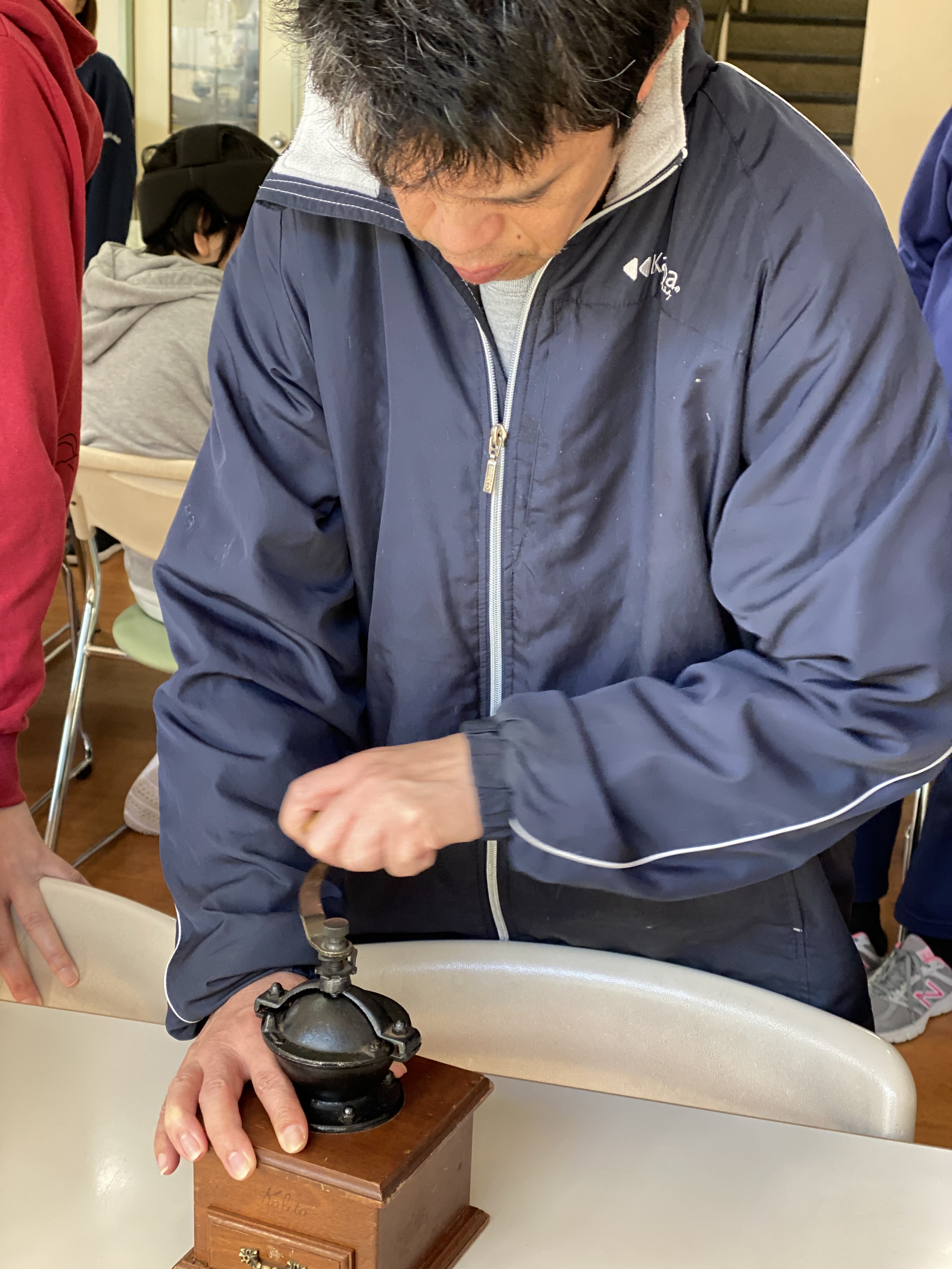 ご利用者の方も豆挽きを体験しました♪