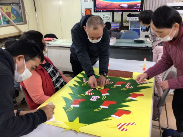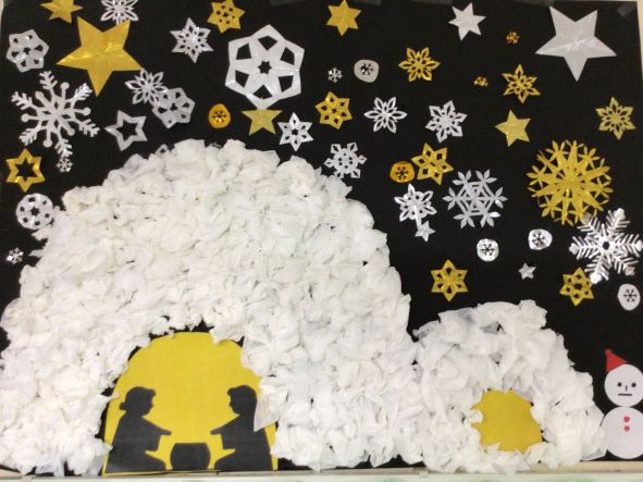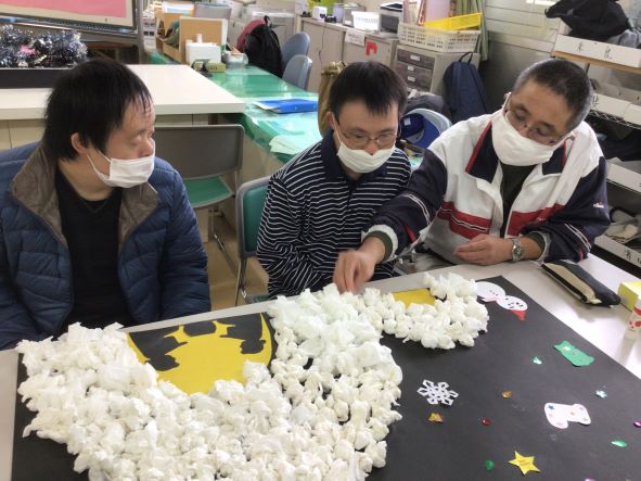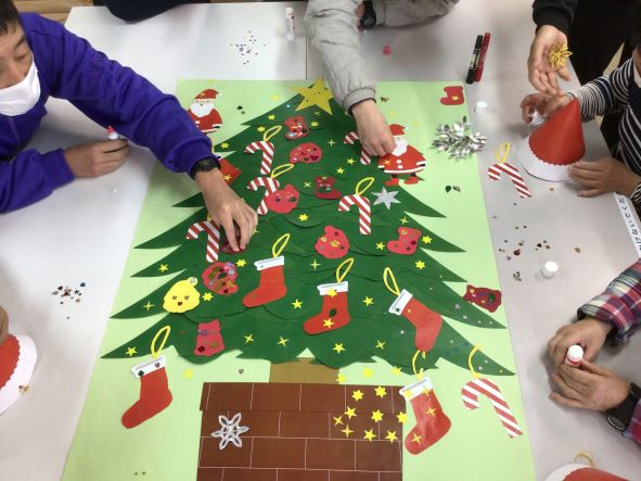 クリスマスツリーや雪とかまくらの装飾をみんなで行いました。