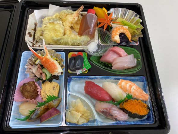 次は、いよいよお昼です。待ちに待った、お弁当が提供されました♪