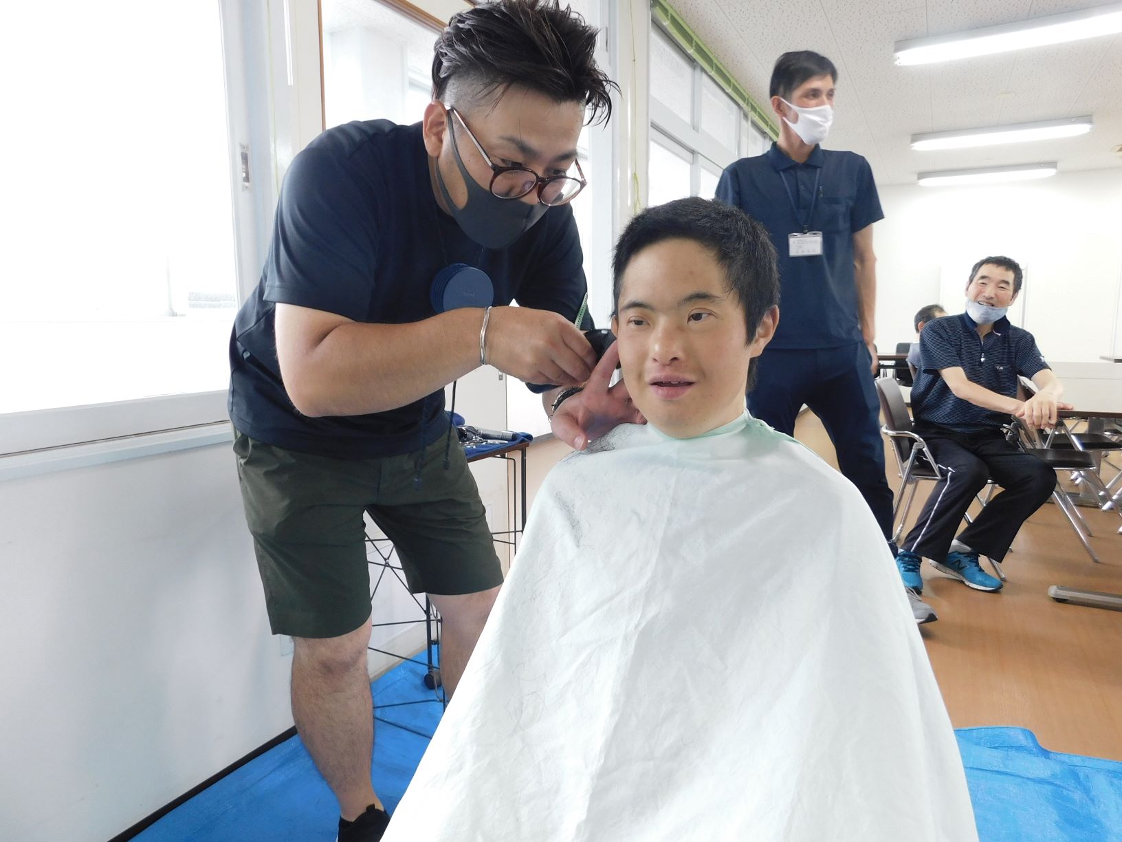 6月散髪支援 6月30日(火)散髪を行いました。 今回も、感染症拡大予防により、訪問美容室の方に来て頂きました。 カット中の様子です。 カット後、更に男前になりましたよ! 今回は、男女合わせて8名のカットでした。ありがとうございました。
