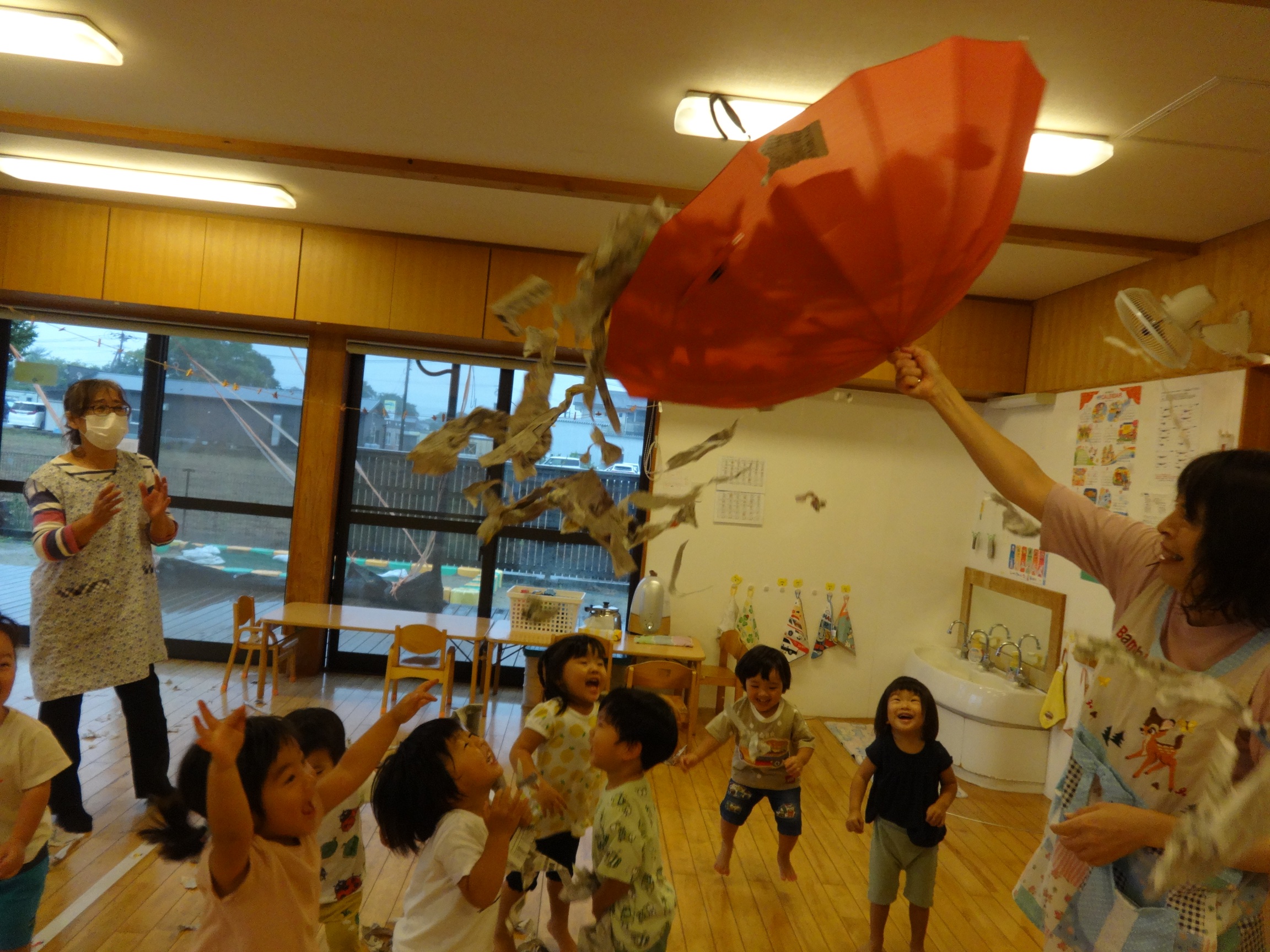 職員のペープサートをみた後は、色紙で作った飴やお化けなどを探すゲームをして楽しみました!